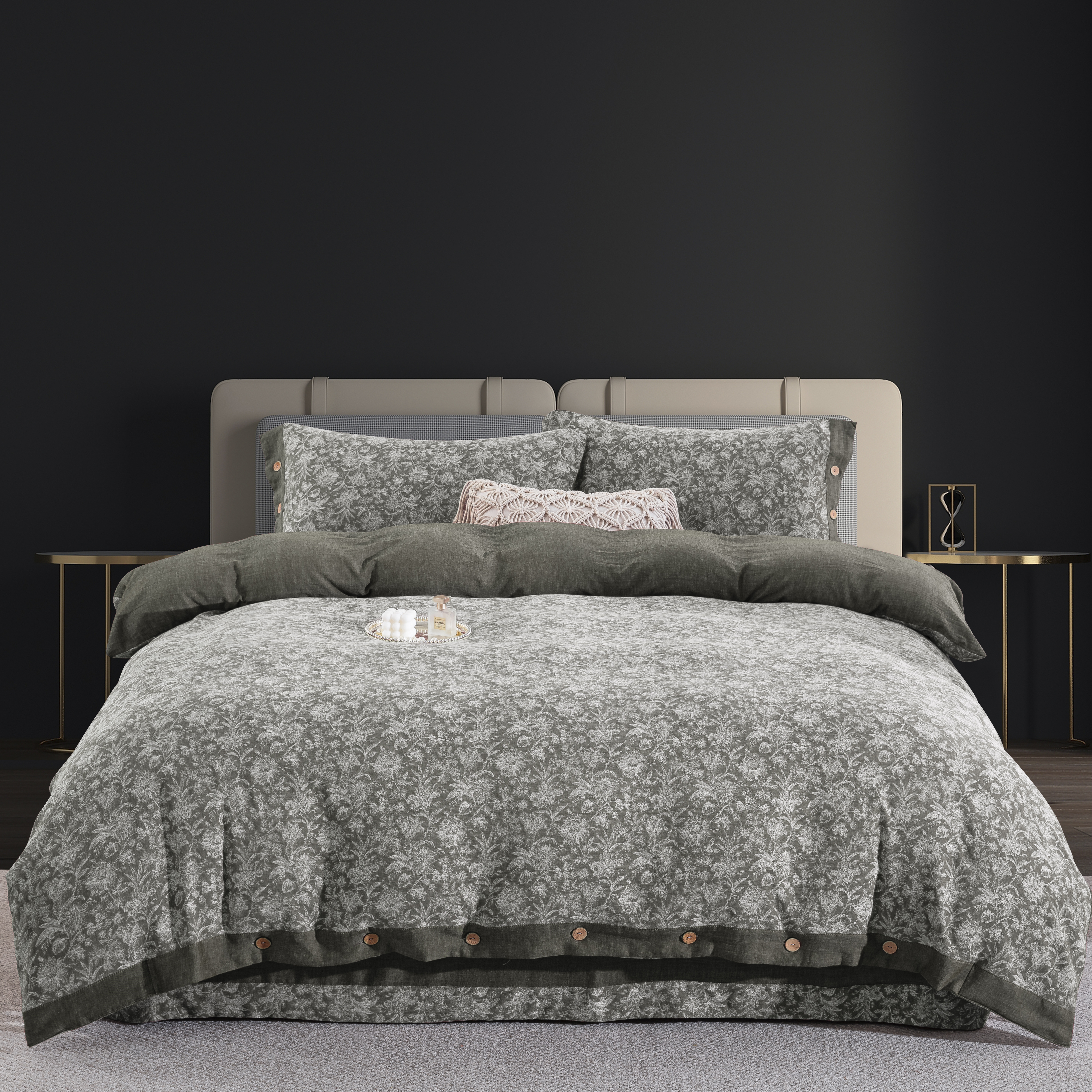 鲁爱家纺供货 2025新款全棉色织提花四件套 风华正茂-绿