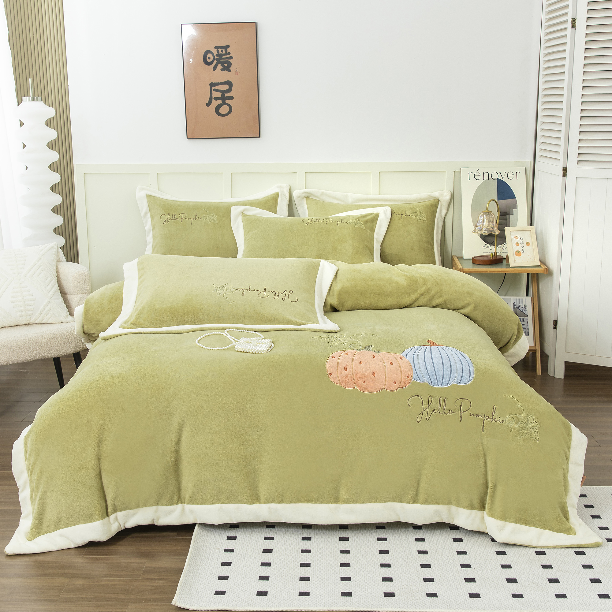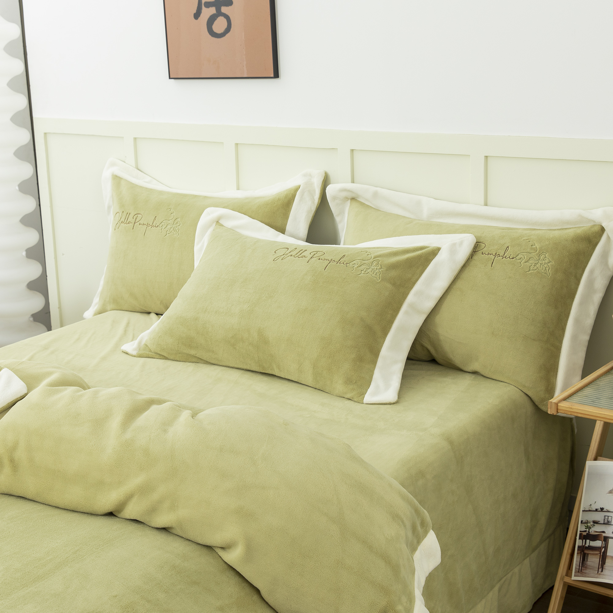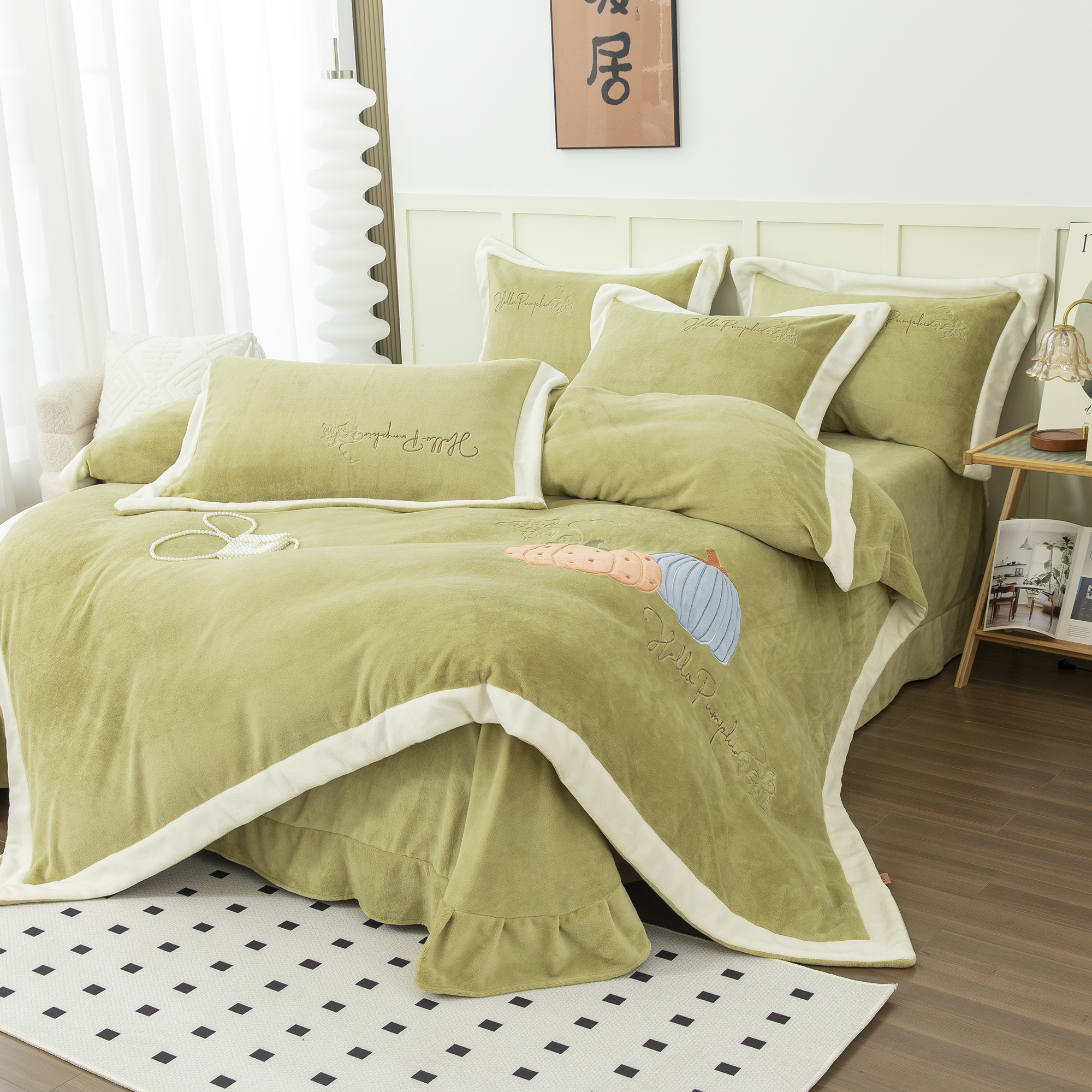 贝尔 2025新款纯色高克重牛奶绒刺绣四件套-羽魅 羽魅-浅绿,羽魅-浅绿