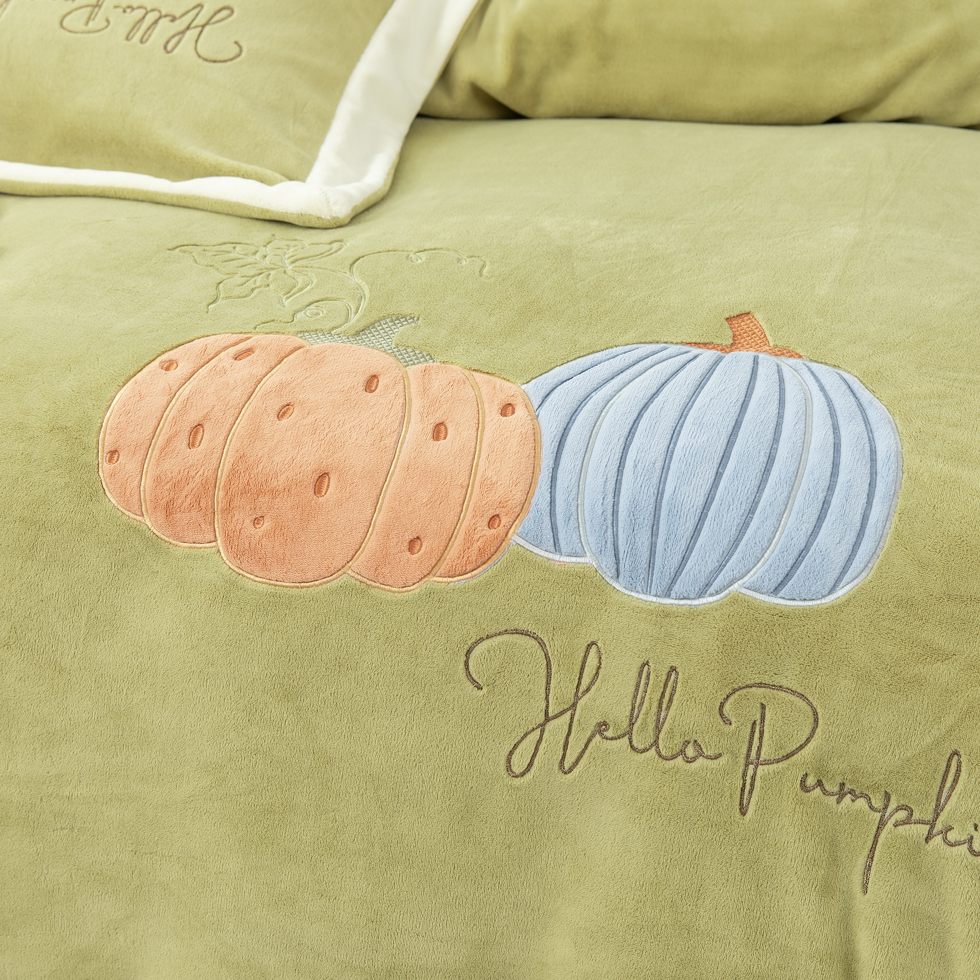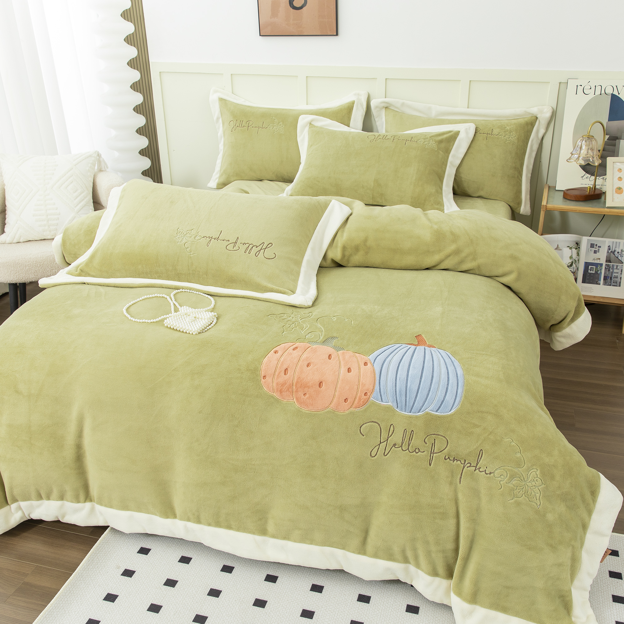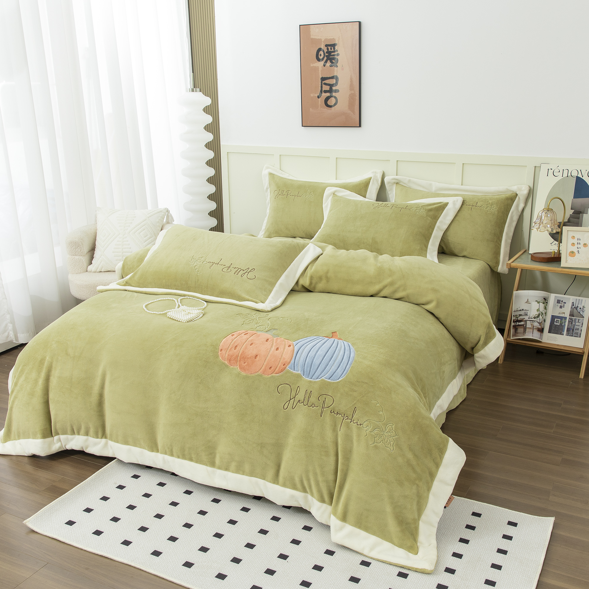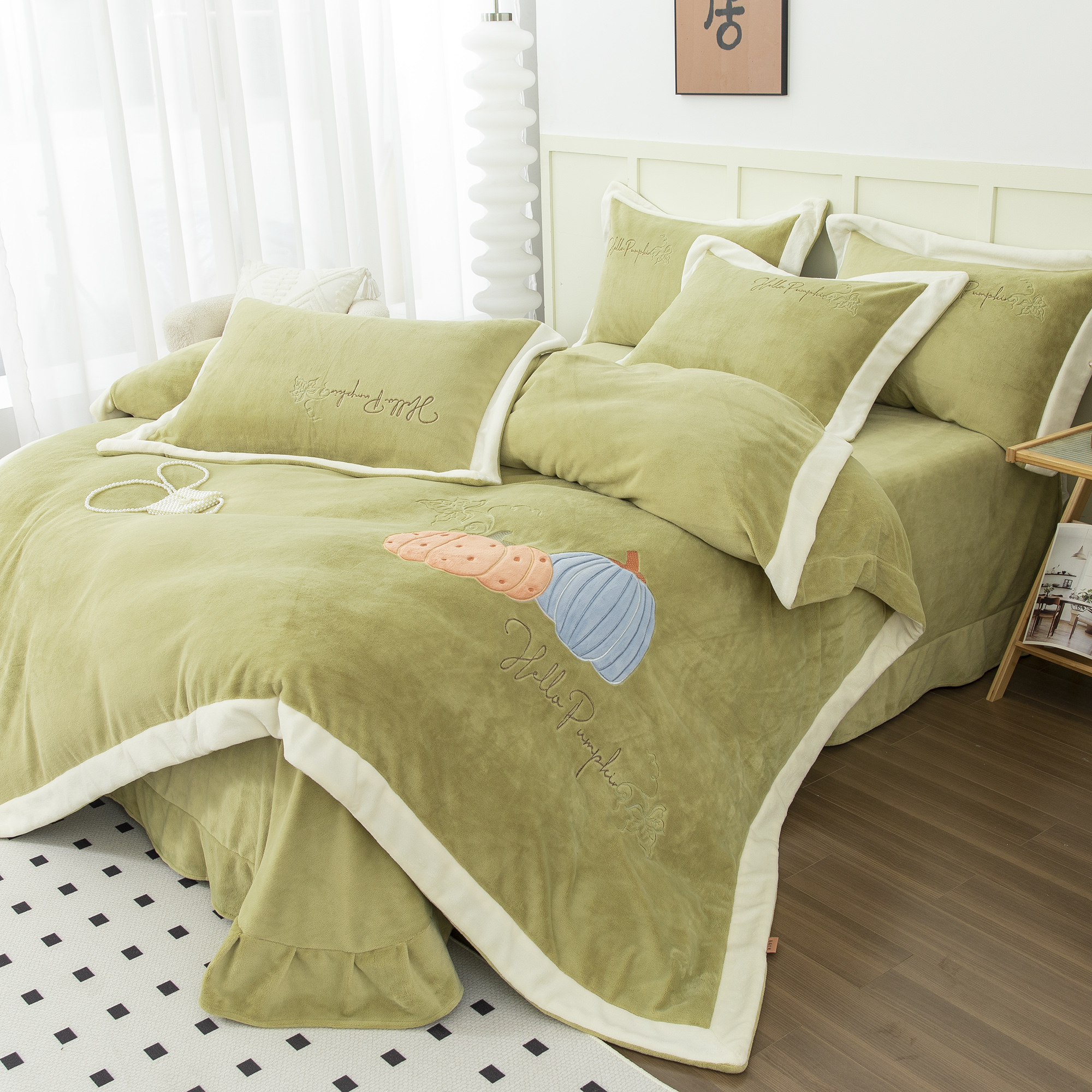 贝尔 2025新款纯色高克重牛奶绒刺绣四件套-羽魅 羽魅-浅绿,羽魅-浅绿