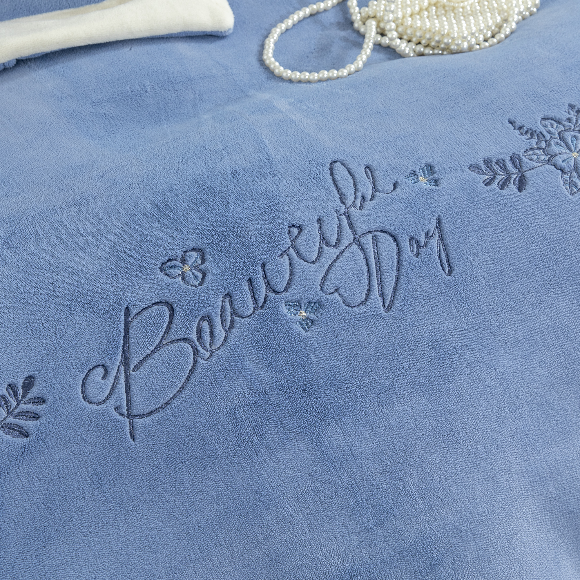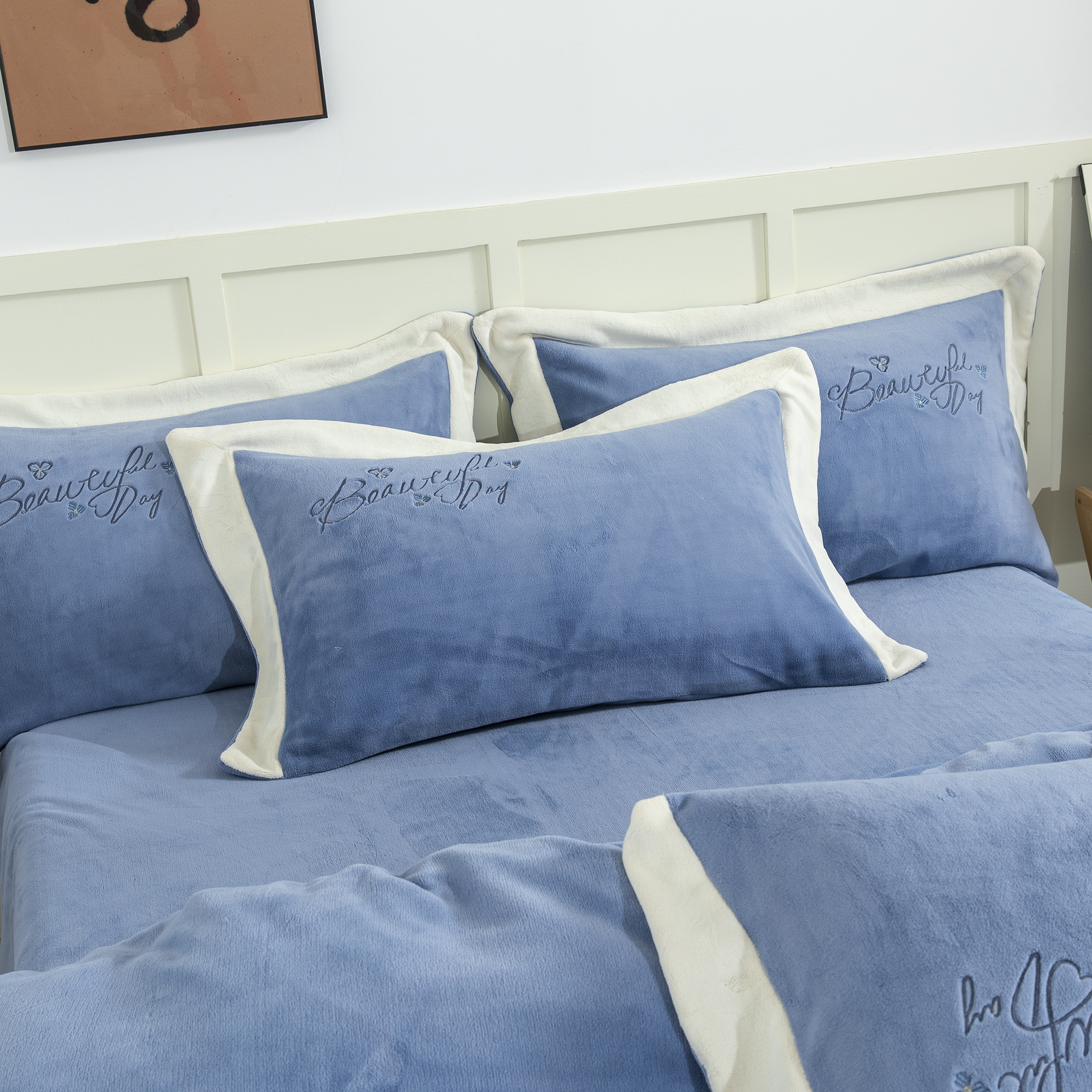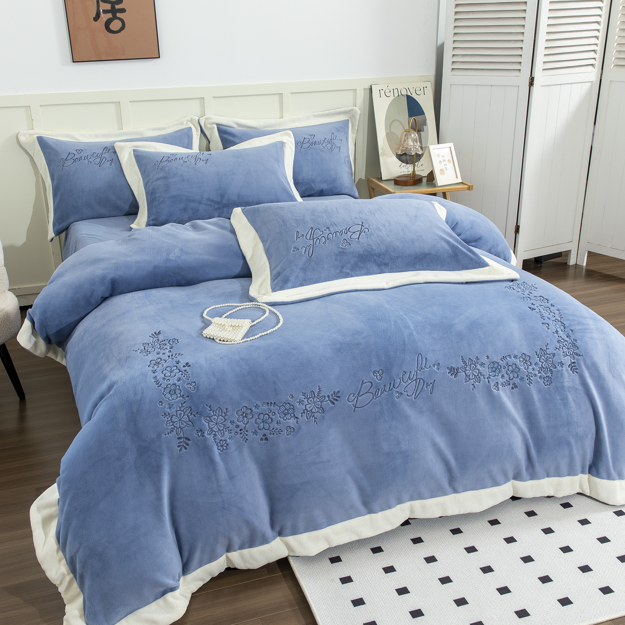 贝尔 2025新款纯色高克重牛奶绒刺绣四件套-羽魅 羽魅-蓝色,羽魅-蓝色