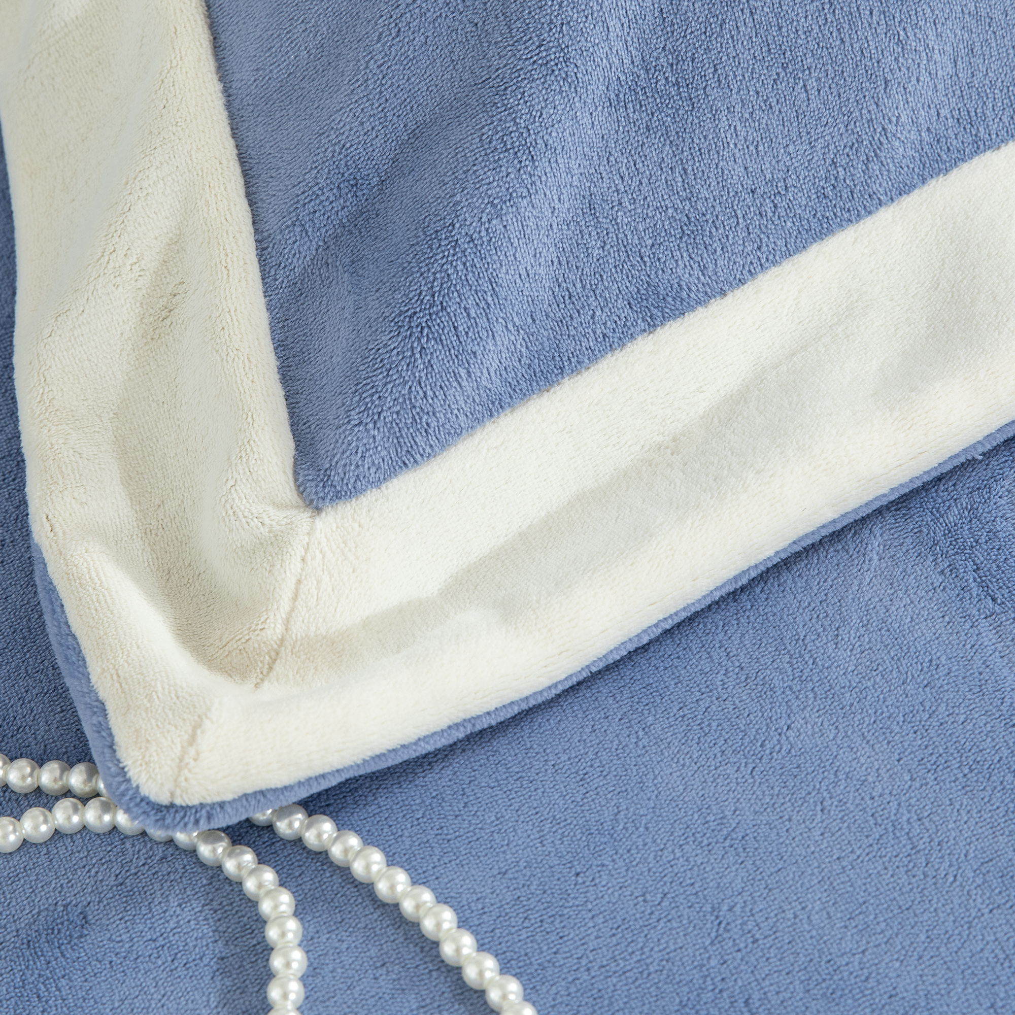 贝尔 2025新款青黛-纯色高克重全消光蚕丝绒(赠送拎袋)拼角刺绣四件套 兰色