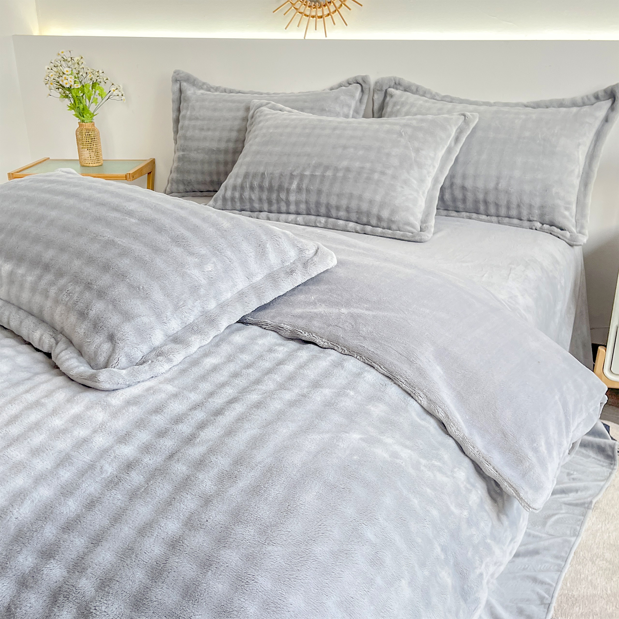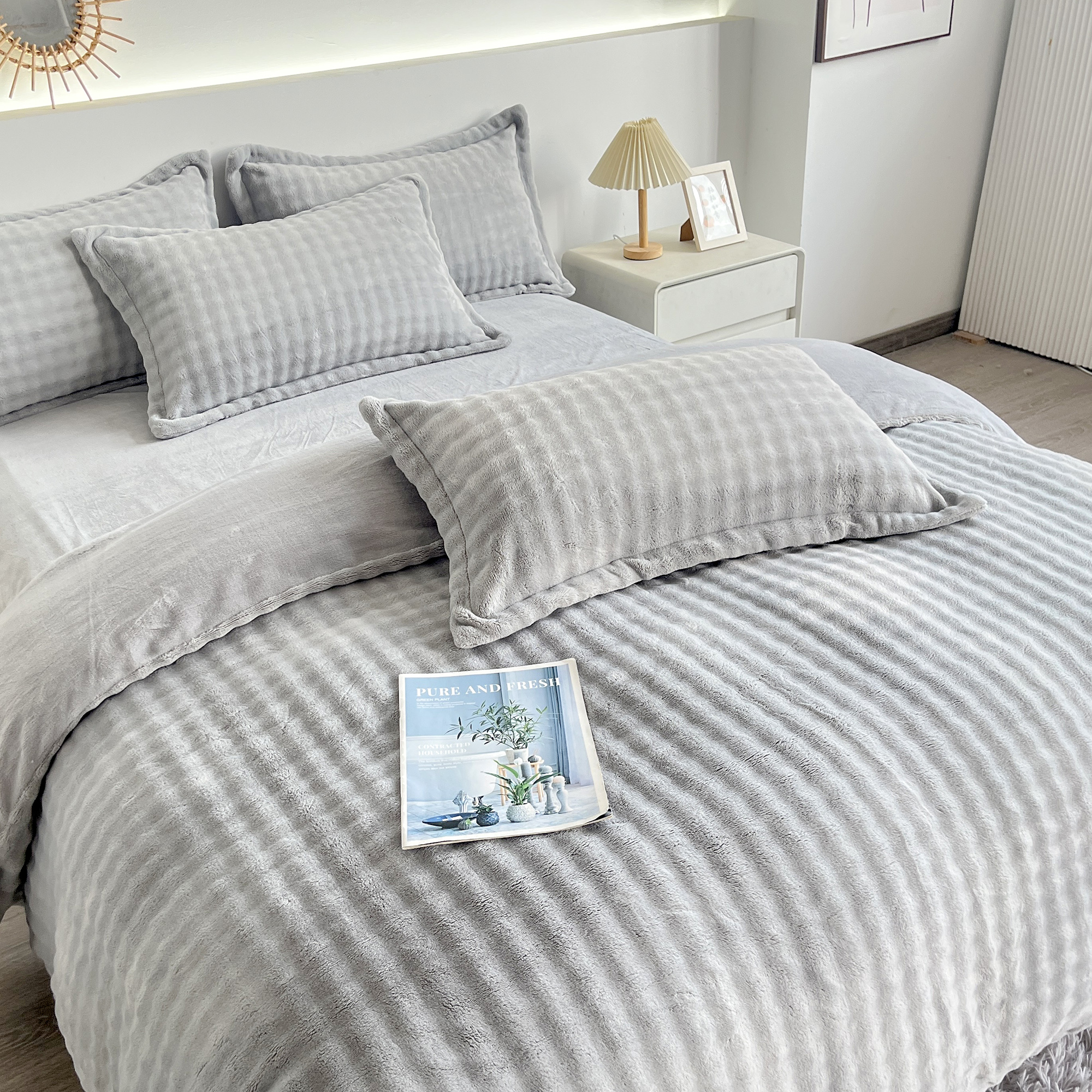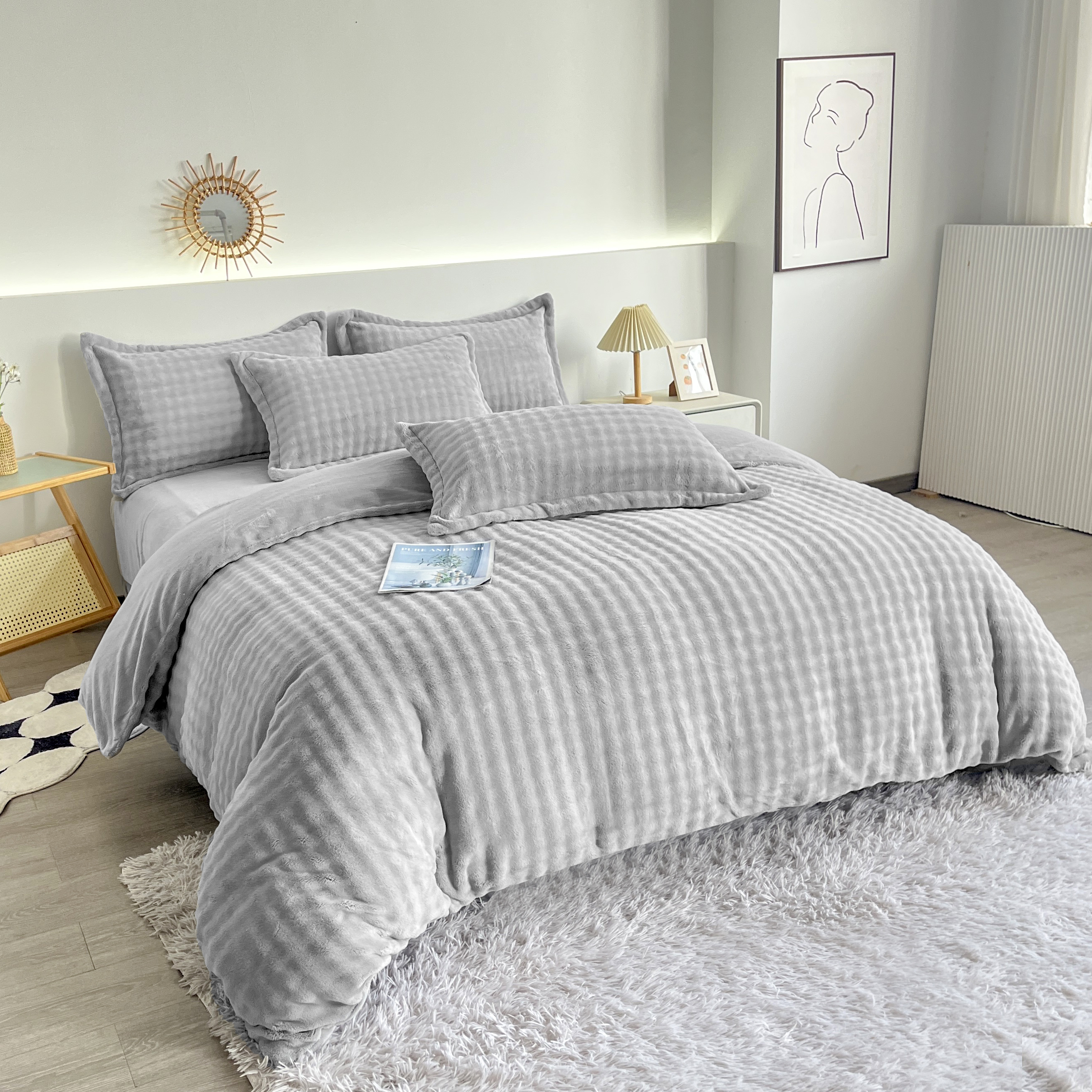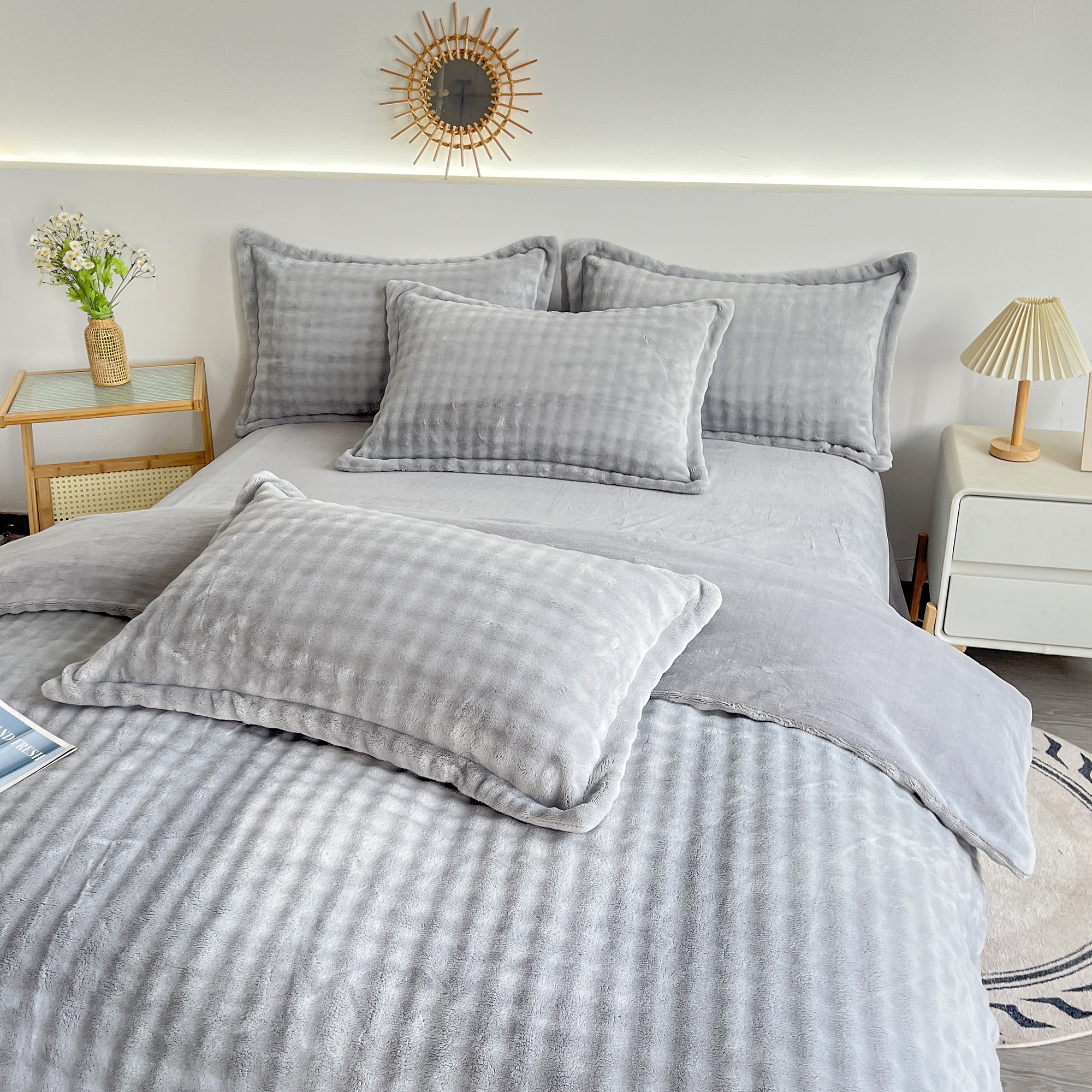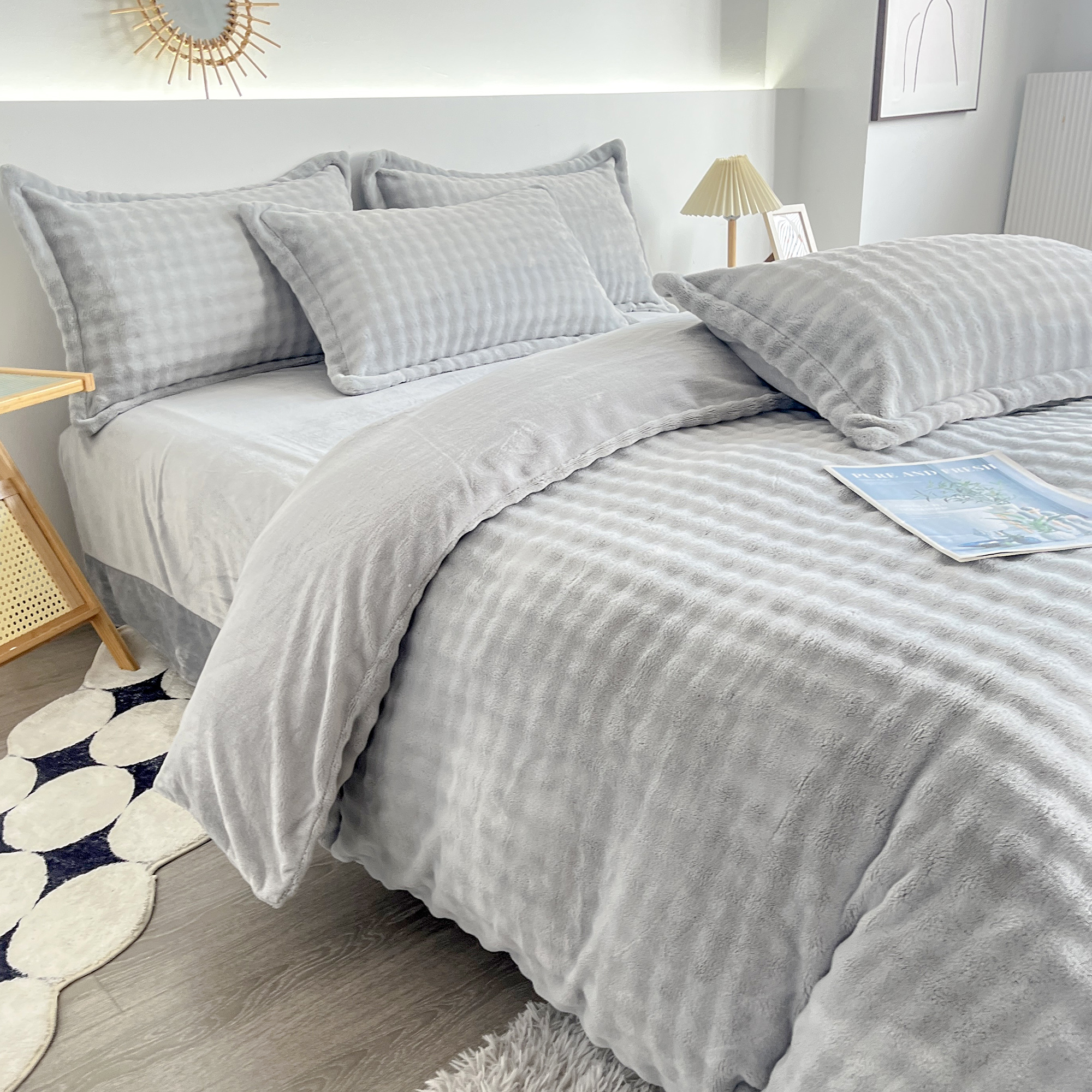 2025新款全消光皮草绒纯色高克重 四件套——泡泡(赠送拎袋) 银灰