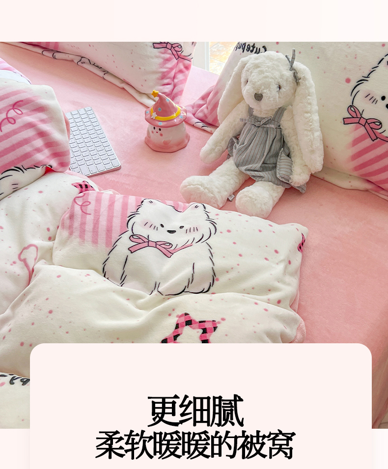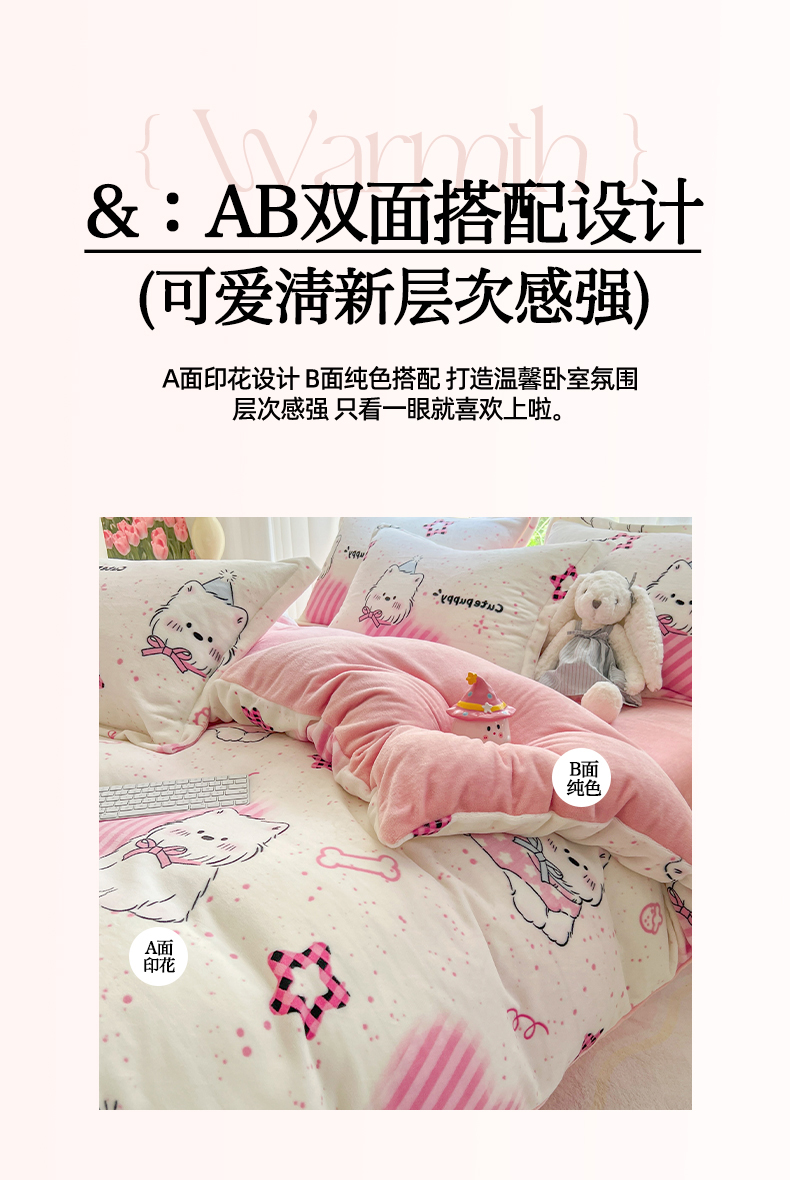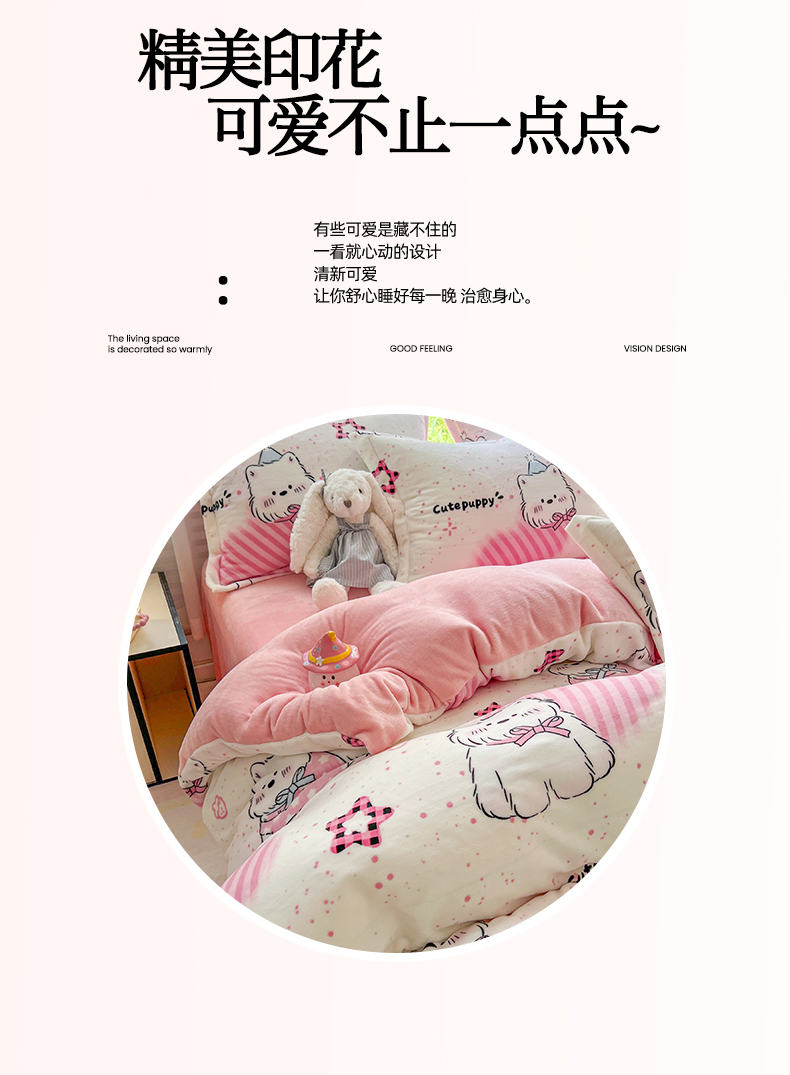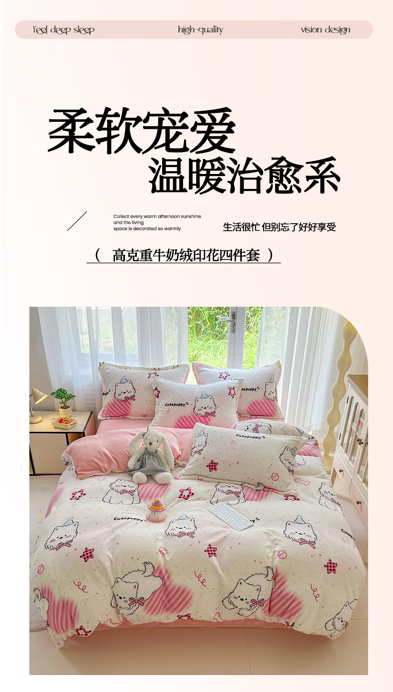 当前位置: 91家纺网 > 商品网购 > 床品套件 > 四件套 > 牛奶绒四件套 > 妖妖家纺 2025新款高克重200克牛奶绒印花四件套 心尖萌汪