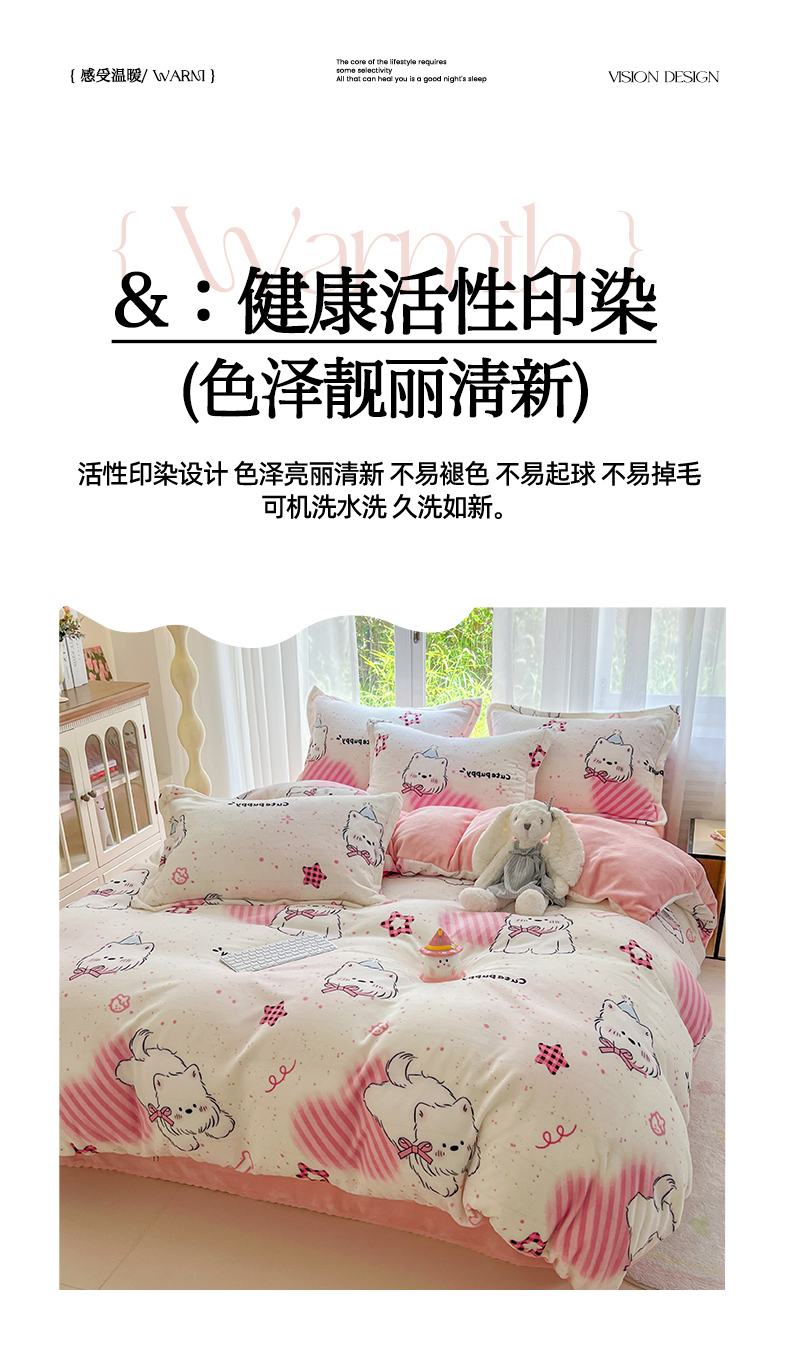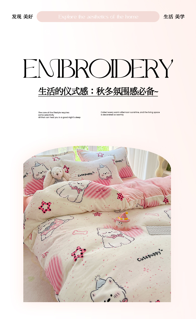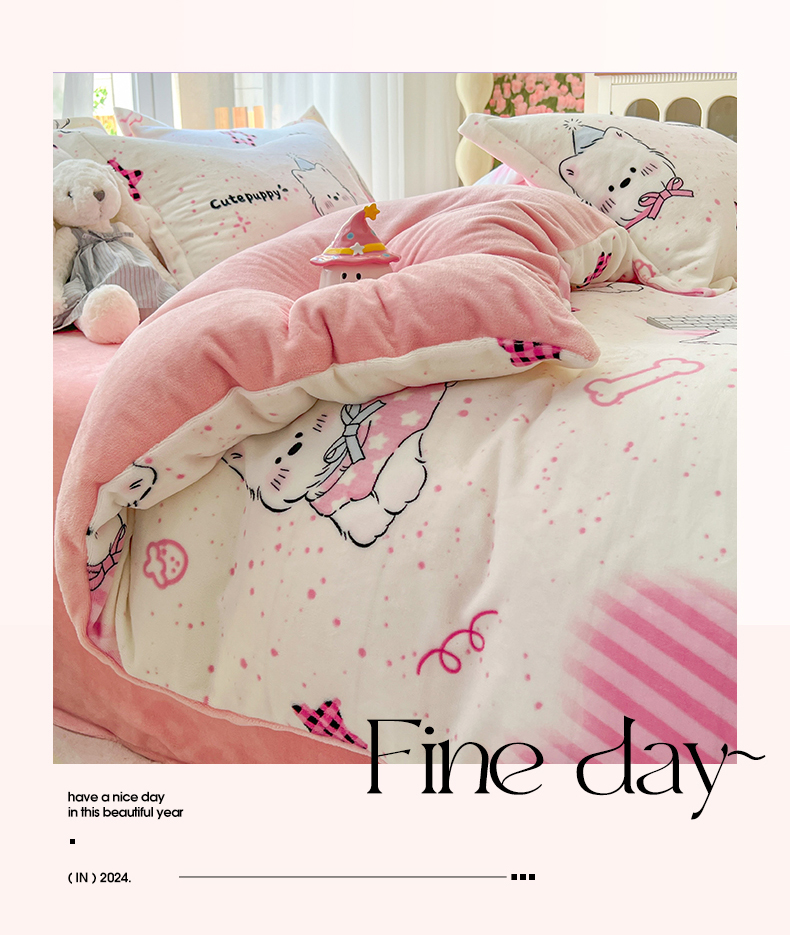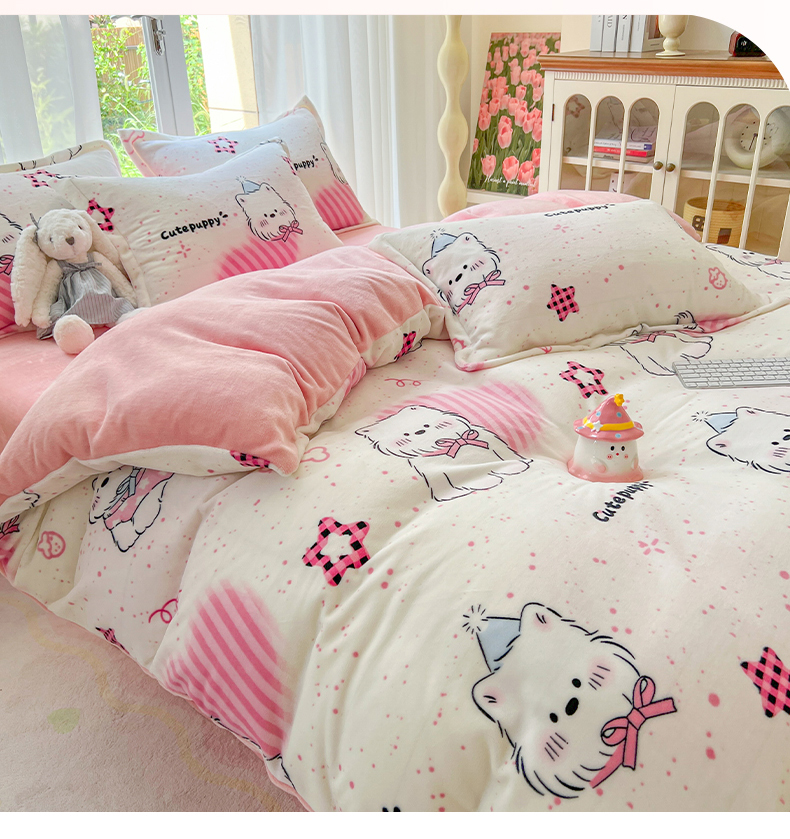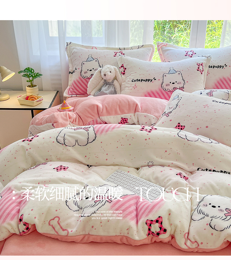 当前位置: 91家纺网 > 商品网购 > 床品套件 > 四件套 > 牛奶绒四件套 > 妖妖家纺 2025新款高克重200克牛奶绒印花四件套 心尖萌汪