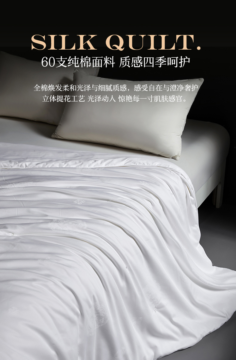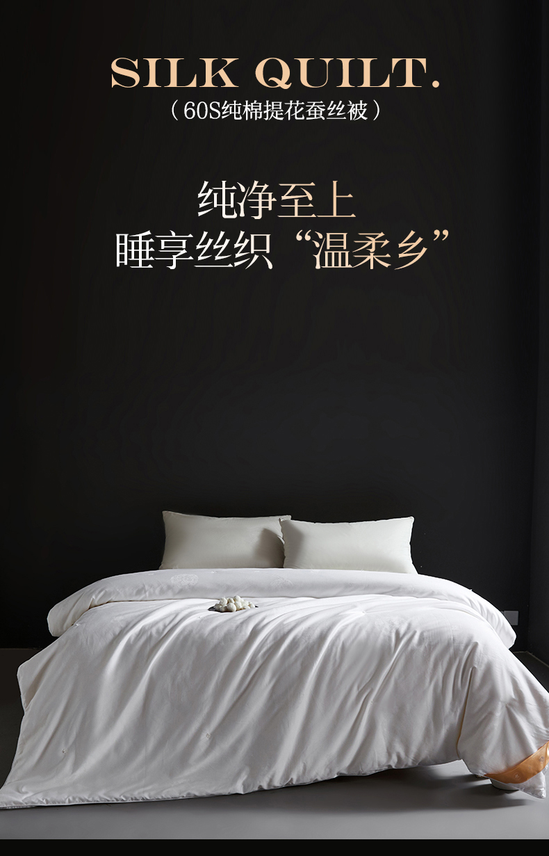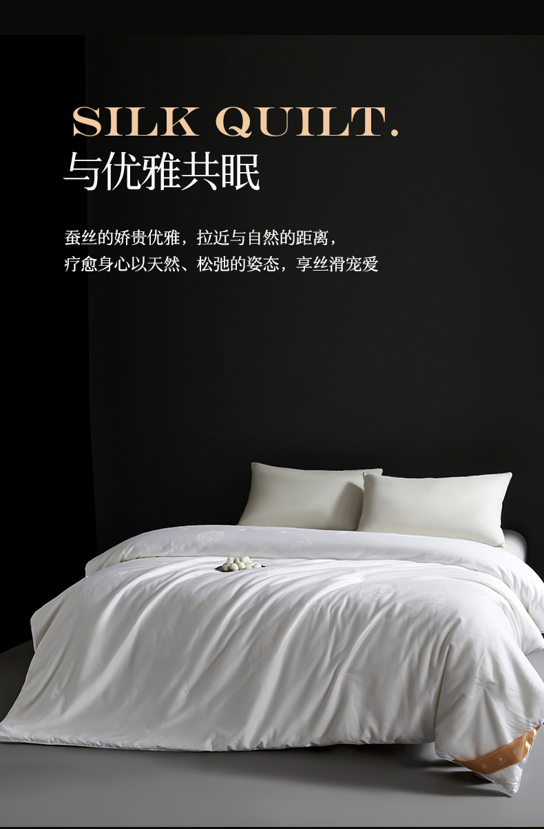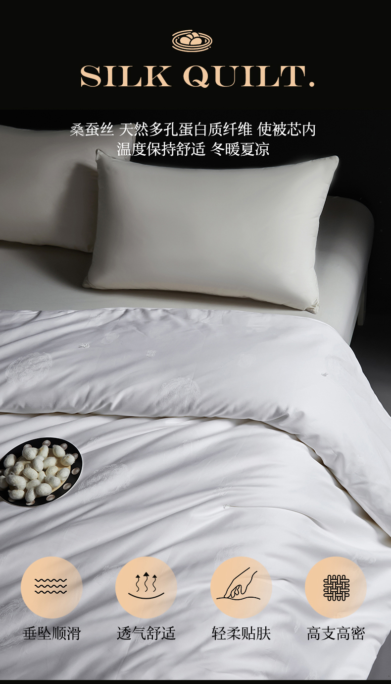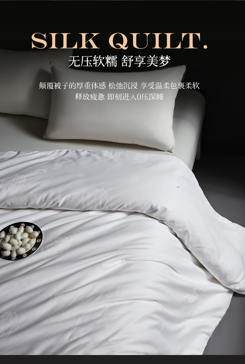 • 91家纺网 家纺一手货源 找家纺 金同成家纺 2025新款100%纯桑蚕丝被纯棉春秋冬季婚庆子母被喜被 雪莹白