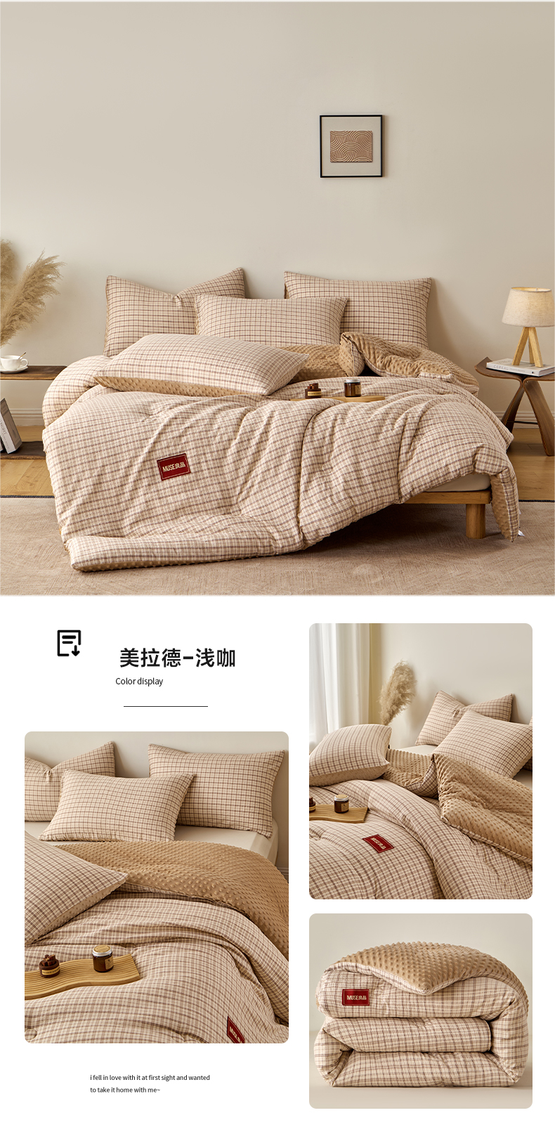 商品名称:(总)玛德琳 2025新款美拉德条格抗菌豆豆绒抗菌被被子被芯