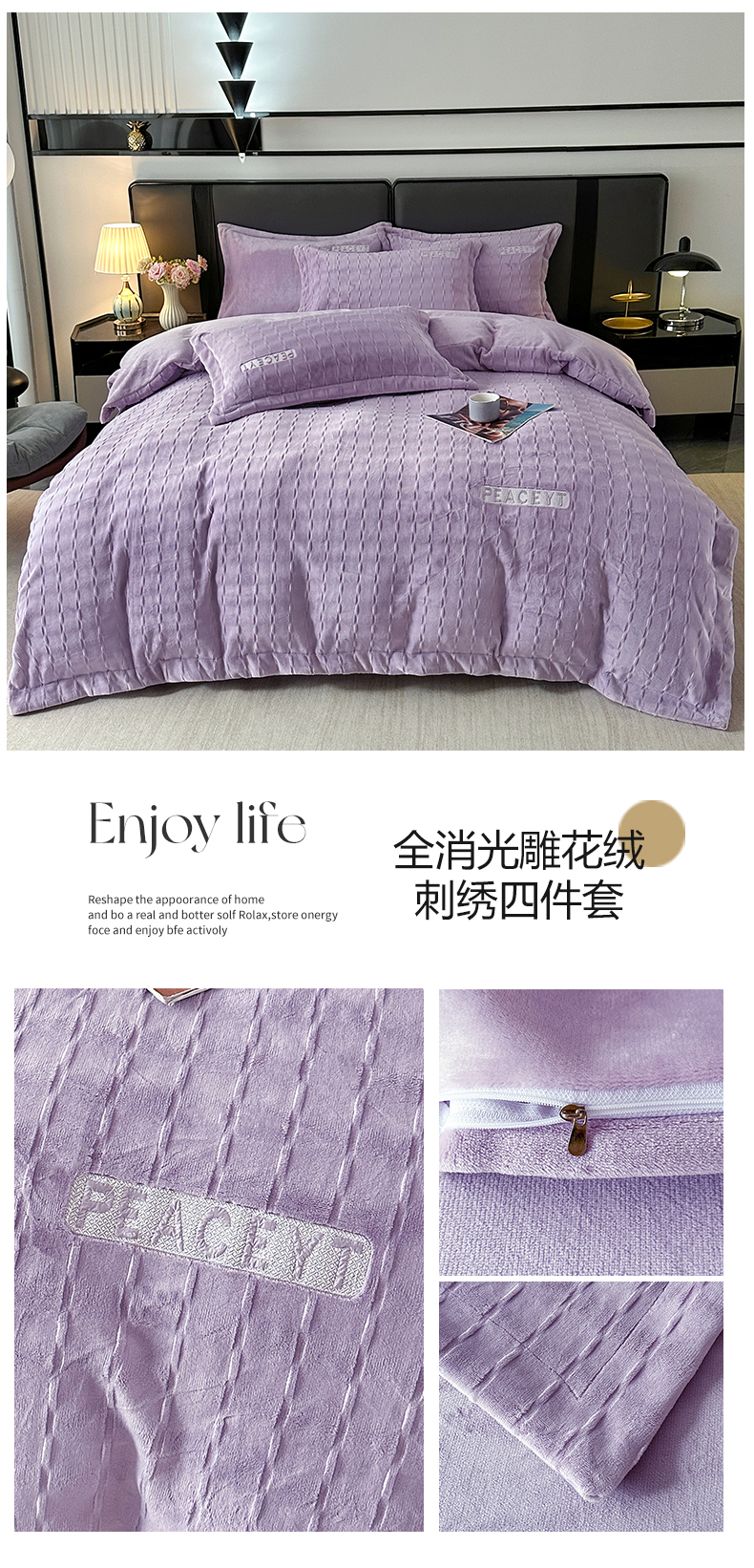 (总)梓之赫 2025新款保暖舒适牛奶绒印花夹棉床盖四件套,爱恋,豹纹,花盏-白,花盏-黑,眷恋,如约,心愿,约定