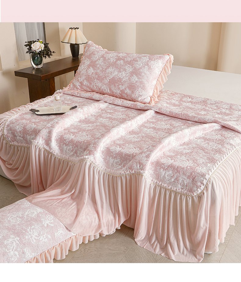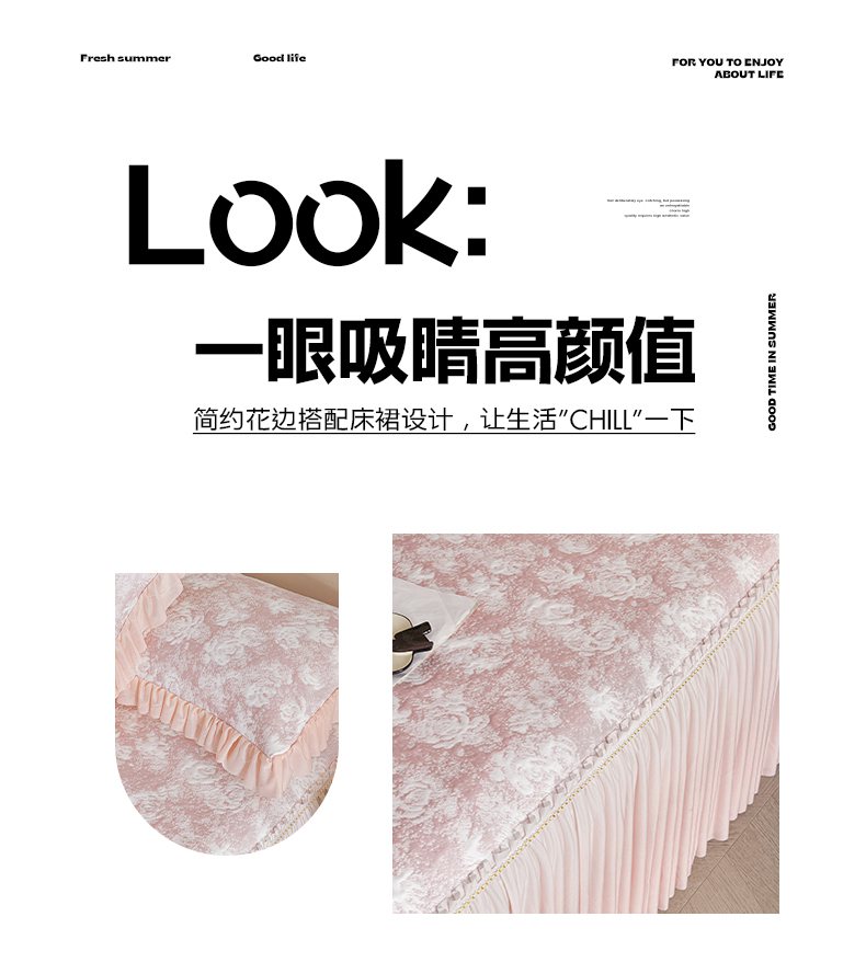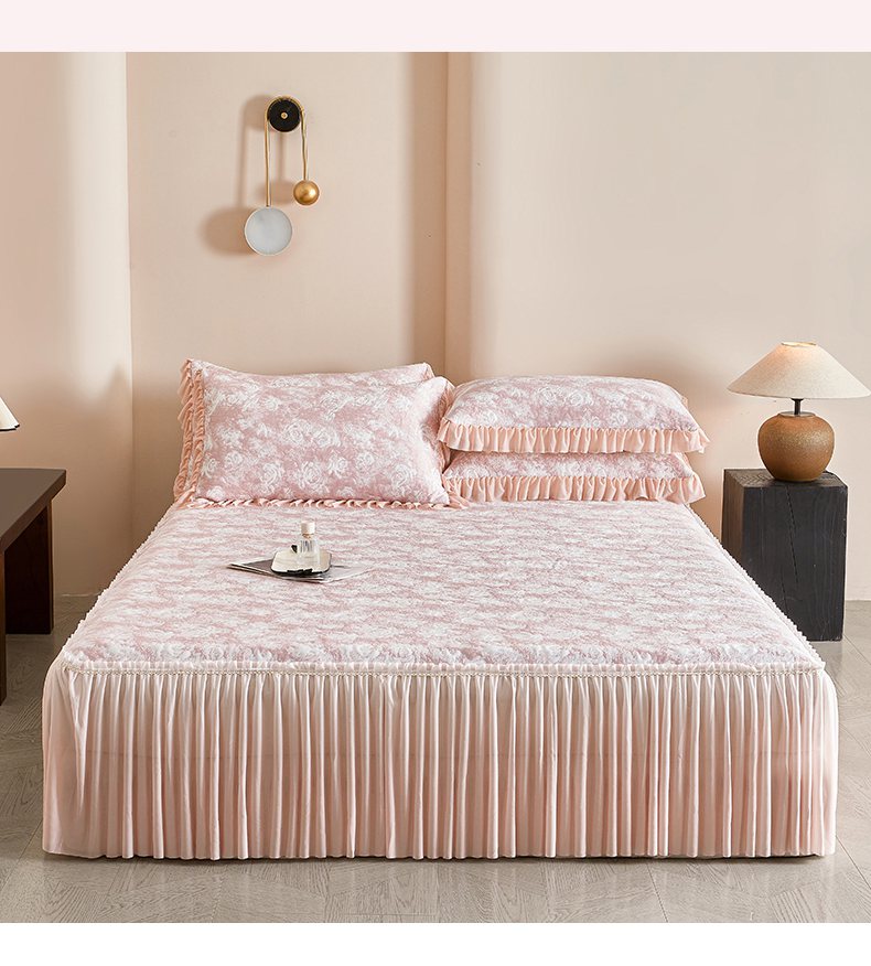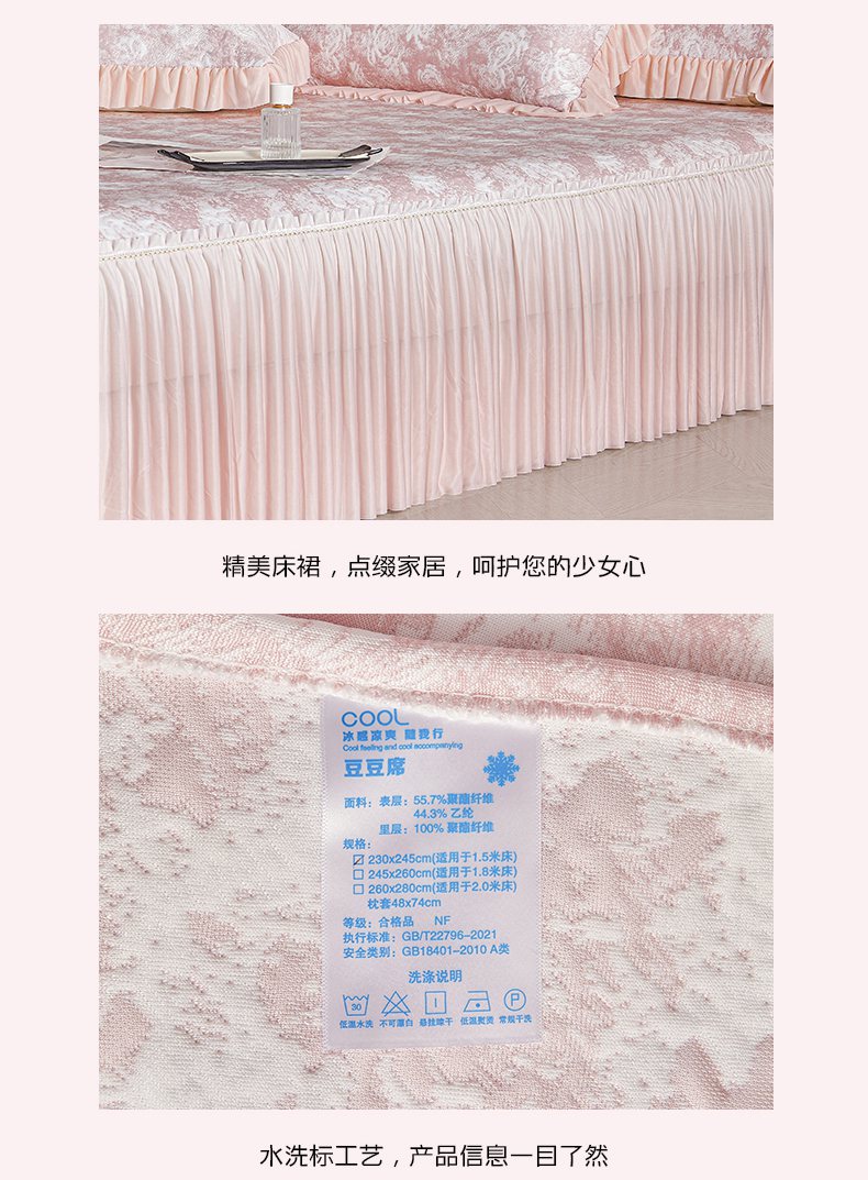 商品名称:畅畅家纺 2025新款PE凉感豆豆冰豆豆冰丝床裙款三件套 红玫瑰