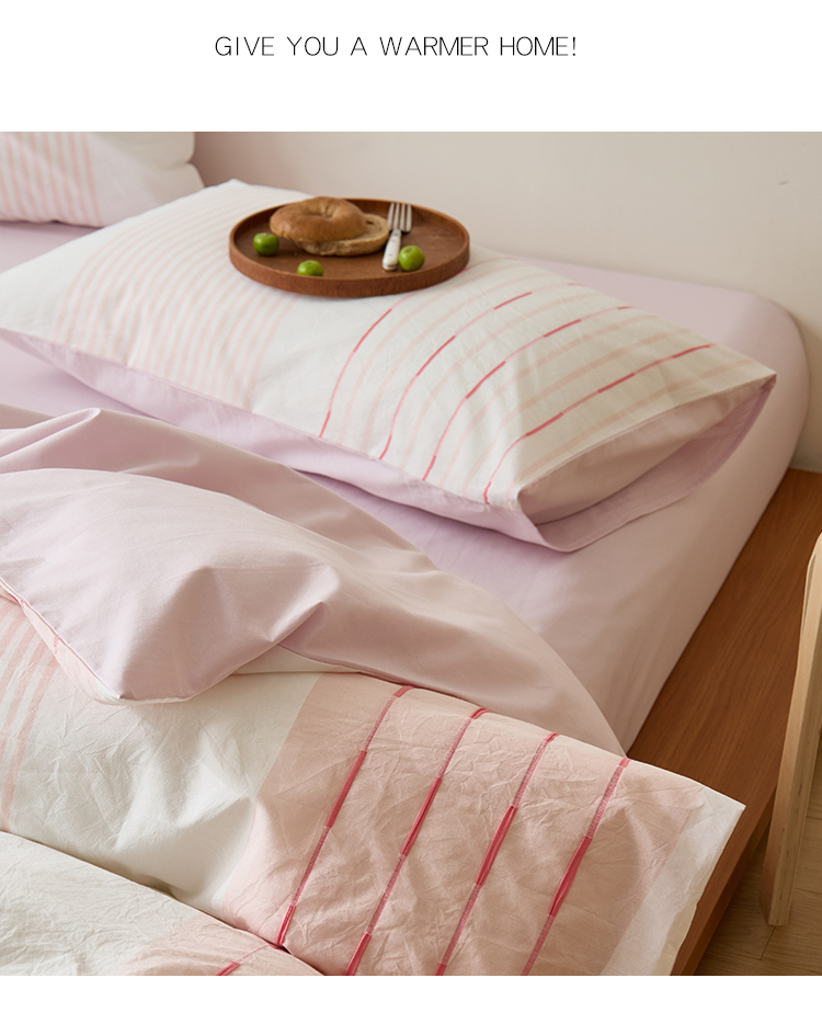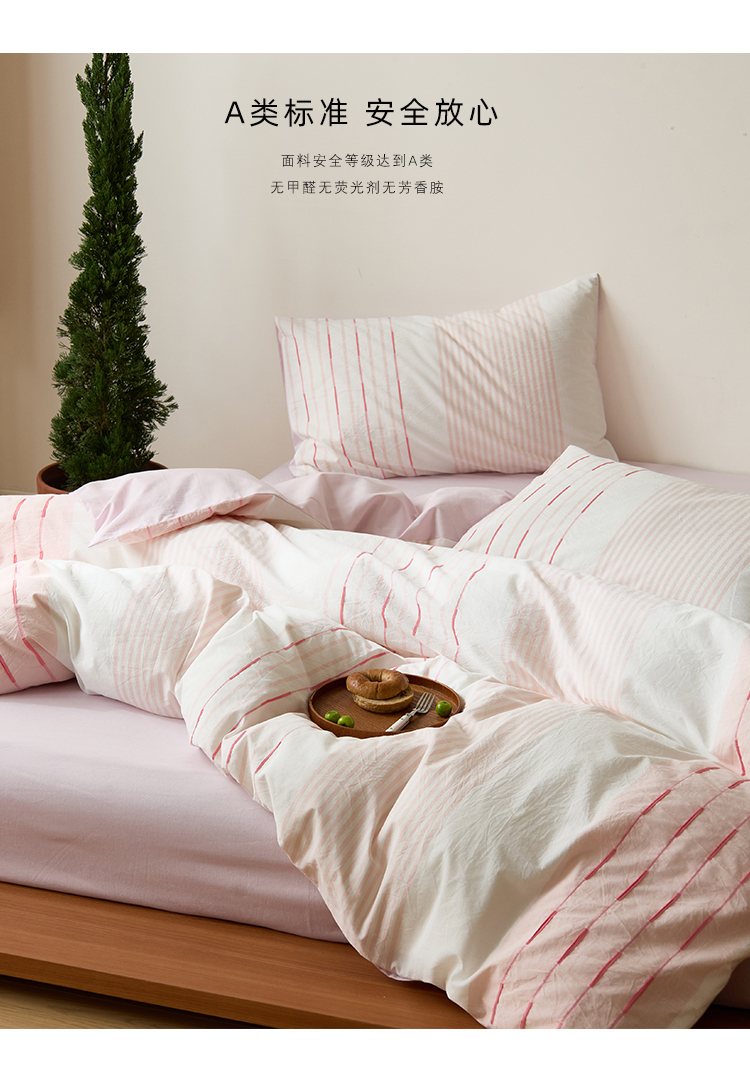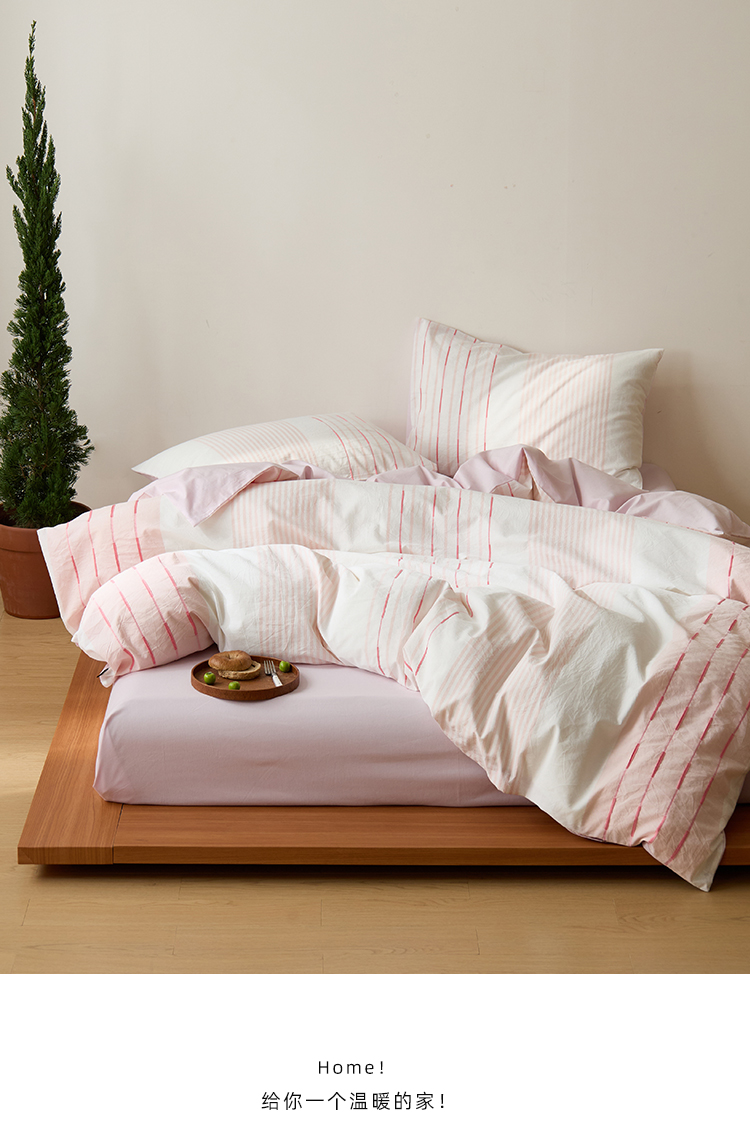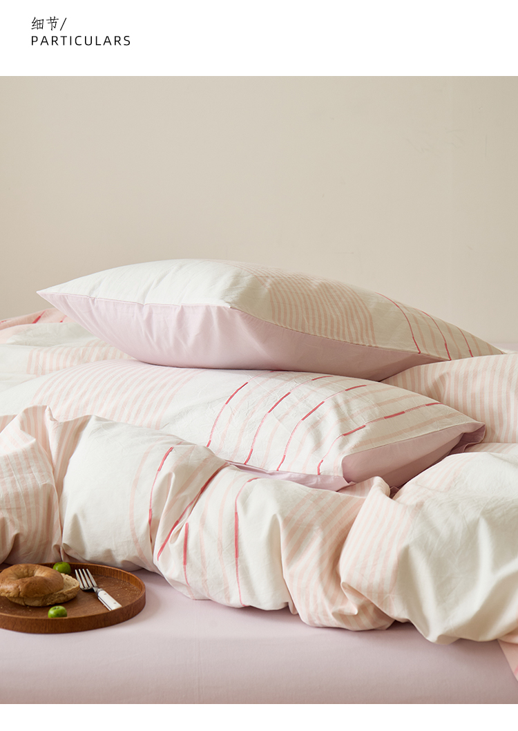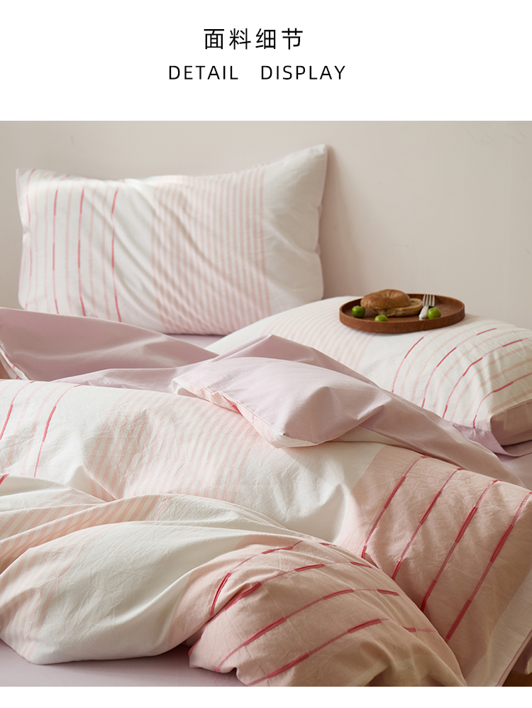 商品名称:Mr.pig猪先生水洗棉 2025新款全棉色织立体四件套 素雅粉