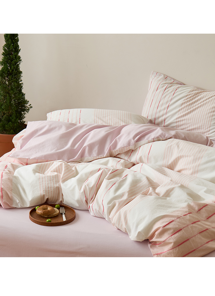 Mr.pig猪先生水洗棉 2025新款全棉色织立体四件套 素雅粉