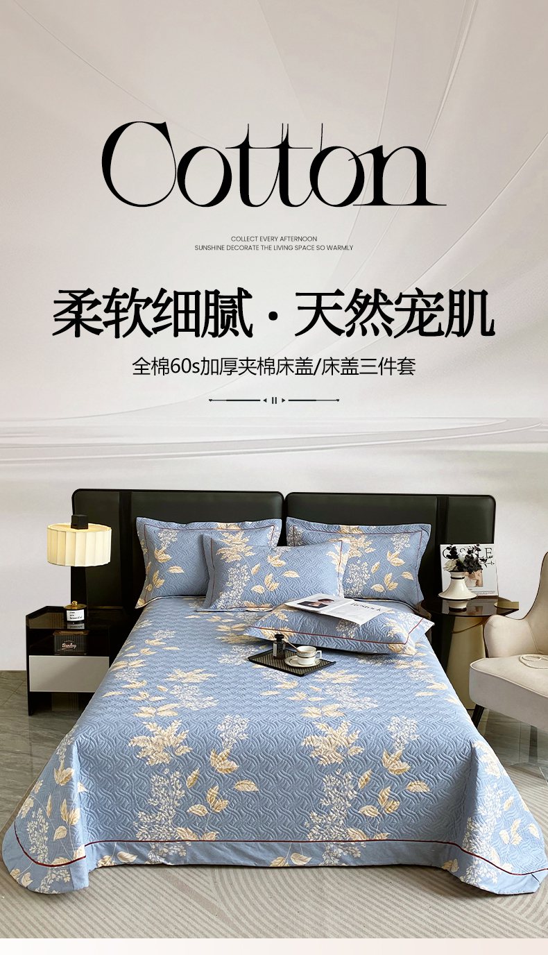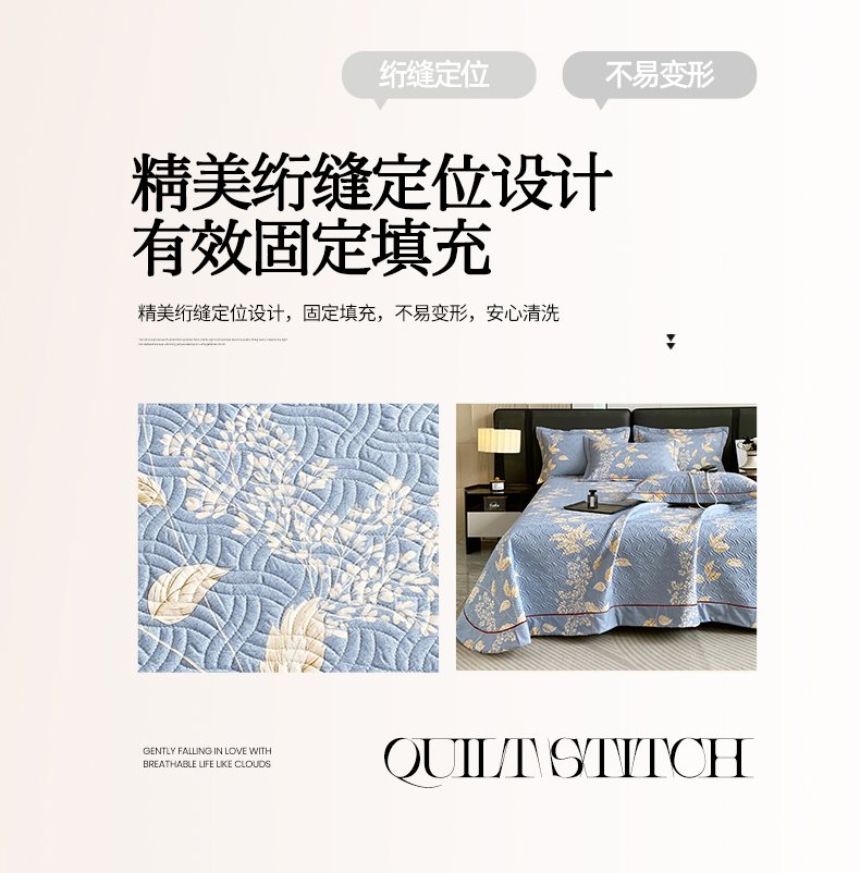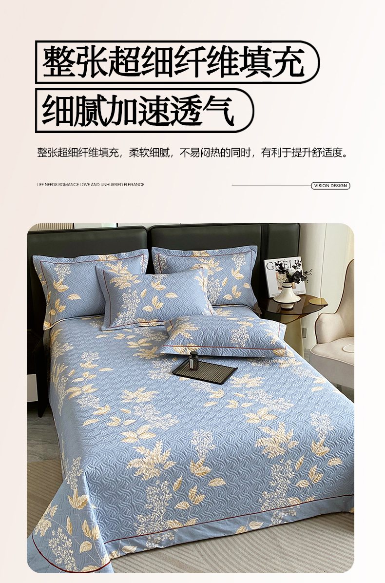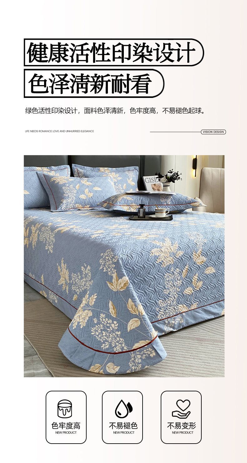 • 91家纺网 家纺一手货源 找家纺 畅畅家纺 2025春夏款13372全棉纯棉活性印花床盖夹棉加厚绗缝防滑床罩 枝繁叶茂蓝