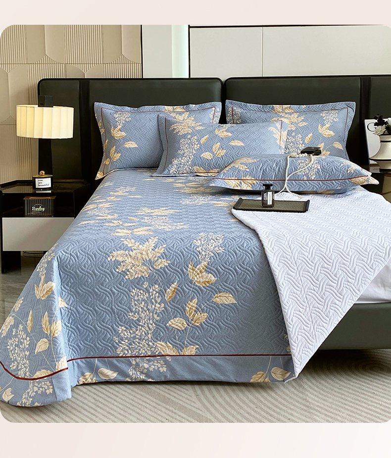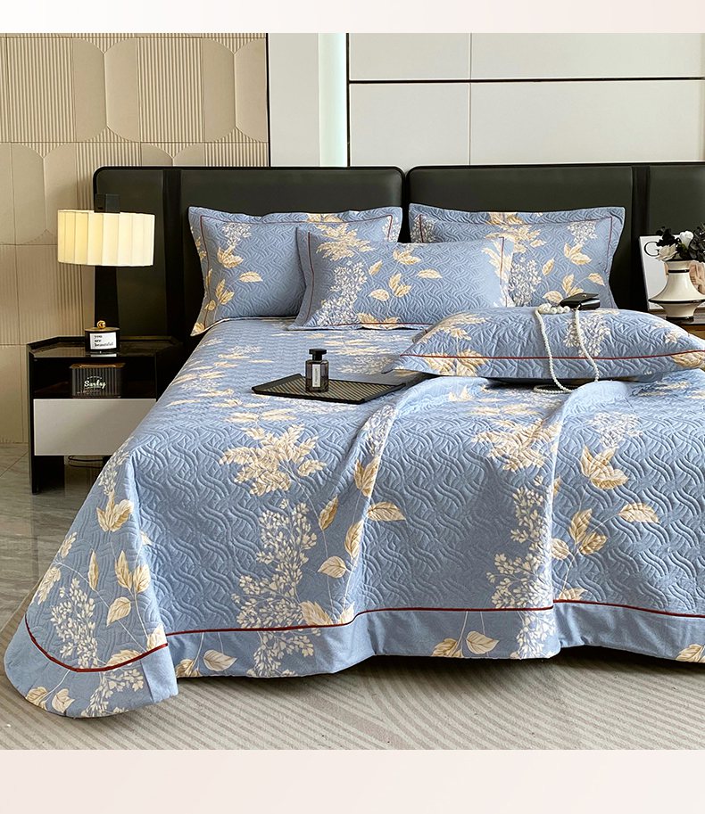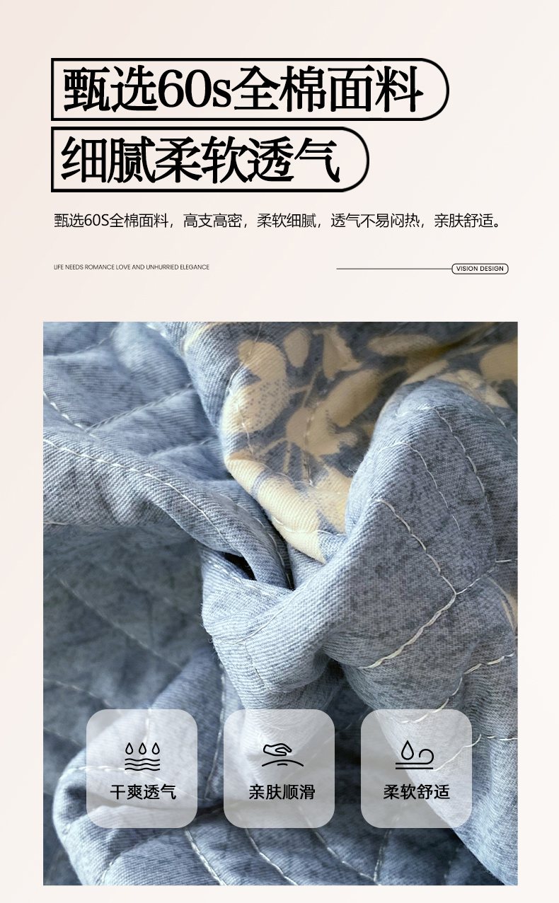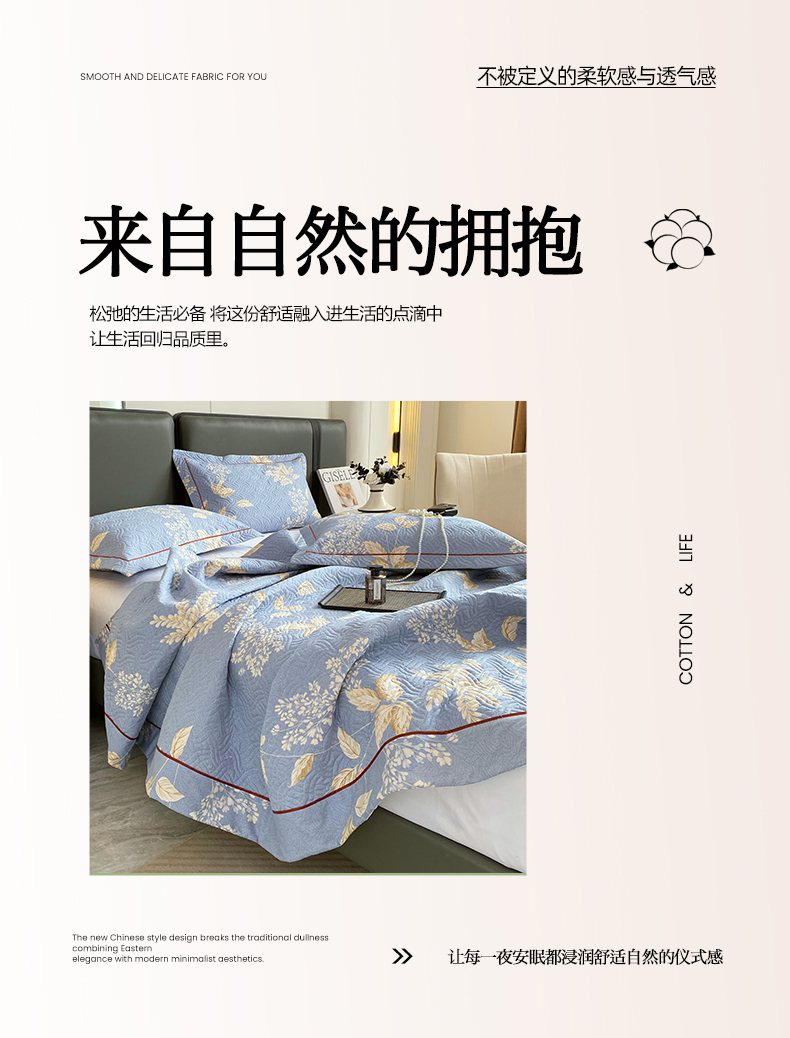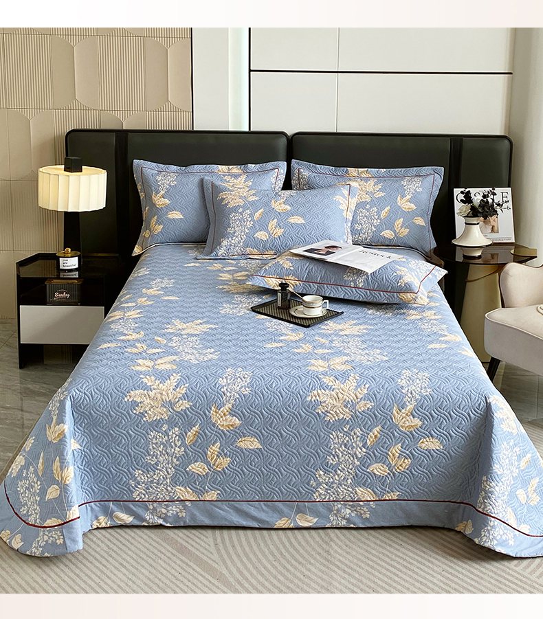 • 91家纺网 家纺一手货源 找家纺 畅畅家纺 2025春夏款13372全棉纯棉活性印花床盖夹棉加厚绗缝防滑床罩 枝繁叶茂蓝