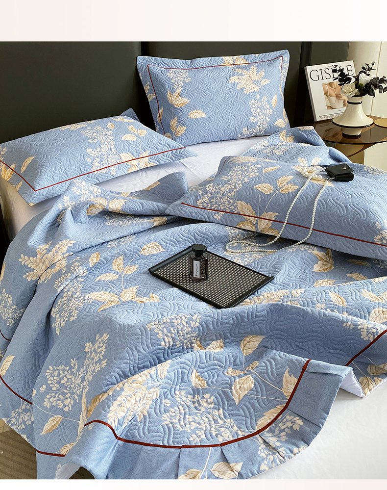 畅畅家纺 2025春夏款13372全棉纯棉活性印花床盖夹棉加厚绗缝防滑床罩 枝繁叶茂蓝