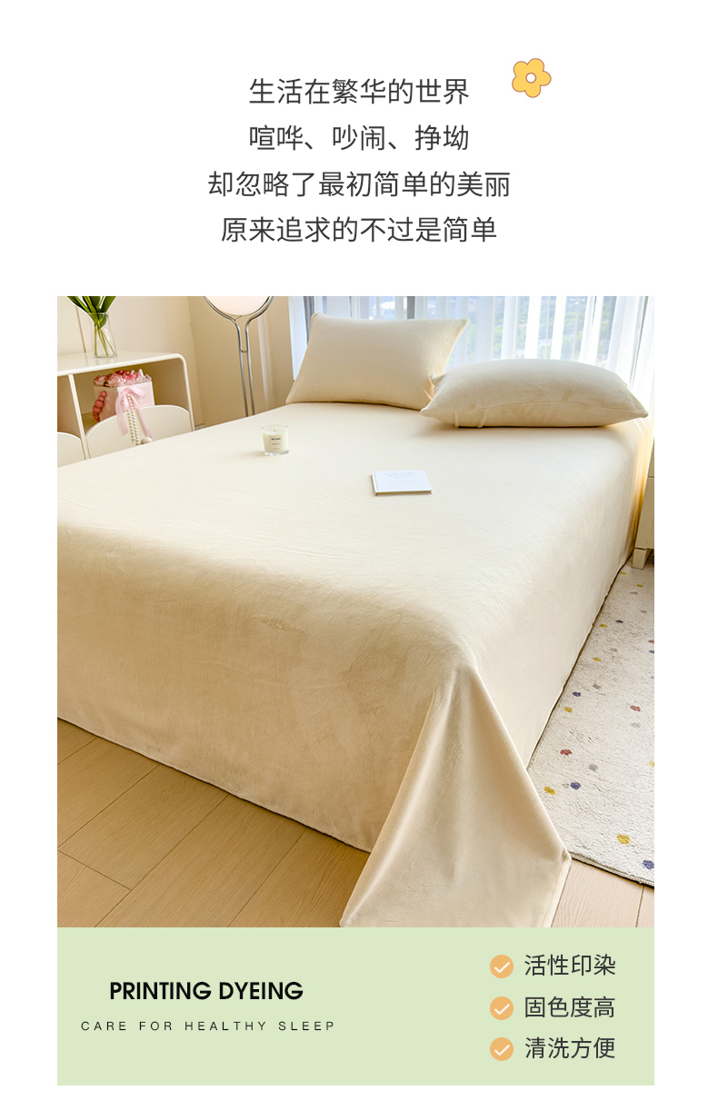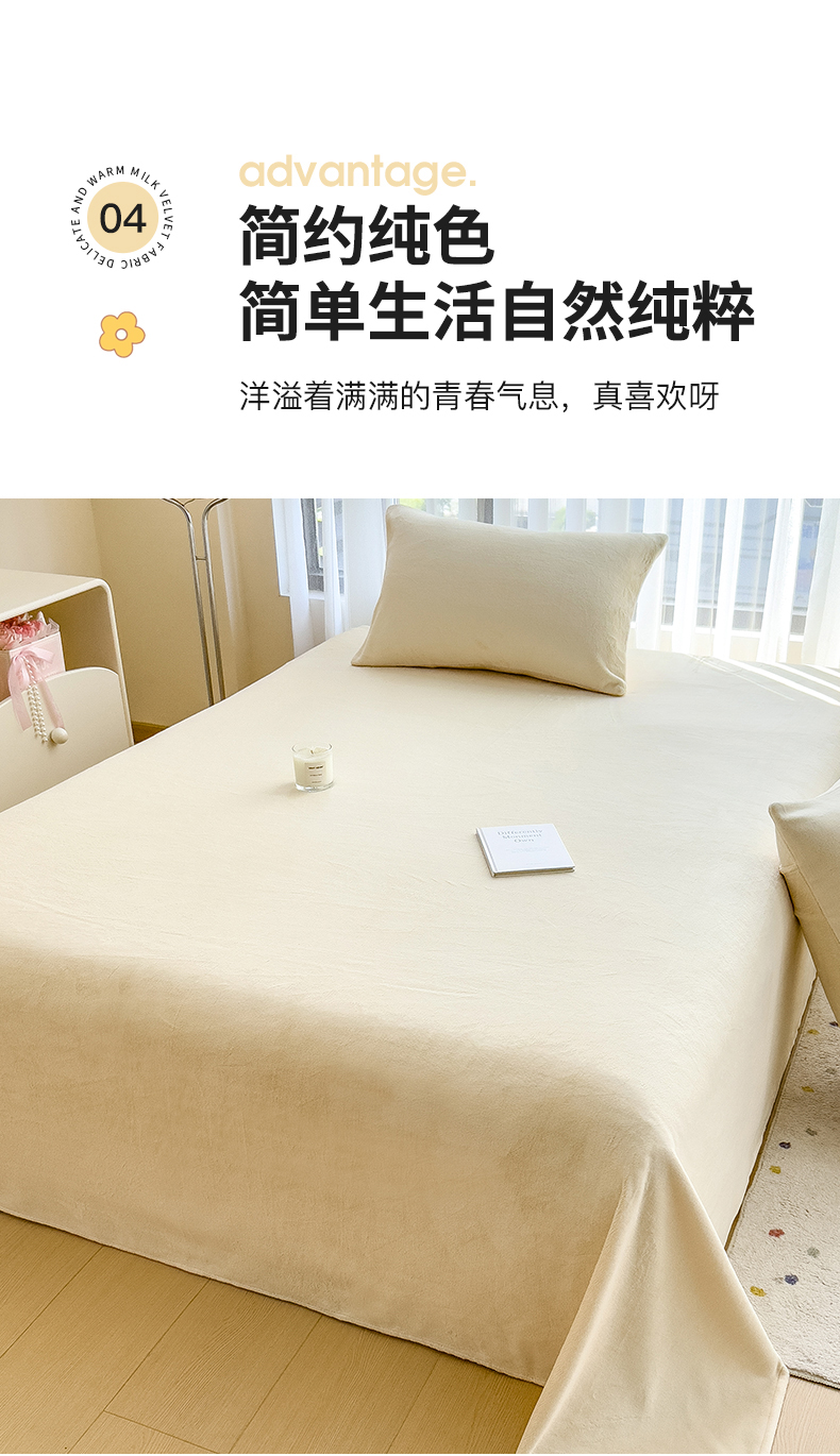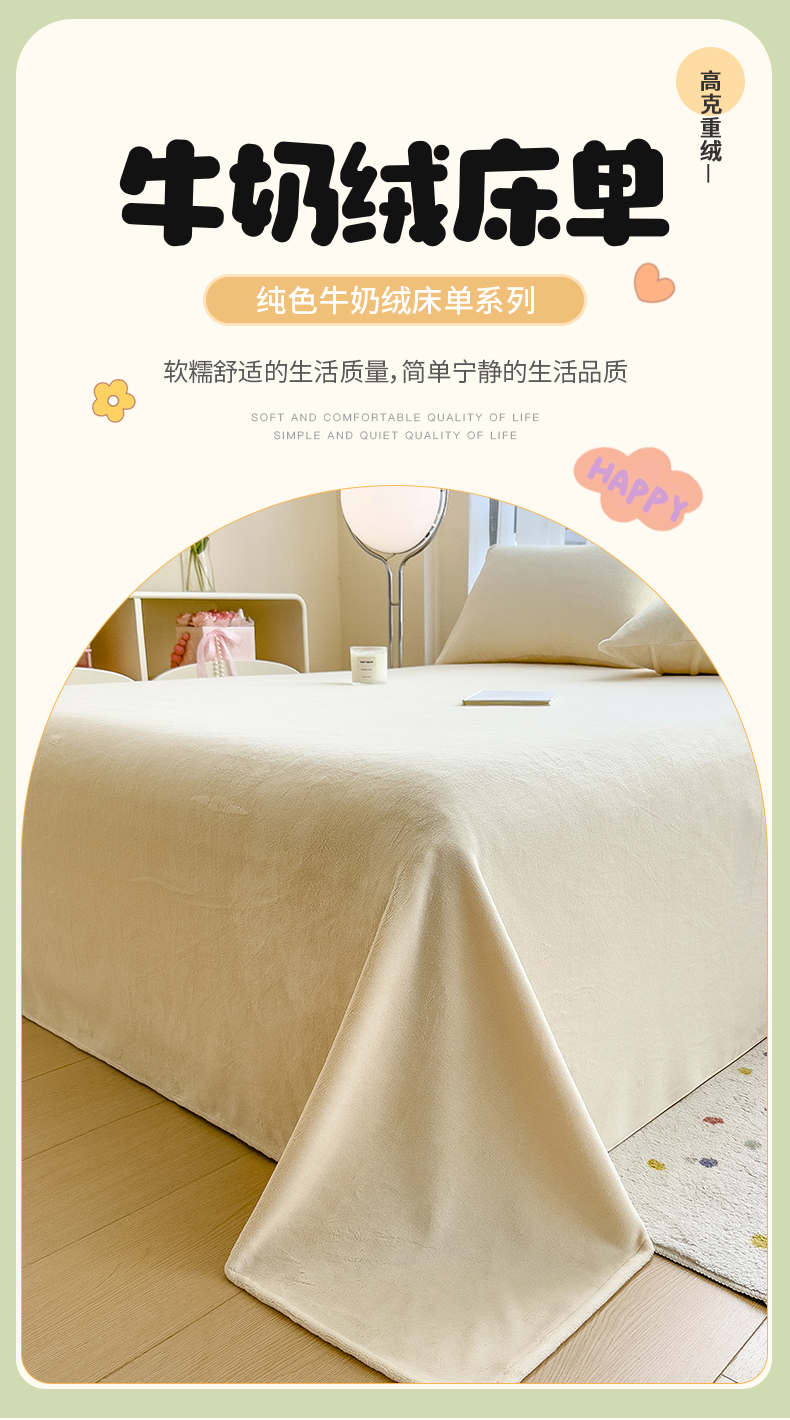 丽美人家纺 2025秋冬新款牛奶绒纯色单床单 茶花白