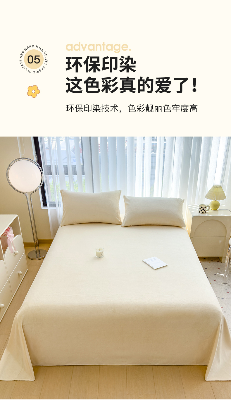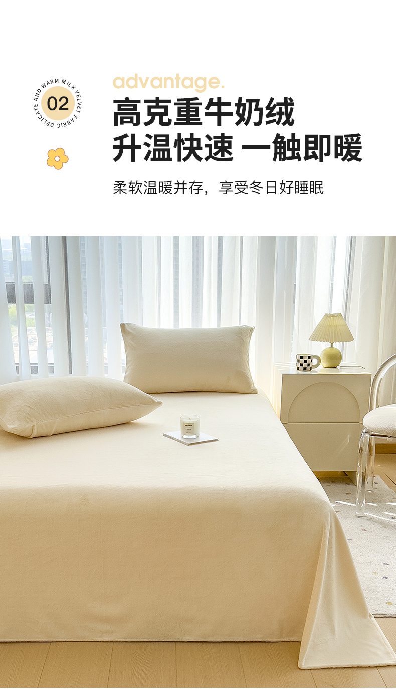 • 91家纺网 家纺一手货源 找家纺 丽美人家纺 2025秋冬新款牛奶绒纯色单床单 茶花白