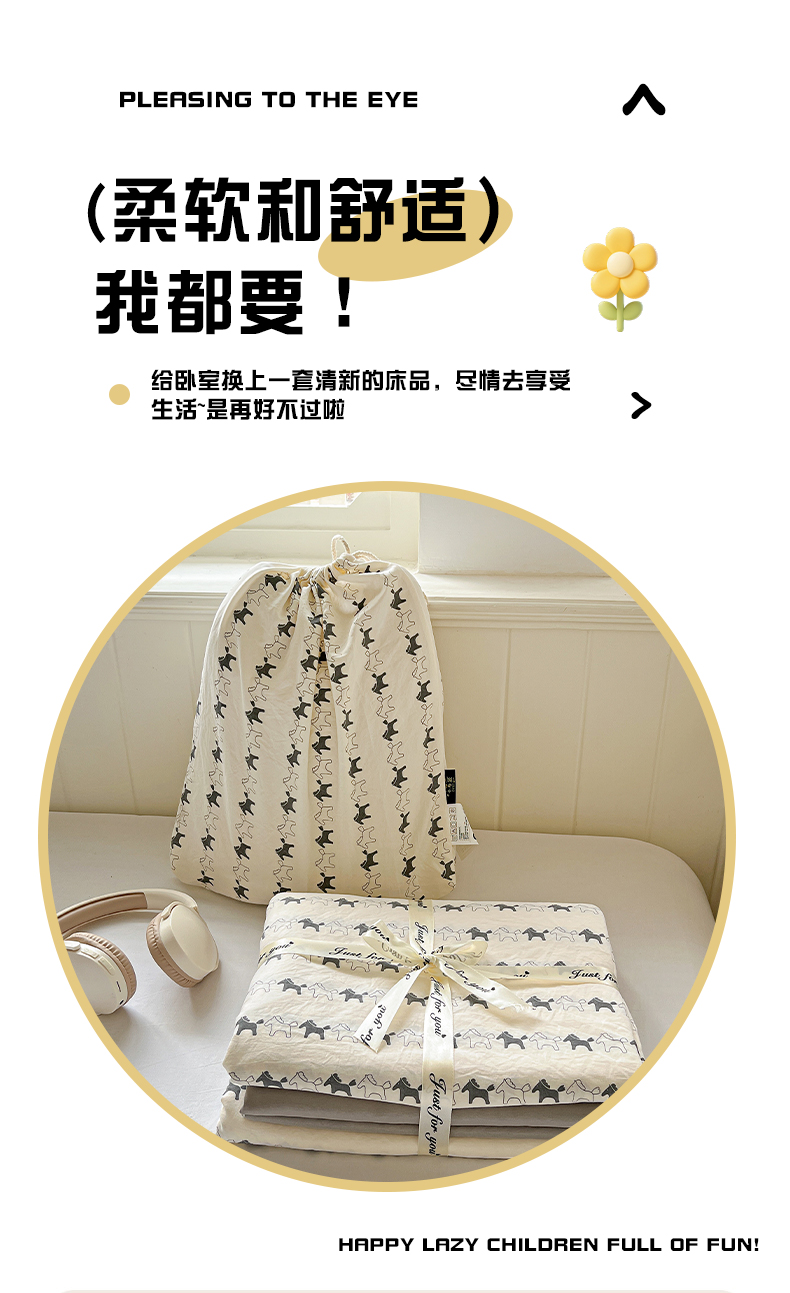 当前位置: 91家纺网 > 商品网购 > 床品套件 > 四件套 > 水洗棉四件套 > 暖芯优选 2025新款加厚爆款小布袋韩国古法水洗棉床单学生三件套床笠款四件套 小马漫步
