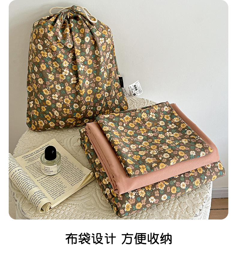 当前位置: 91家纺网 > 商品网购 > 床品套件 > 四件套 > 其它四件套 > 优选 2025新款加厚爆款小布袋韩国古法水洗棉床单学生三件套床笠款四件套 复古花田