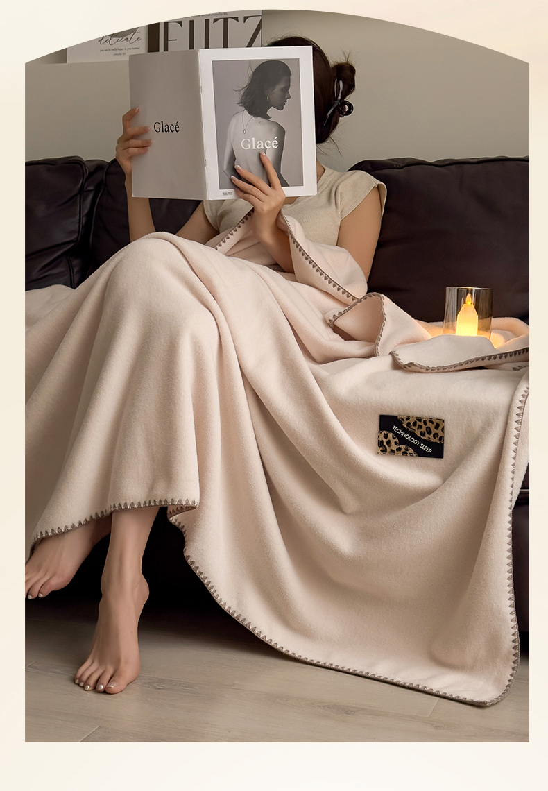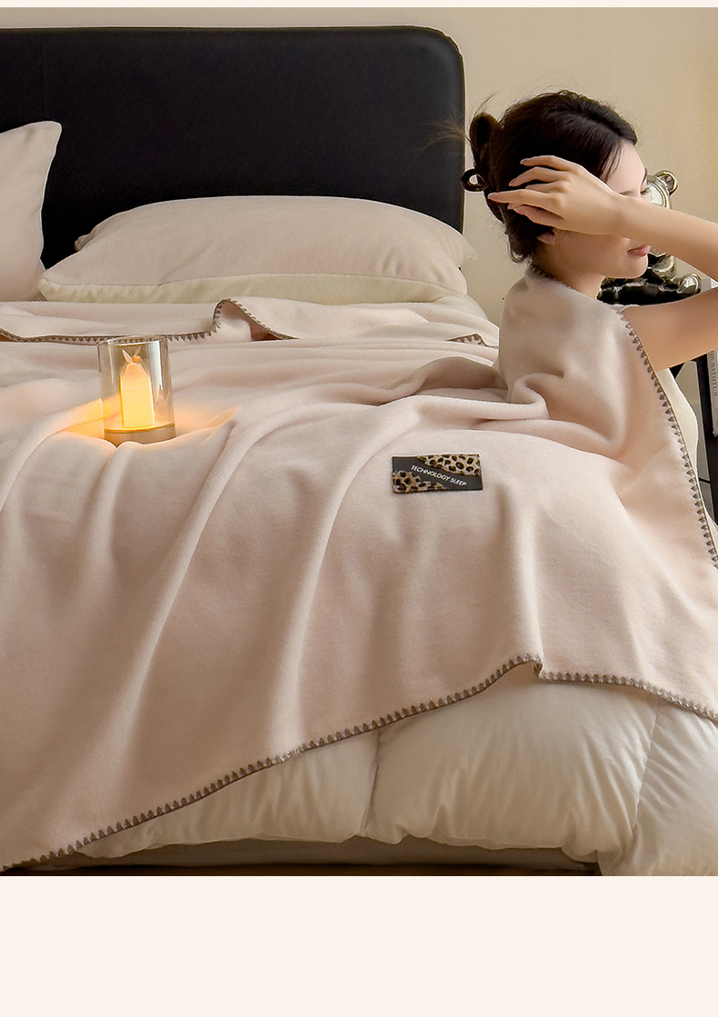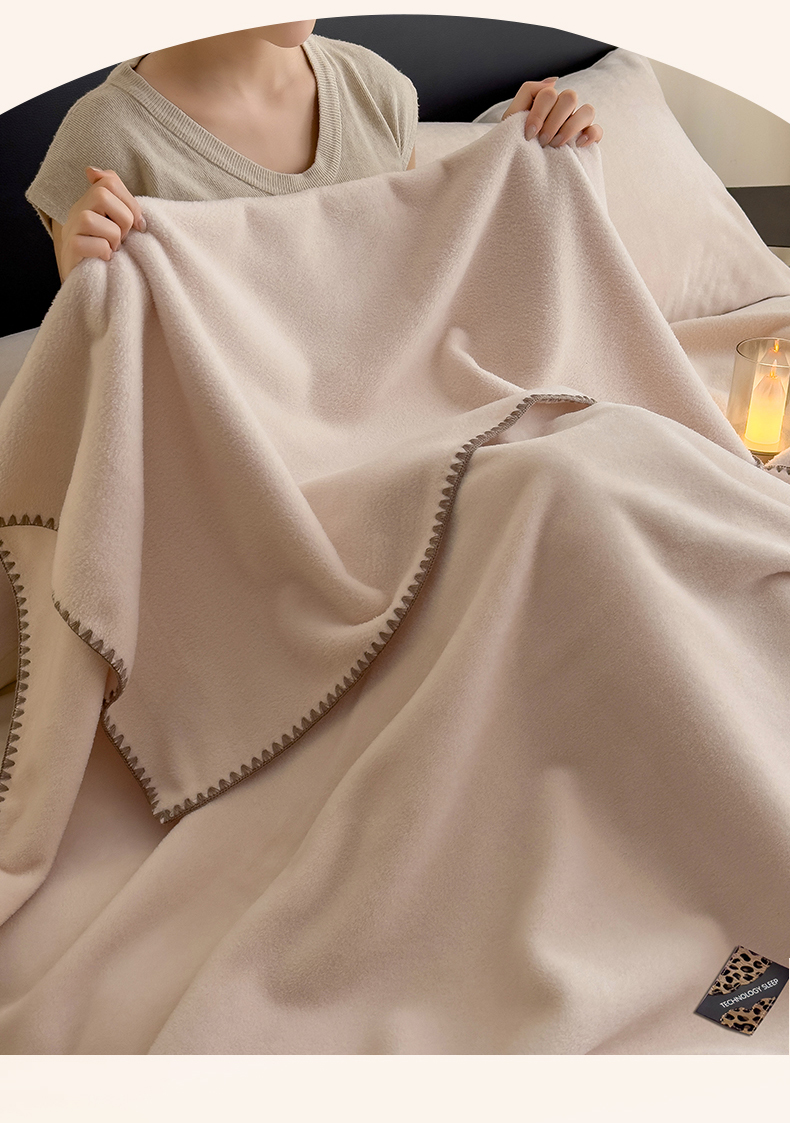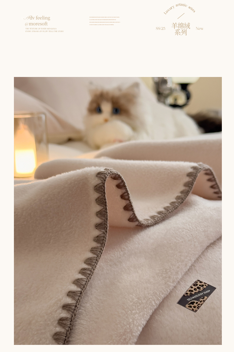 丝幔家纺 2025新款A类羊棉绒原创设计毛毯系列 奶昔白