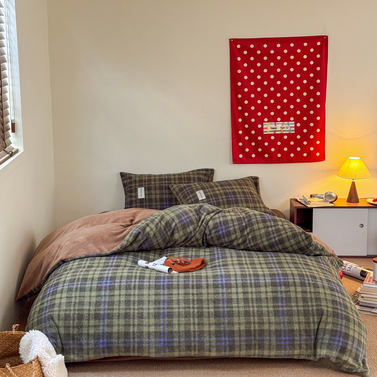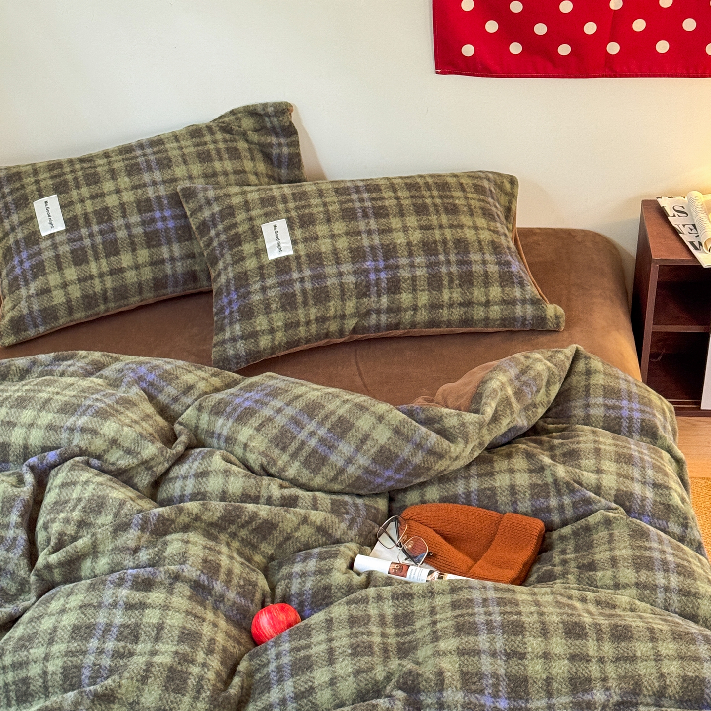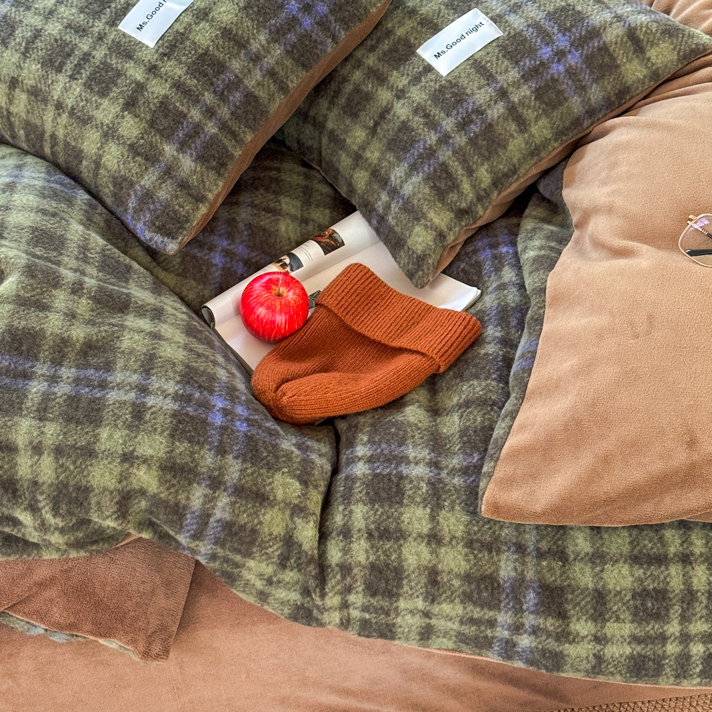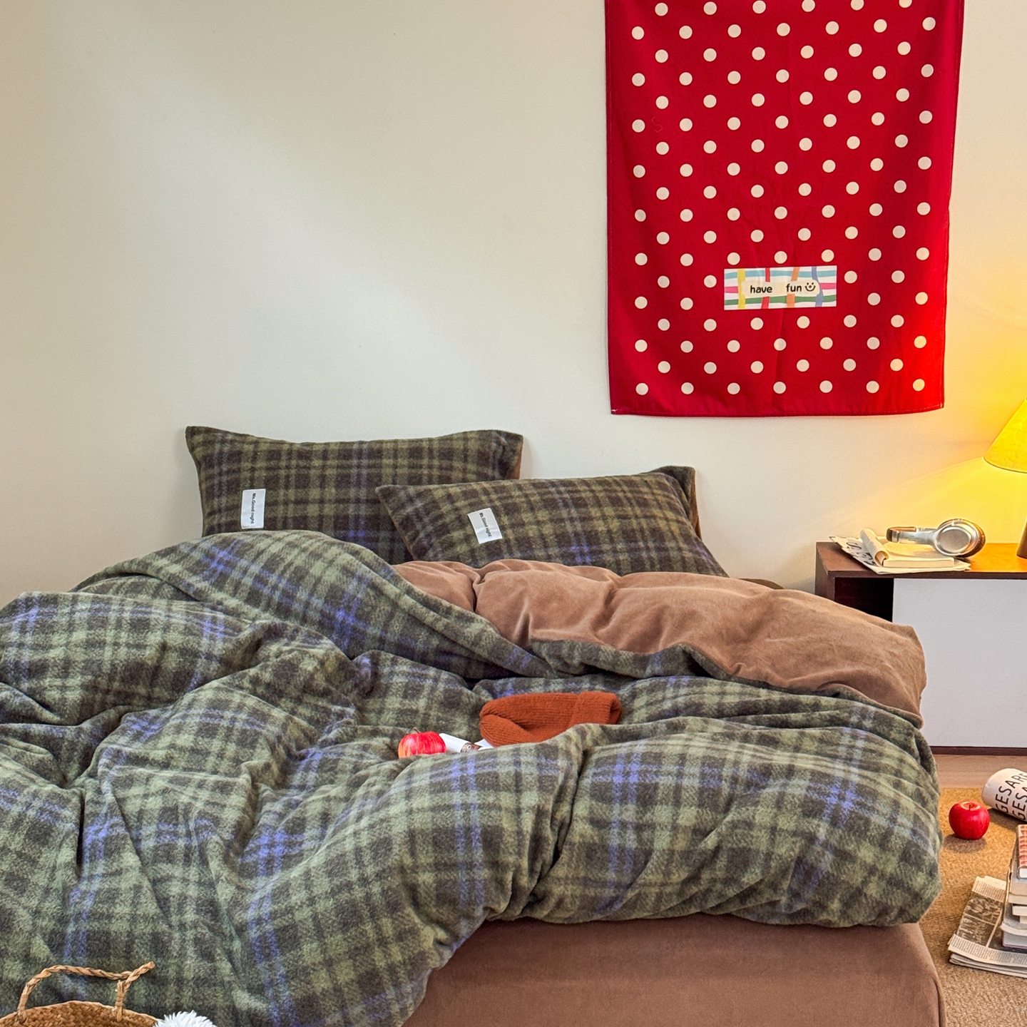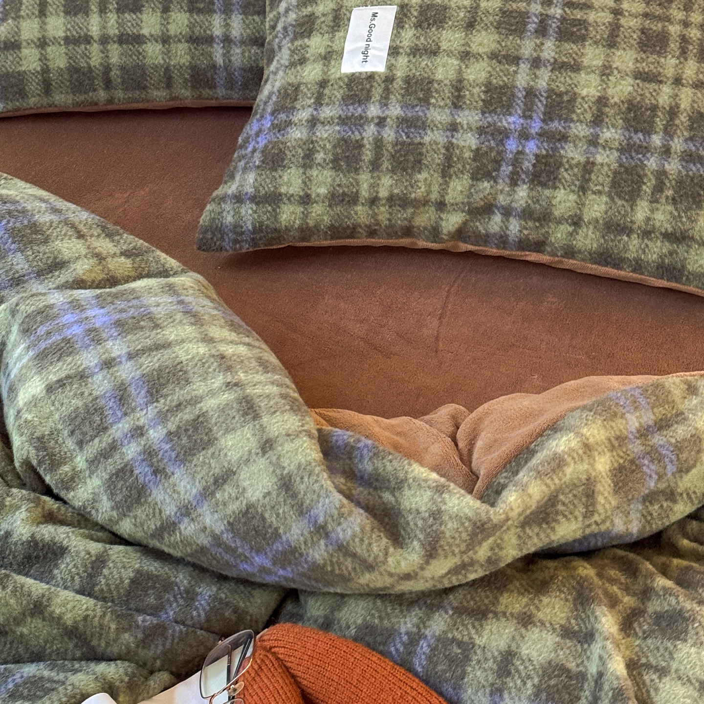 蜜宿 2025新款仿羊绒牛奶绒四件套-格纹款 奇幻森林