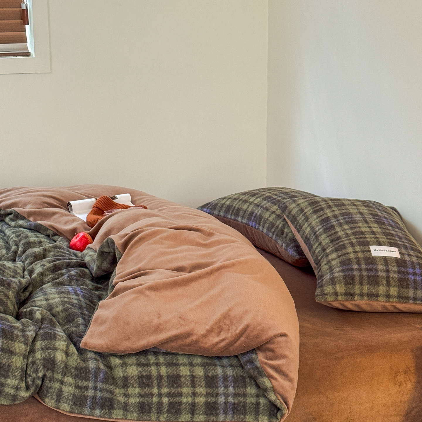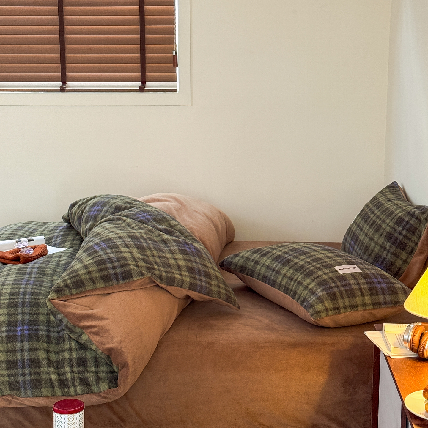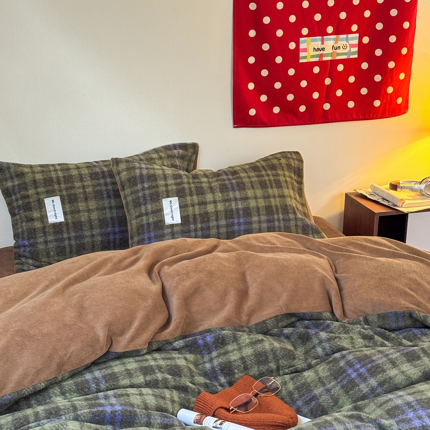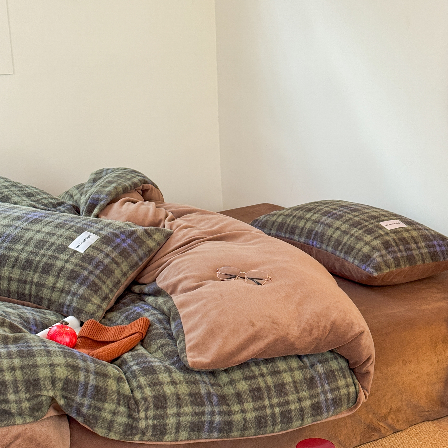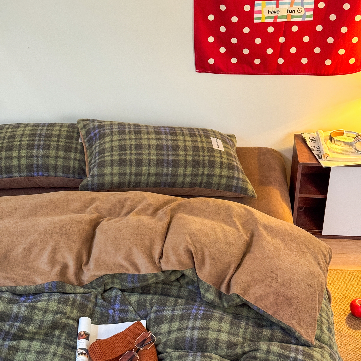蜜宿 2025新款仿羊绒牛奶绒四件套-格纹款 奇幻森林