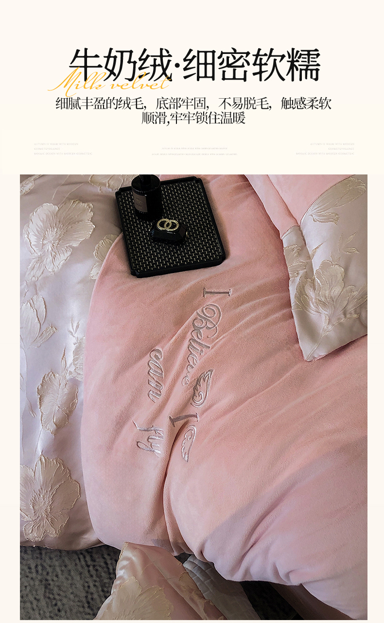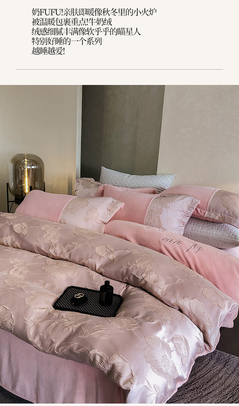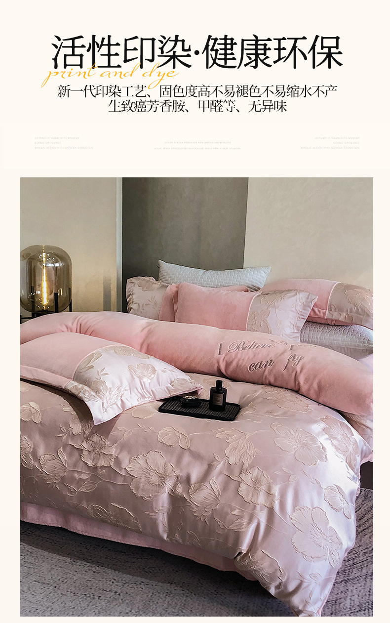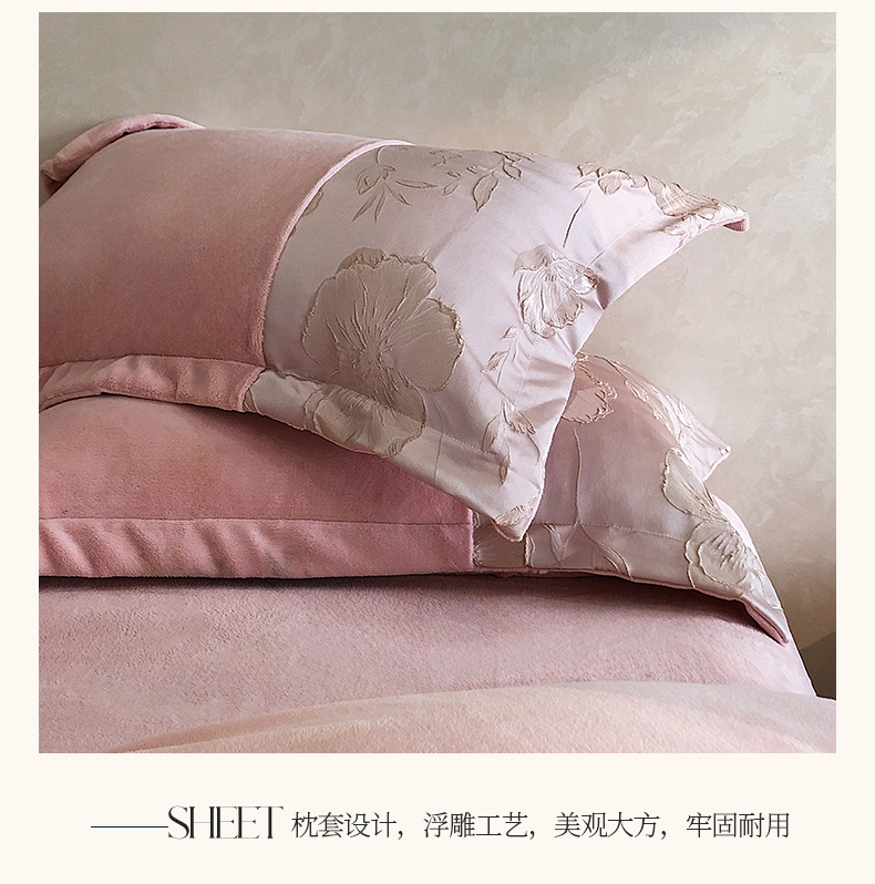 商品名称:换种生活 2025新款A类浮雕牛奶绒刺绣四件套 汐颜-粉