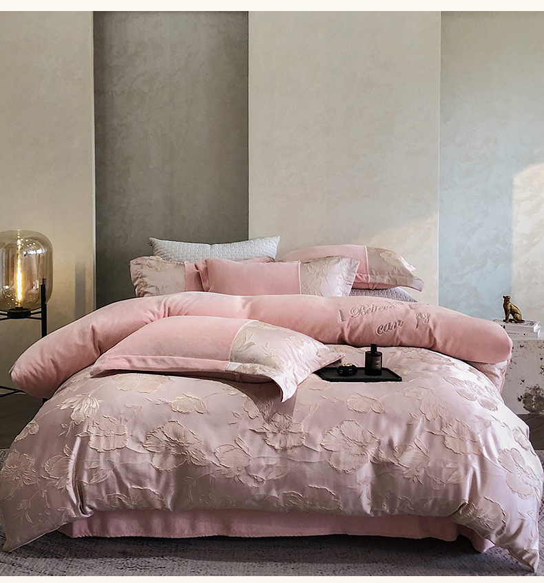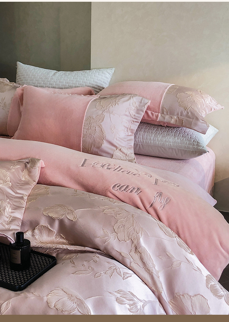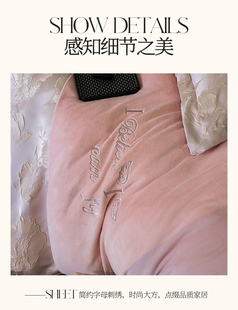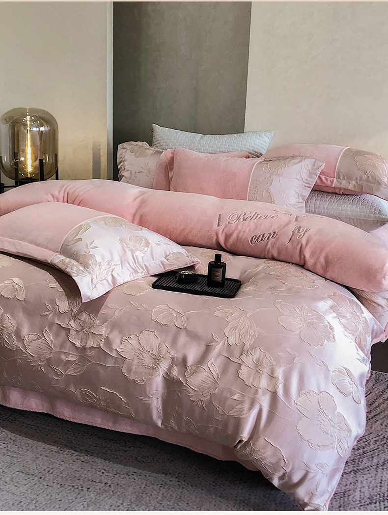 商品名称:换种生活 2025新款A类浮雕牛奶绒刺绣四件套 汐颜-粉
