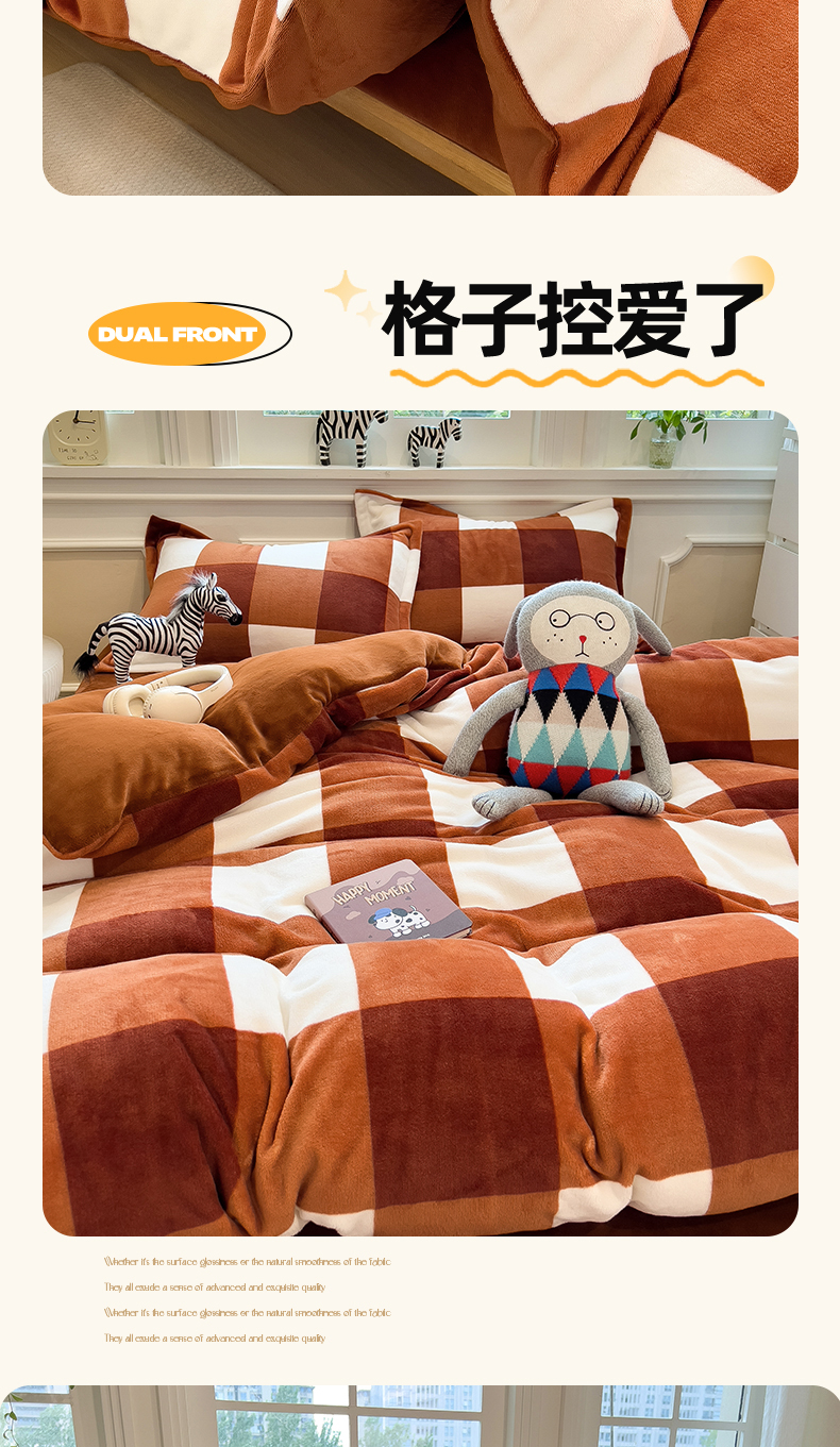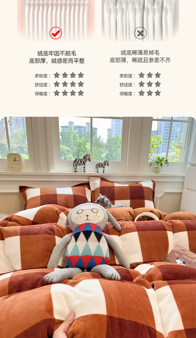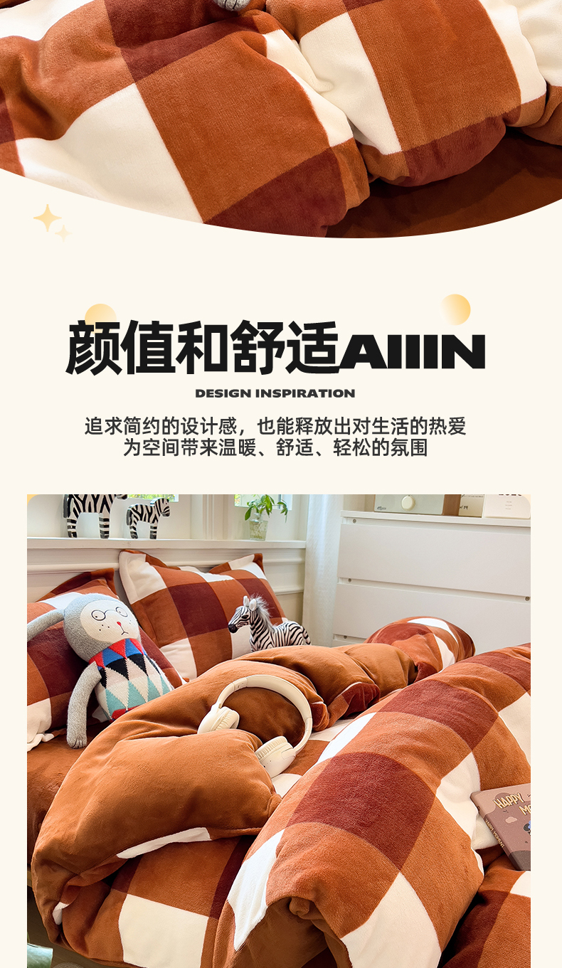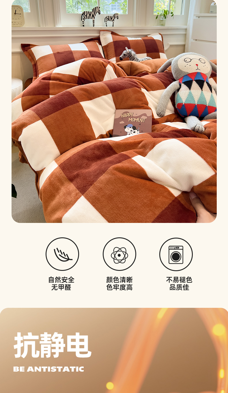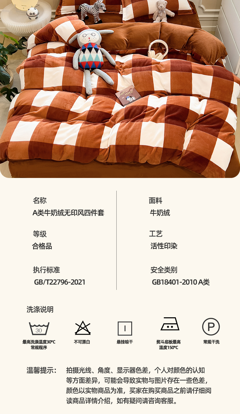 当前位置: 91家纺网 > 商品网购 > 床品套件 > 四件套 > 牛奶绒四件套 > 曲之慕 2025新款A类牛奶绒简约无印风格子四件套 咖雅格