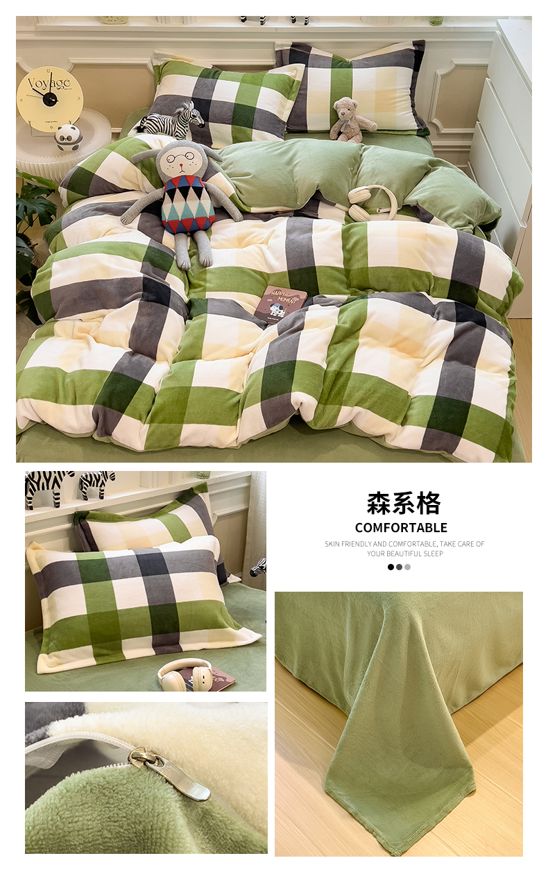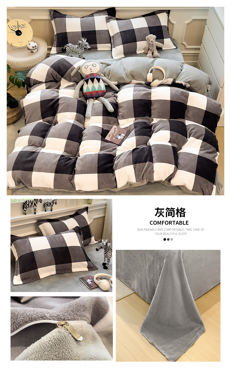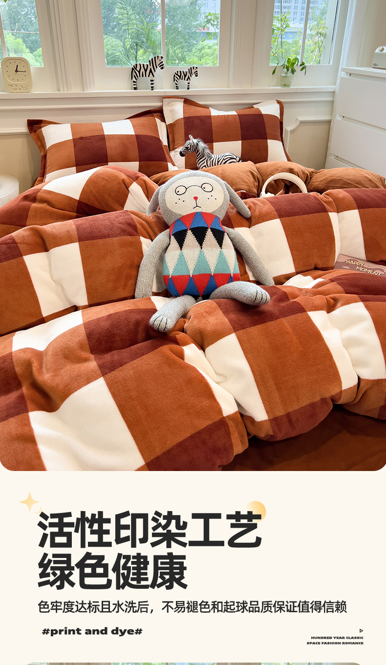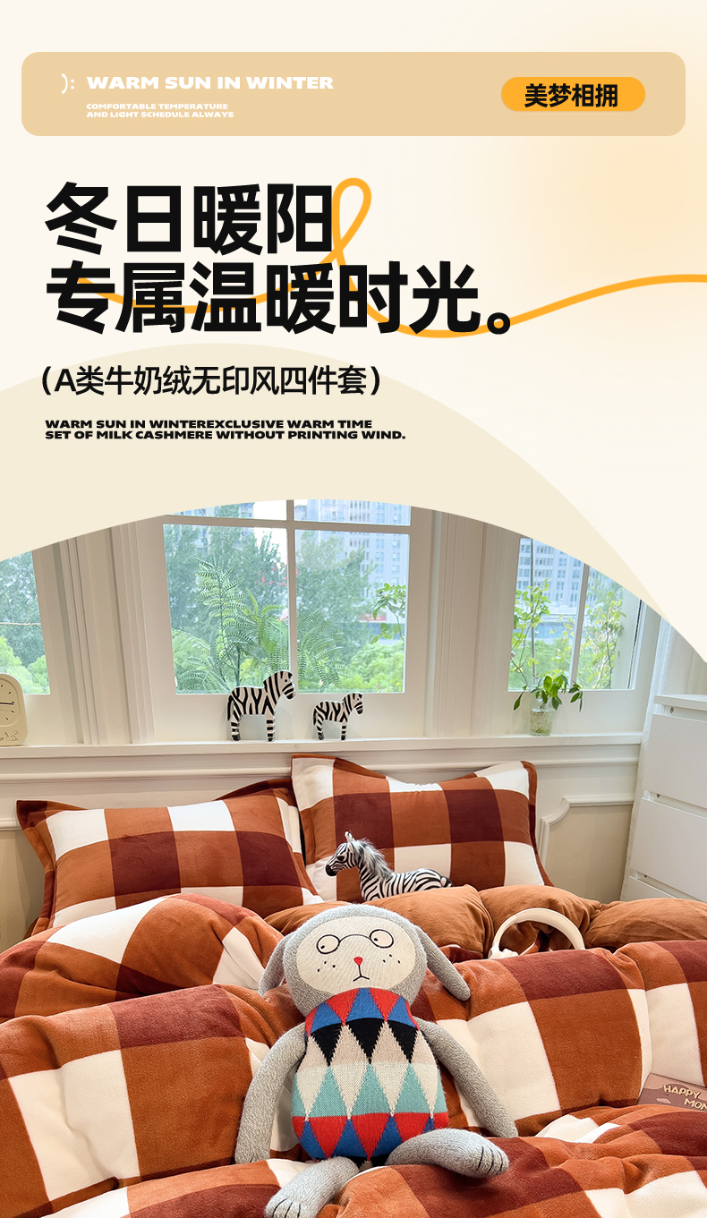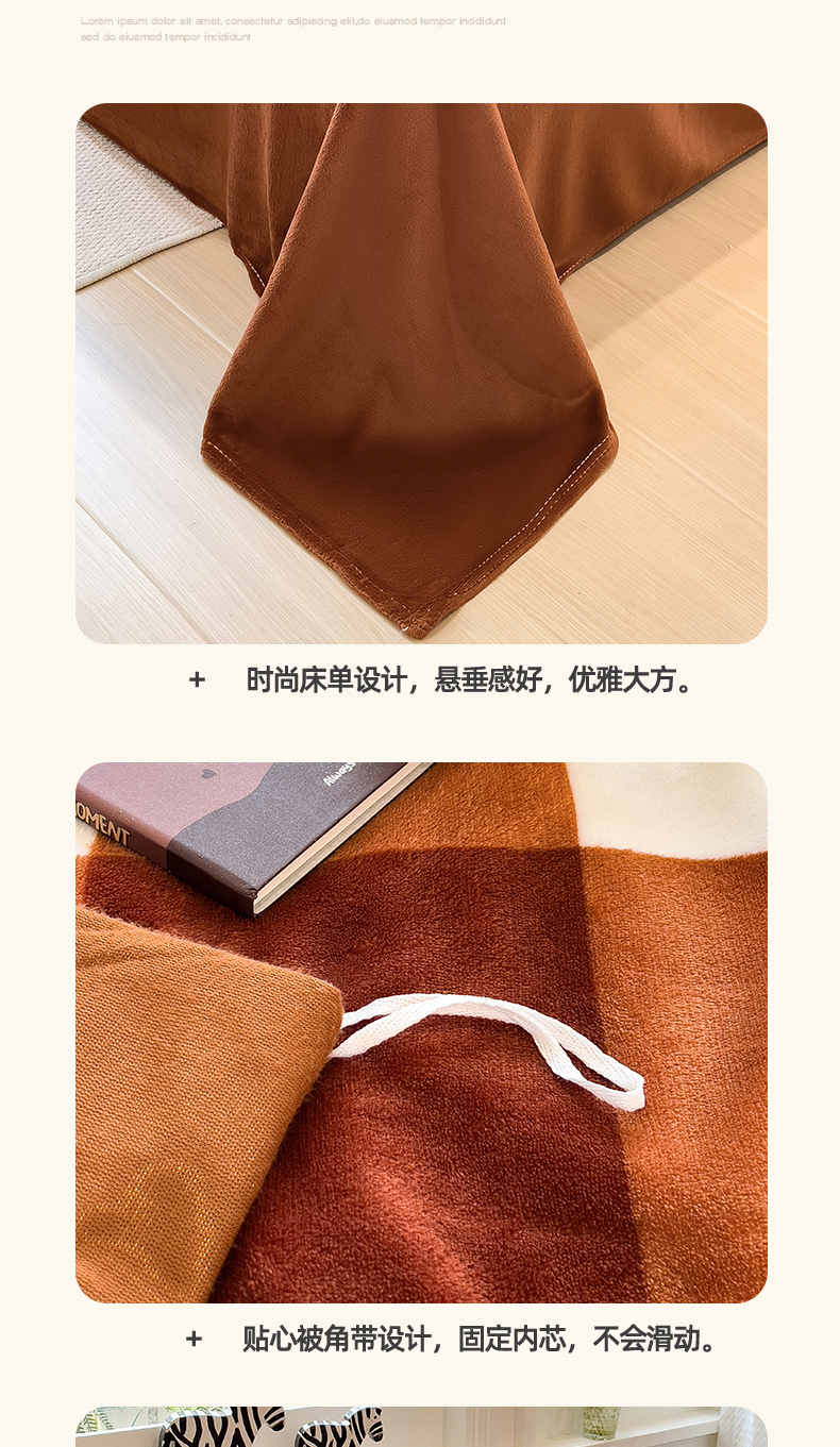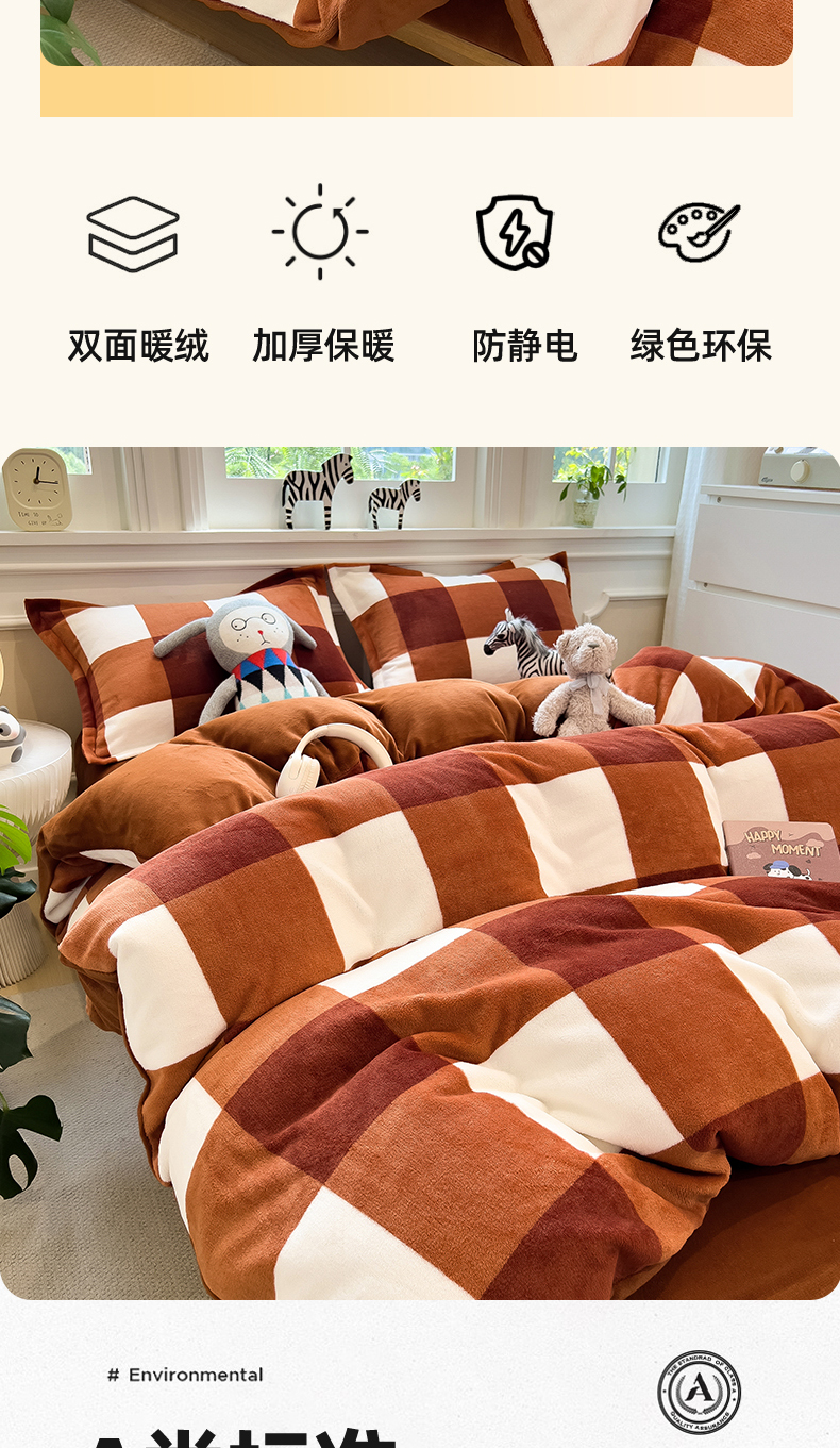 当前位置: 91家纺网 > 商品网购 > 床品套件 > 四件套 > 牛奶绒四件套 > 曲之慕 2025新款A类牛奶绒简约无印风格子四件套 咖雅格
