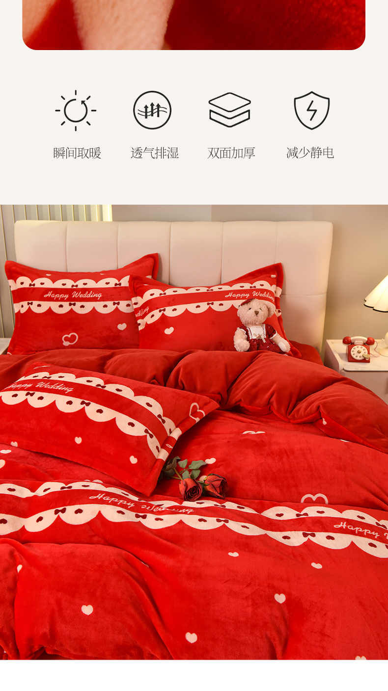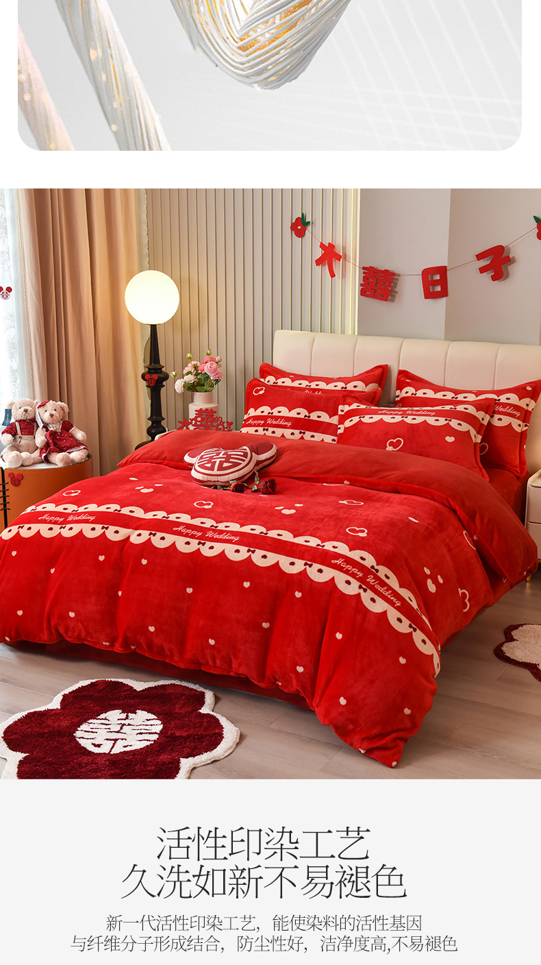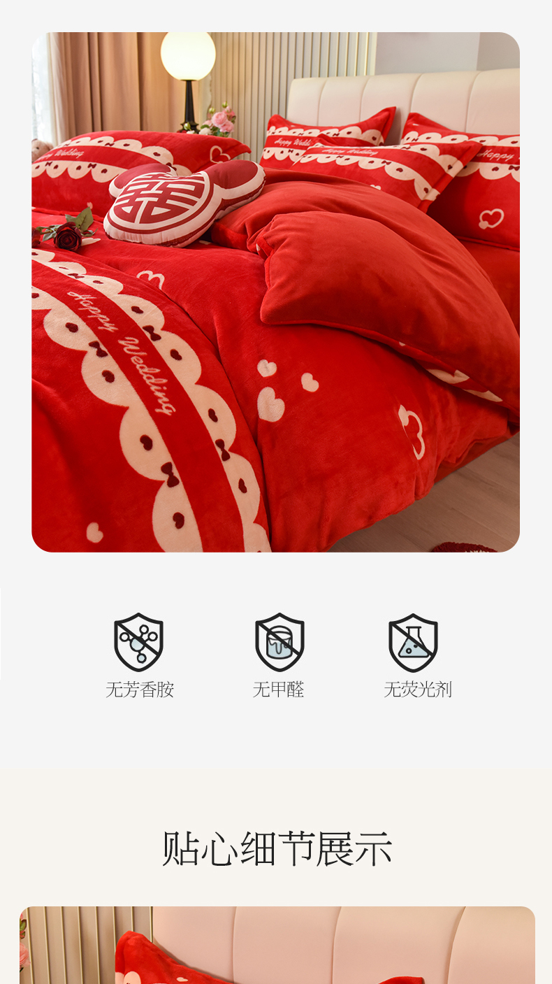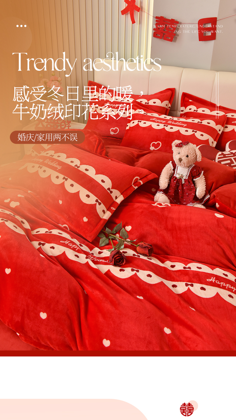 商品名称:曲之慕 2025新款高克重牛奶绒简约婚庆四件套 喜嫁