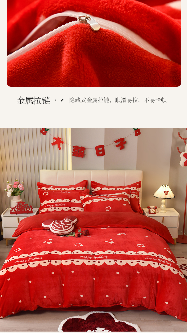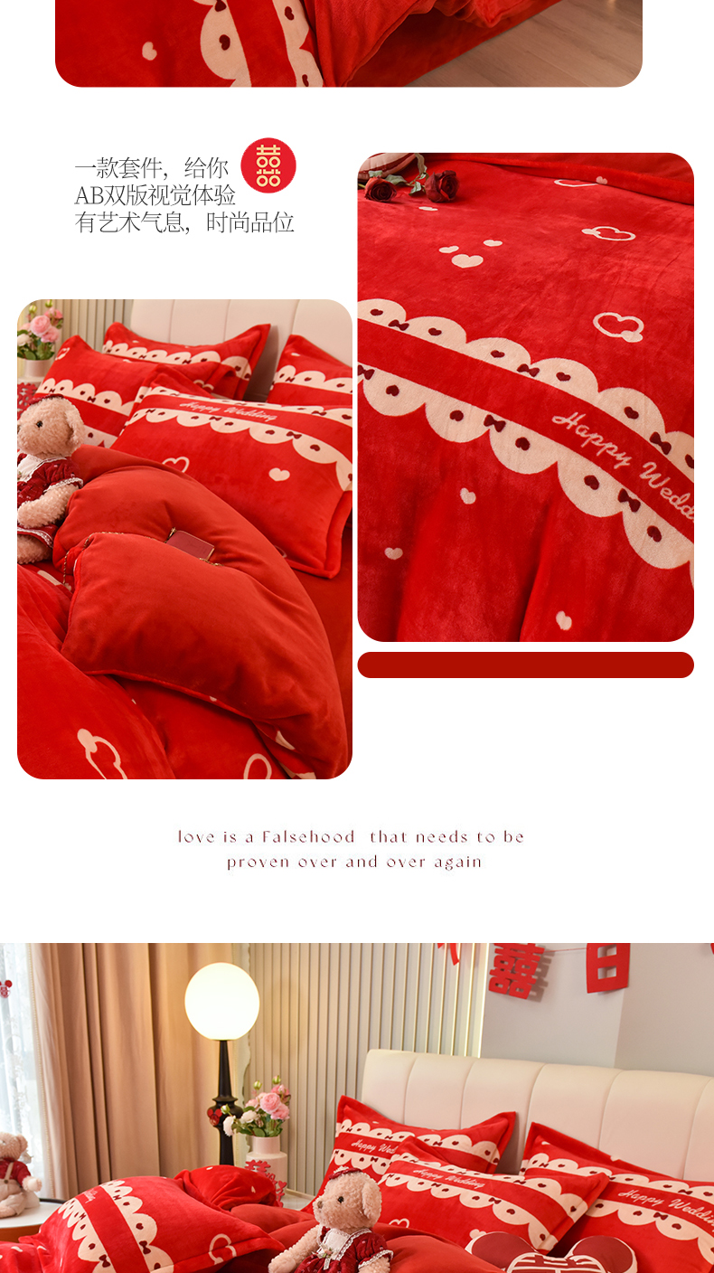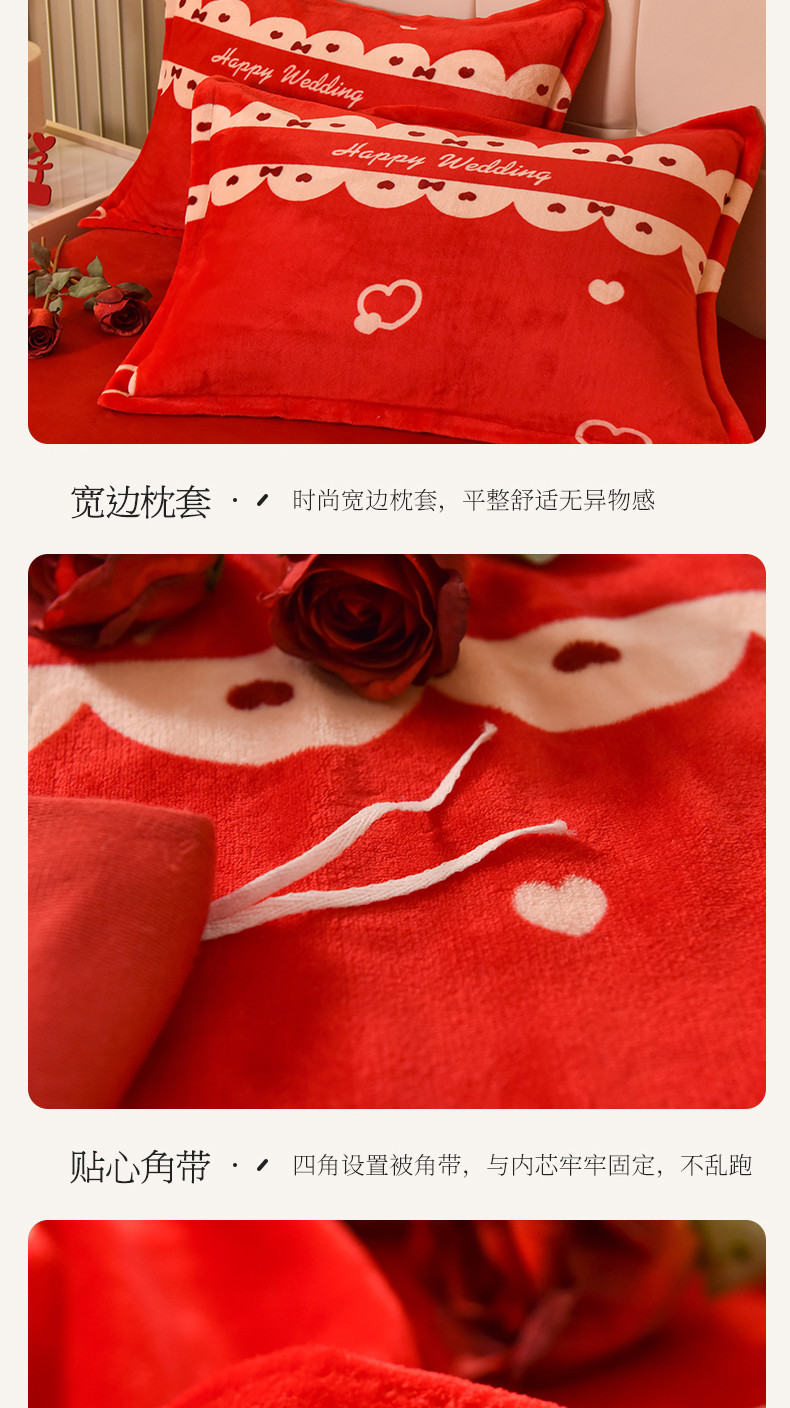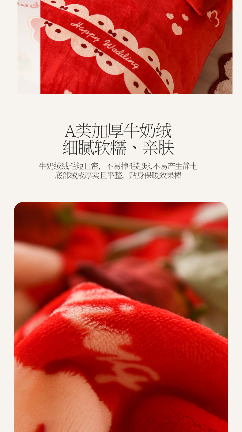 商品名称:曲之慕 2025新款高克重牛奶绒简约婚庆四件套 喜嫁