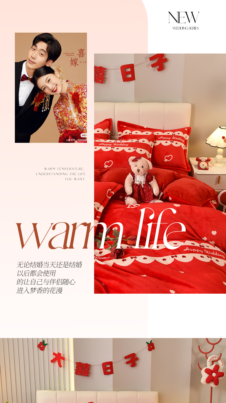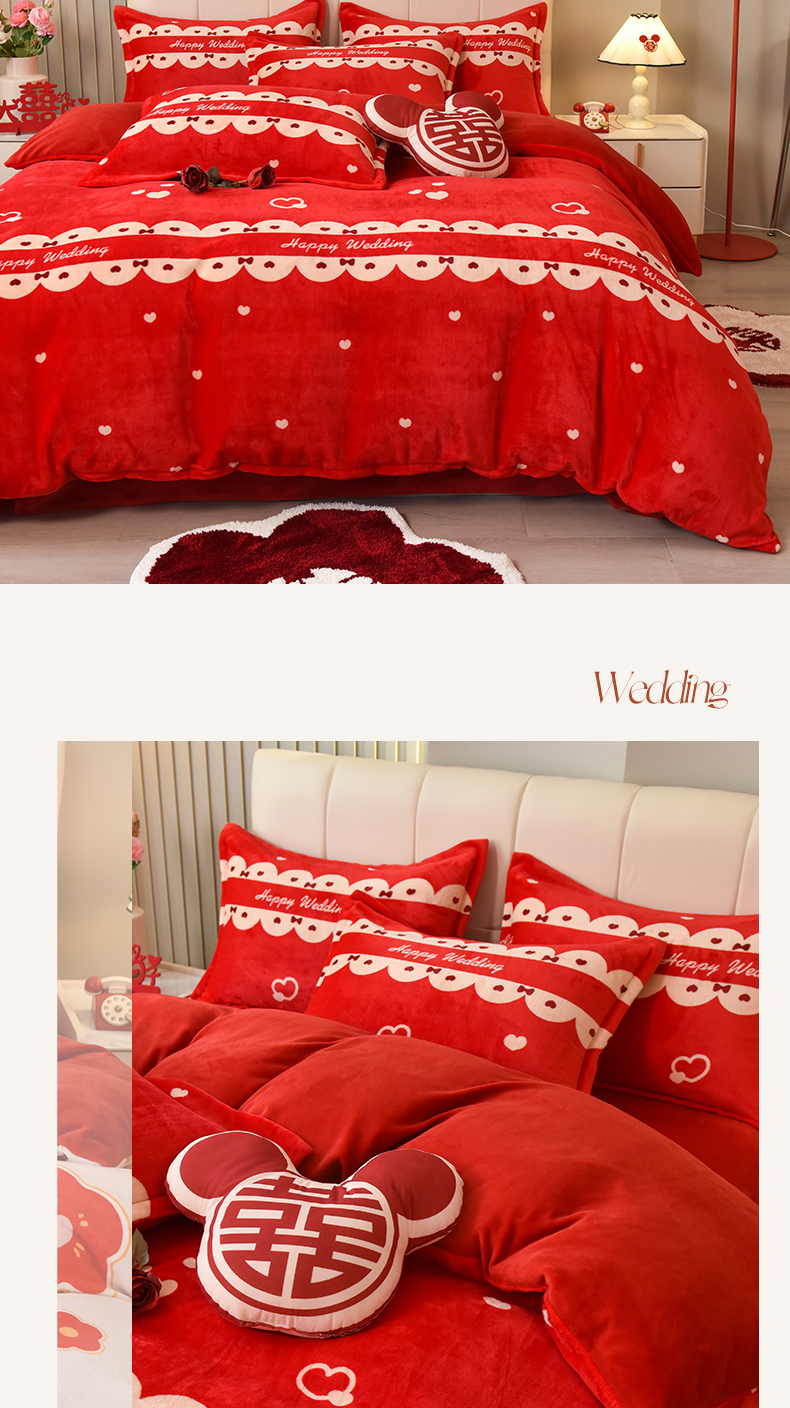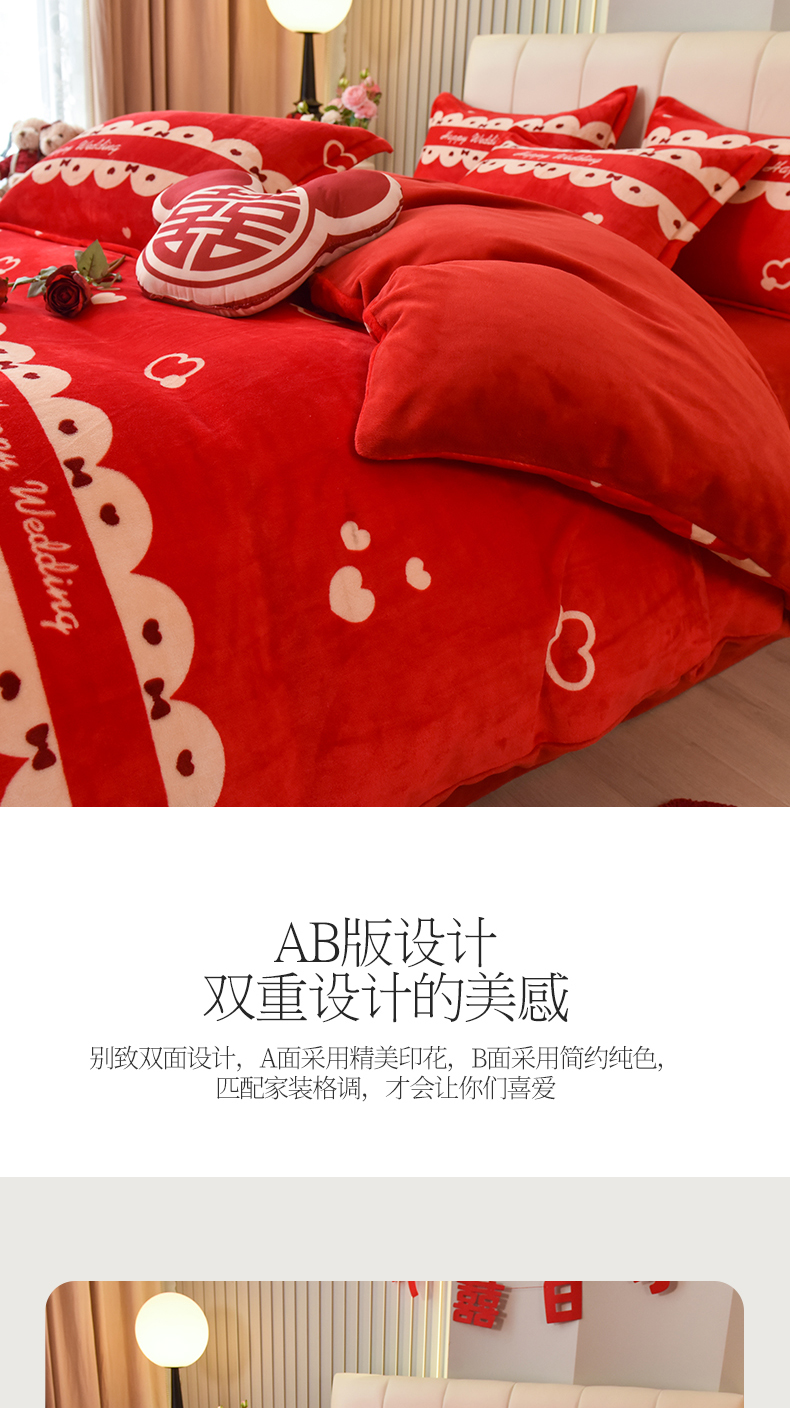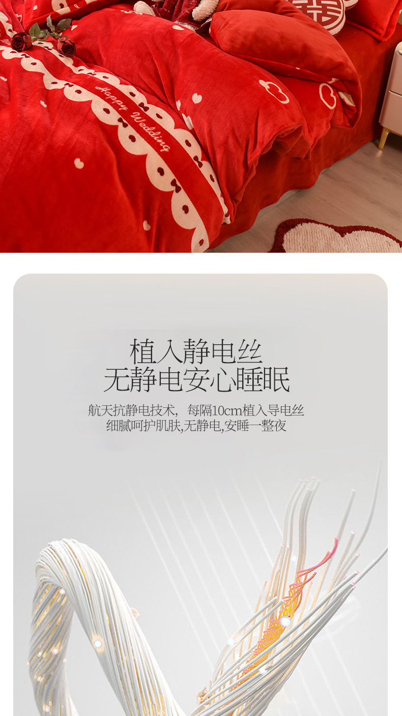 商品名称:曲之慕 2025新款高克重牛奶绒简约婚庆四件套 喜嫁