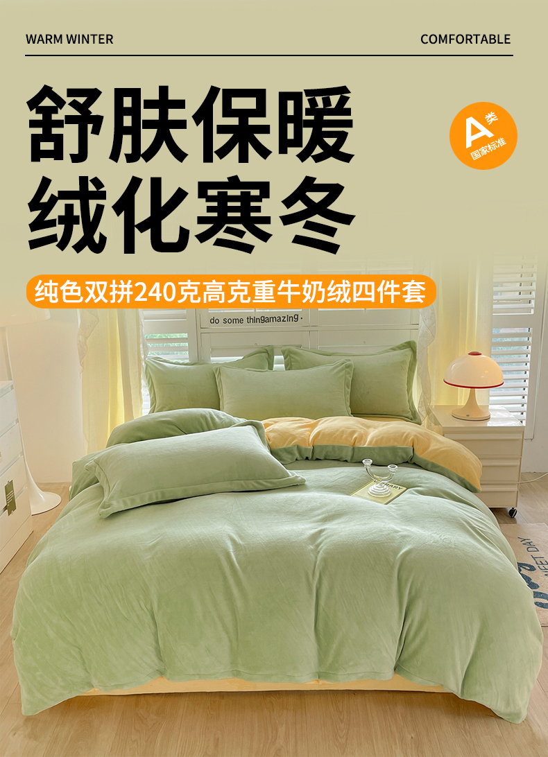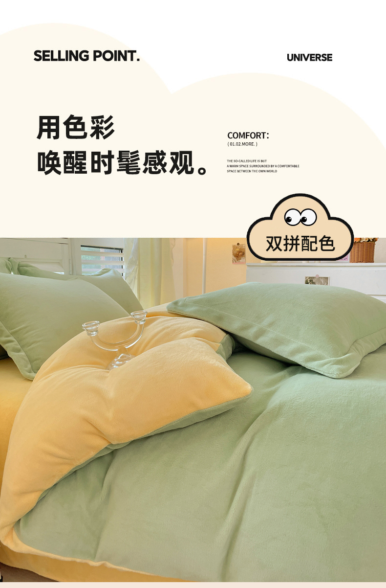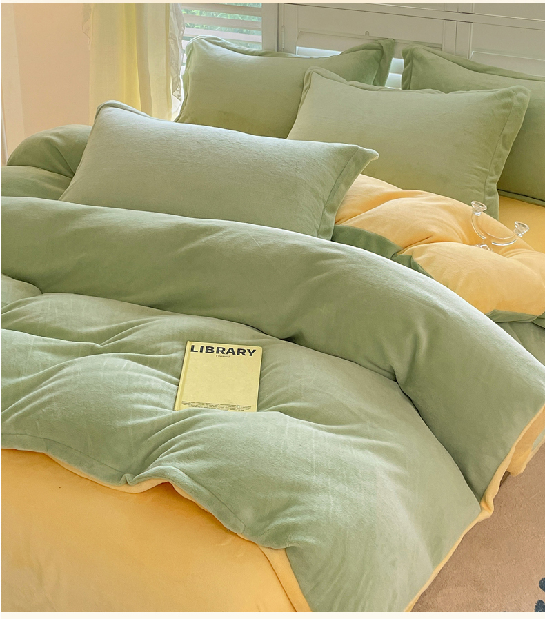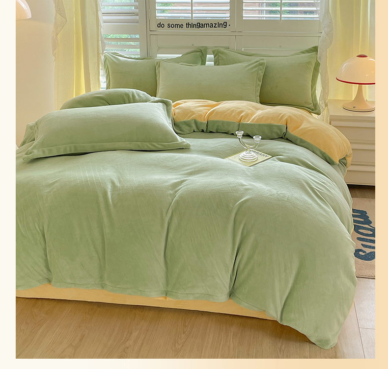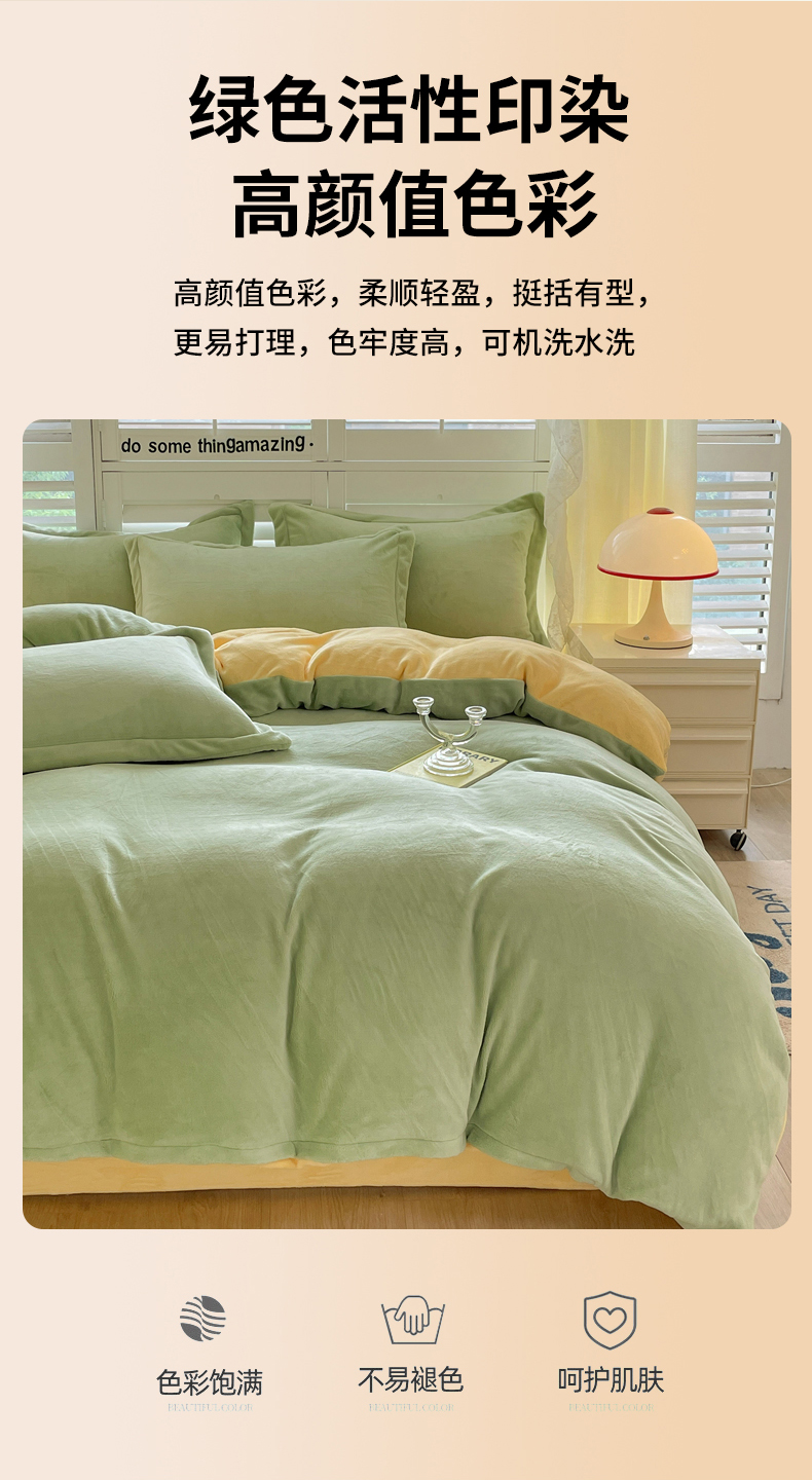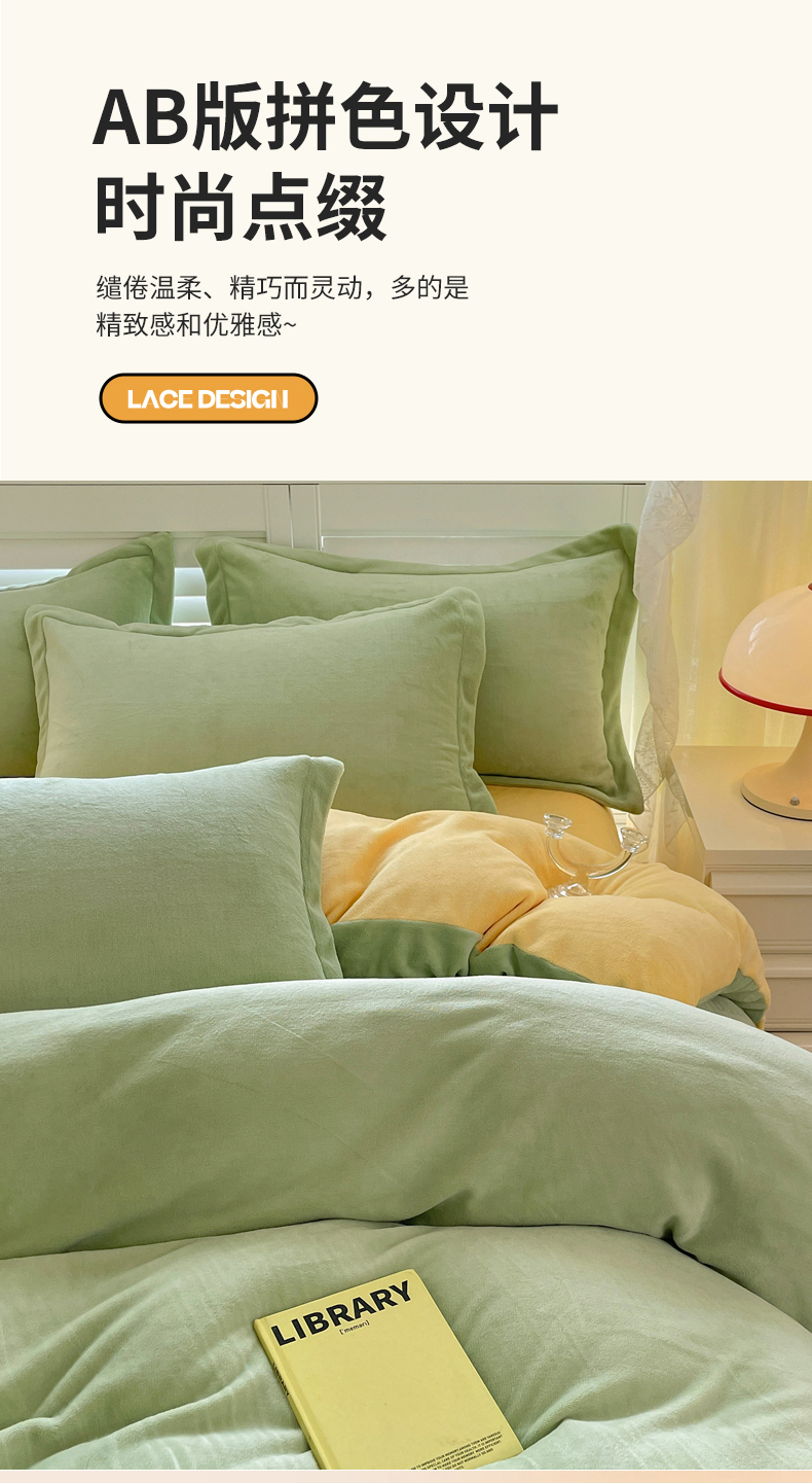 当前位置: 91家纺网 > 商品网购 > 床品套件 > 四件套 > 牛奶绒四件套 > 富馨莱 2025新款牛奶绒纯色双拼四件套 绒双拼果绿+奶昔黄
