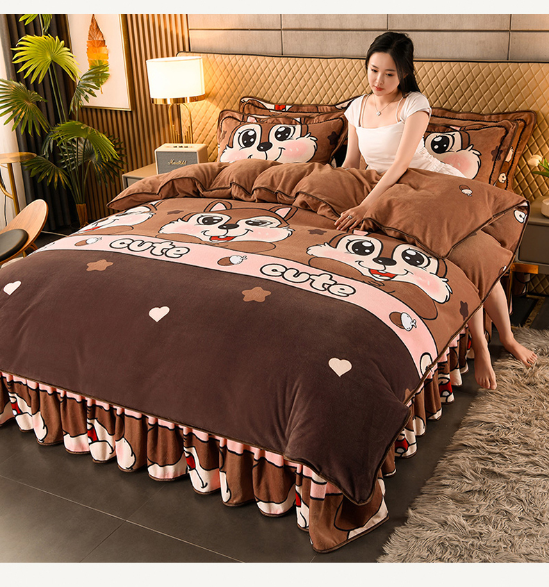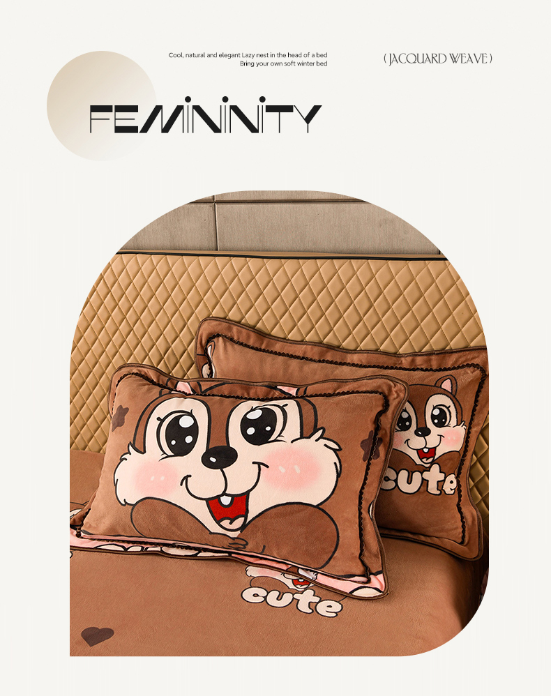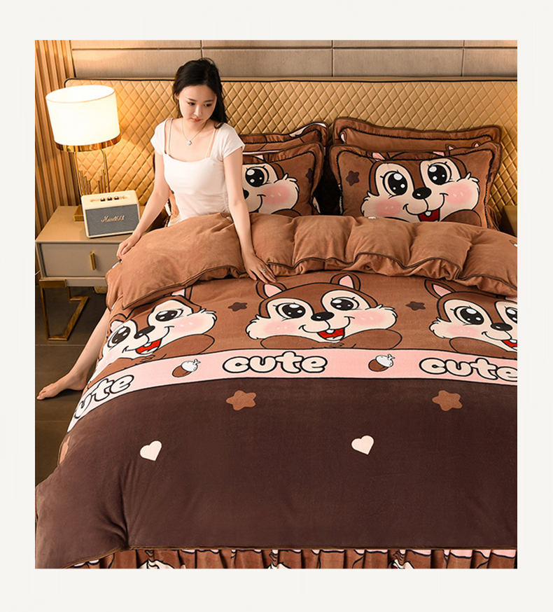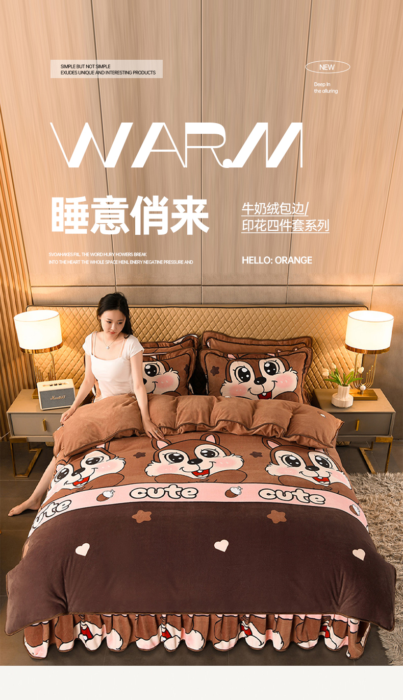 牵依 2025新款牛奶绒小包边印花四件套 松鼠宝宝