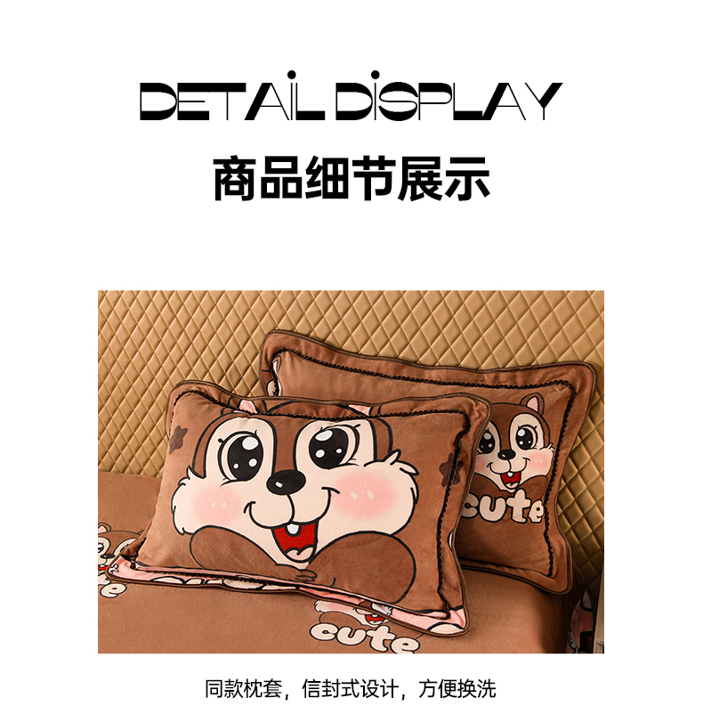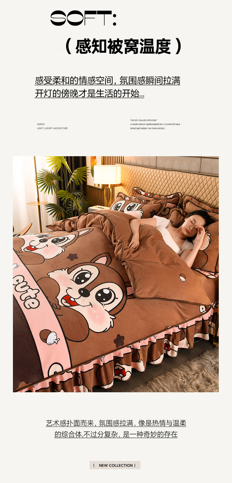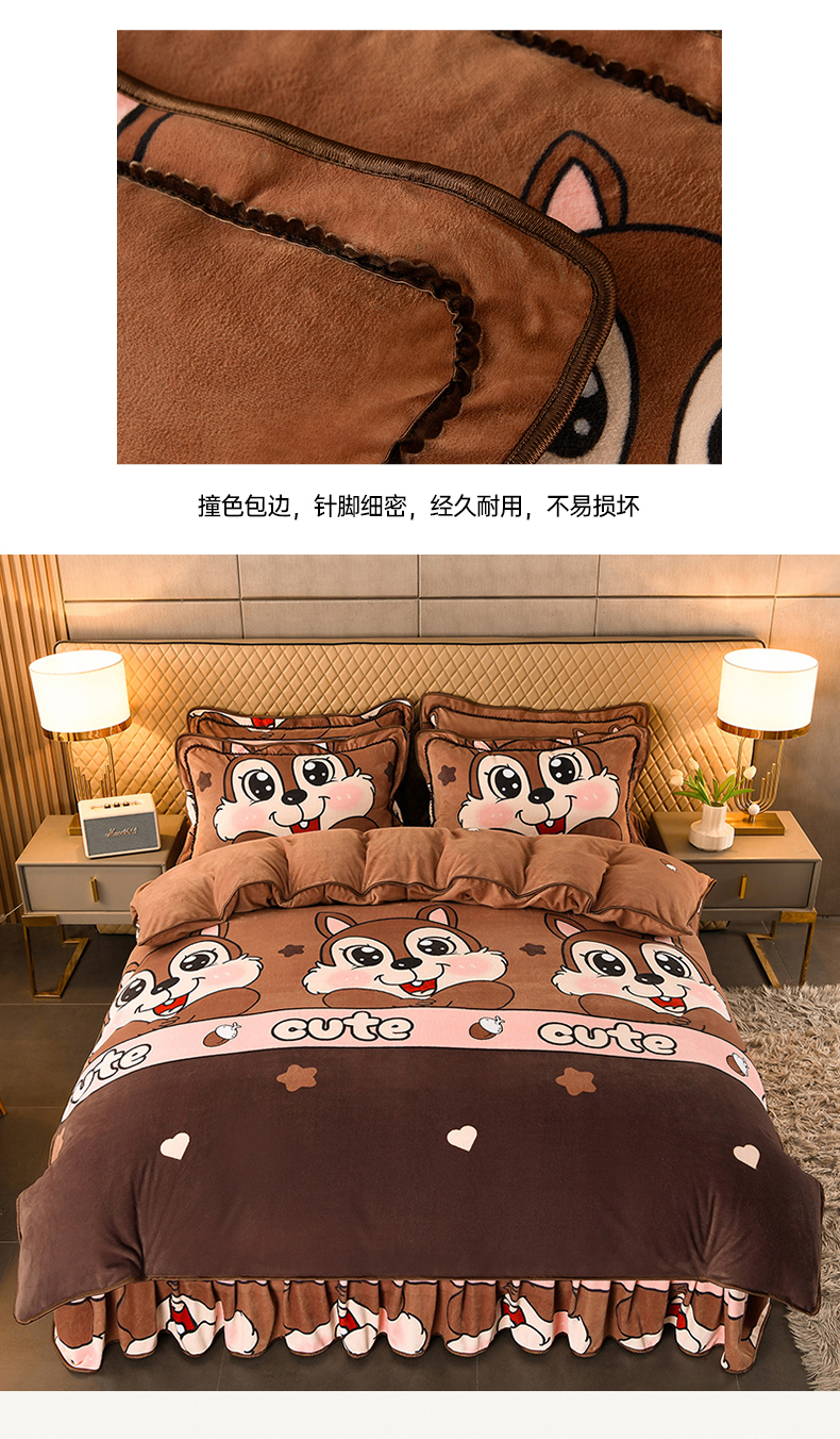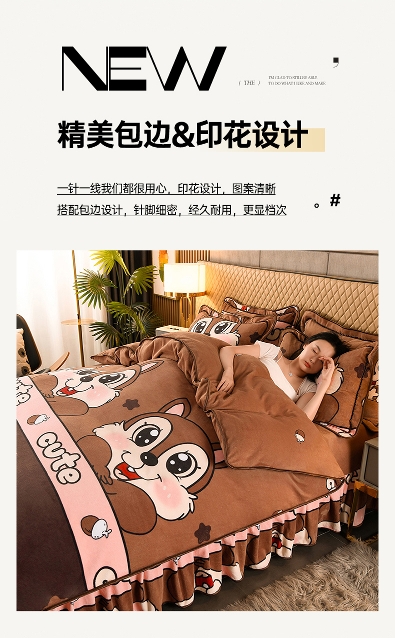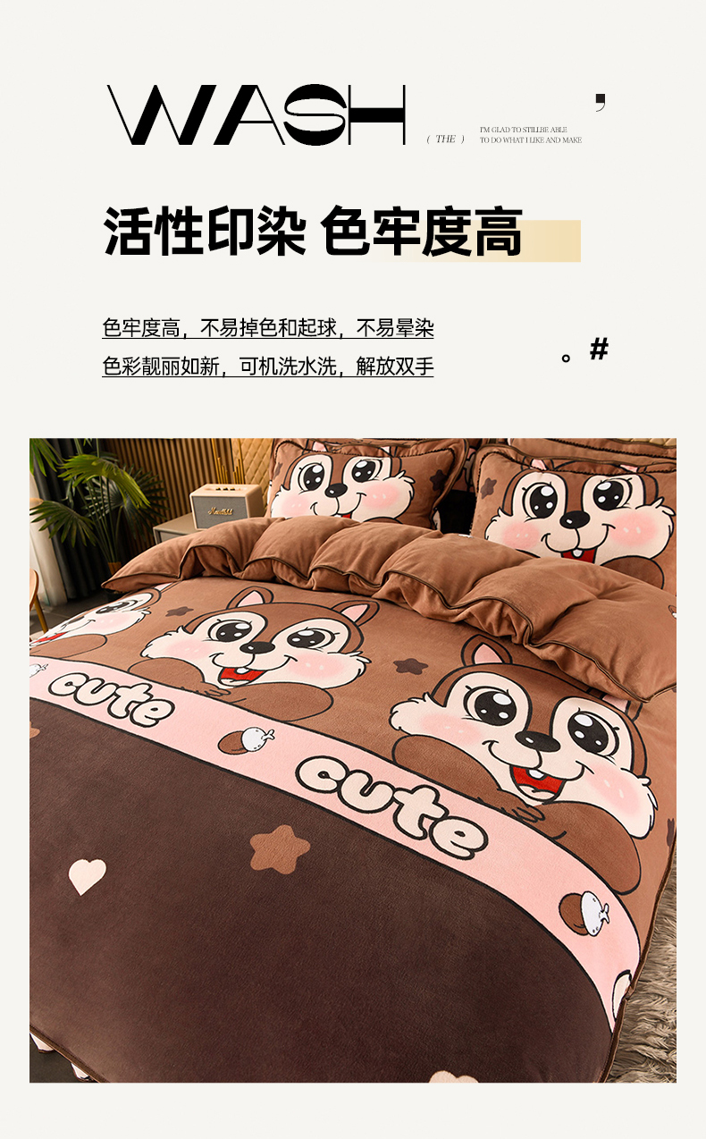 商品名称:牵依 2025新款牛奶绒小包边印花四件套 松鼠宝宝