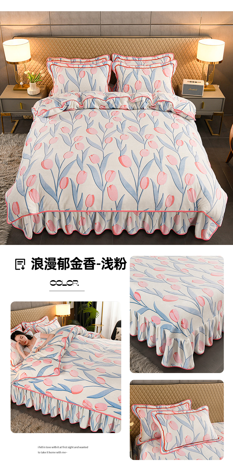 (总)牵依 2025新款直播床裙小清新印花牛奶绒四件套法兰绒四件套,嗨皮狗,大熊猫,橙心如意,幸福汪汪,奶牛派对,玫瑰风情,花仙子,南瓜派-灰,春日花园,竹子小熊,花田喜事,郁金花海,花开曼舞,童年伙伴,花意,情怀,幻想玫瑰,花开盛宴,梦想花园,花季,南瓜派-绿,山茶花,花园小兔,香槟玫瑰-绿