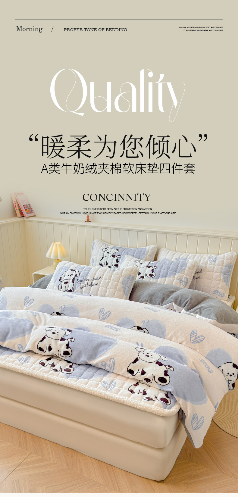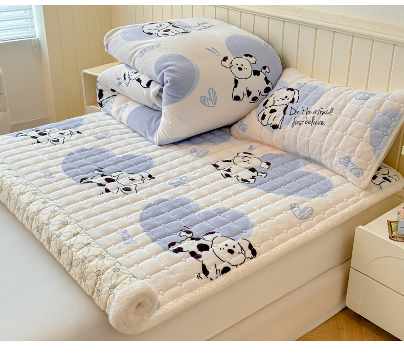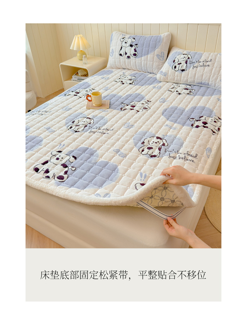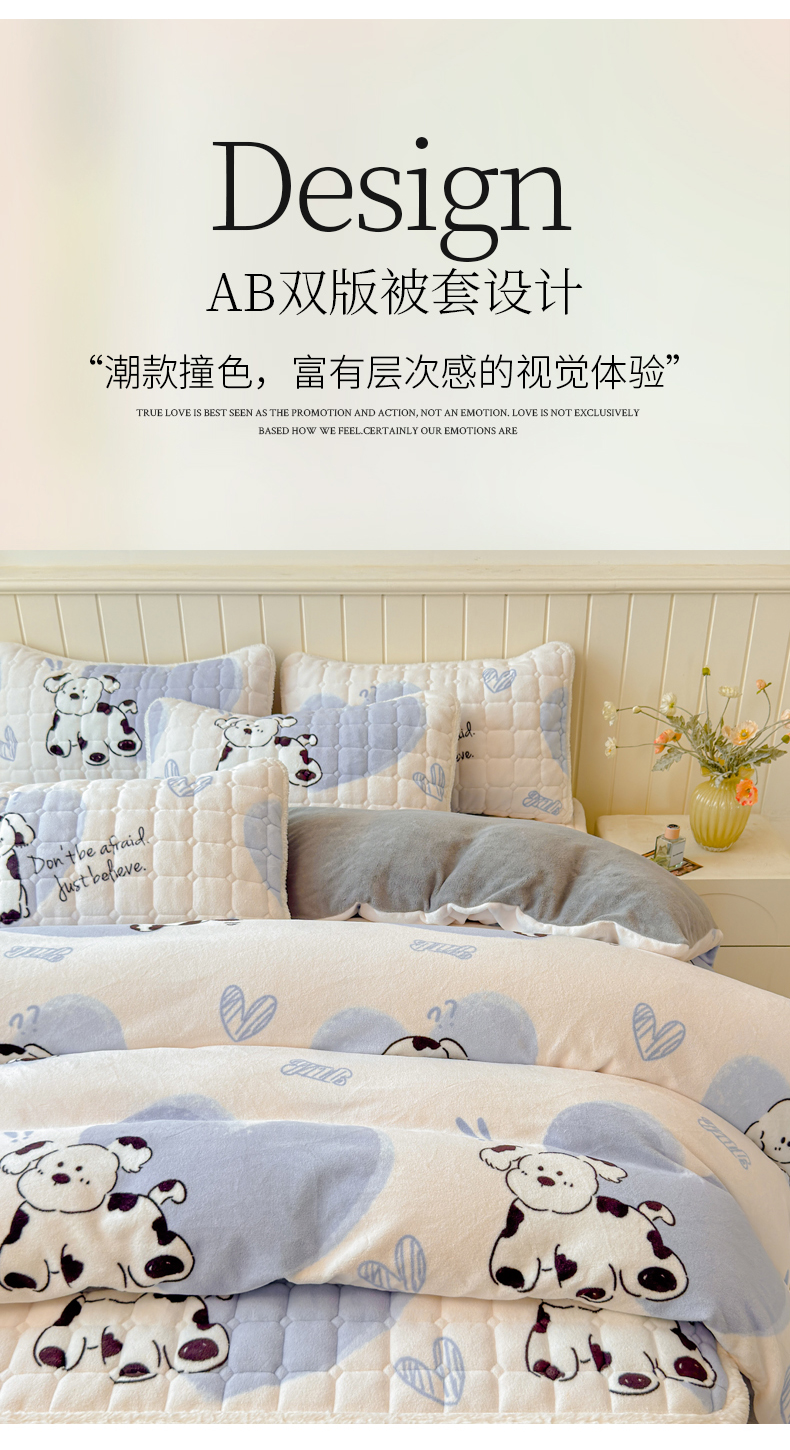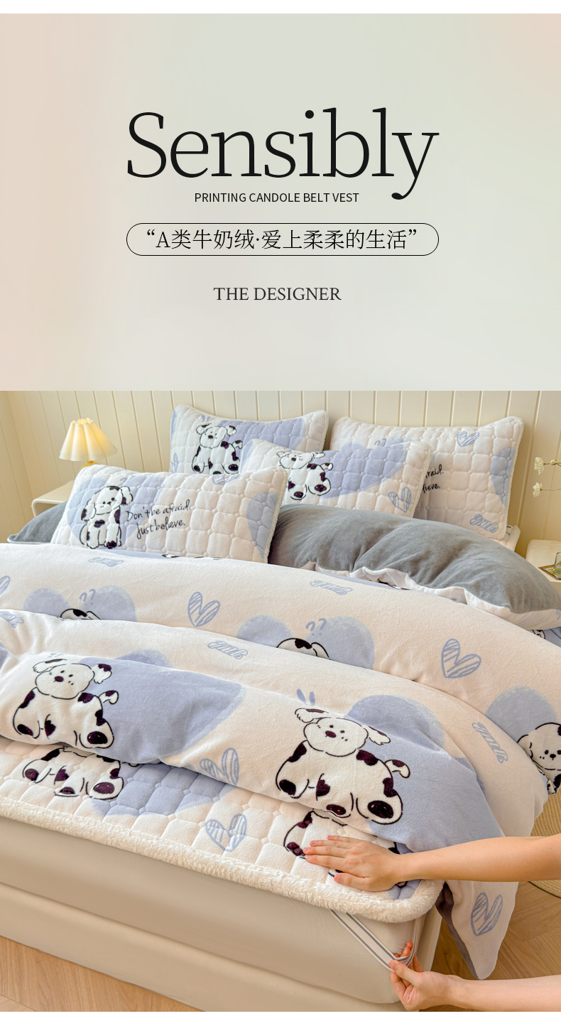 商品名称:LIFE.丽芙 2025秋冬新款A类牛奶绒加厚夹棉床褥垫+被套组合四件套 幸运狗