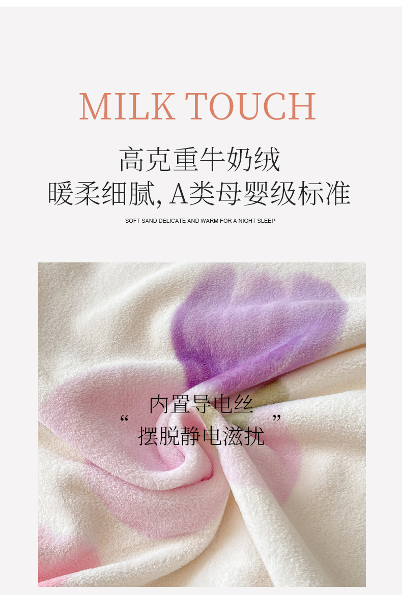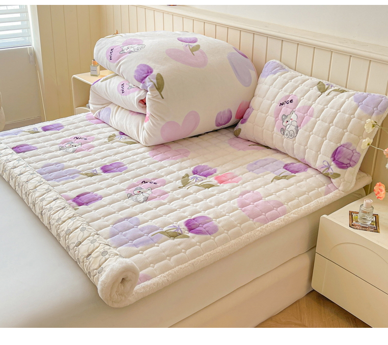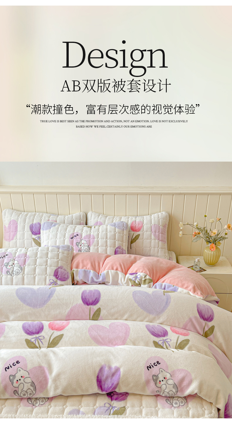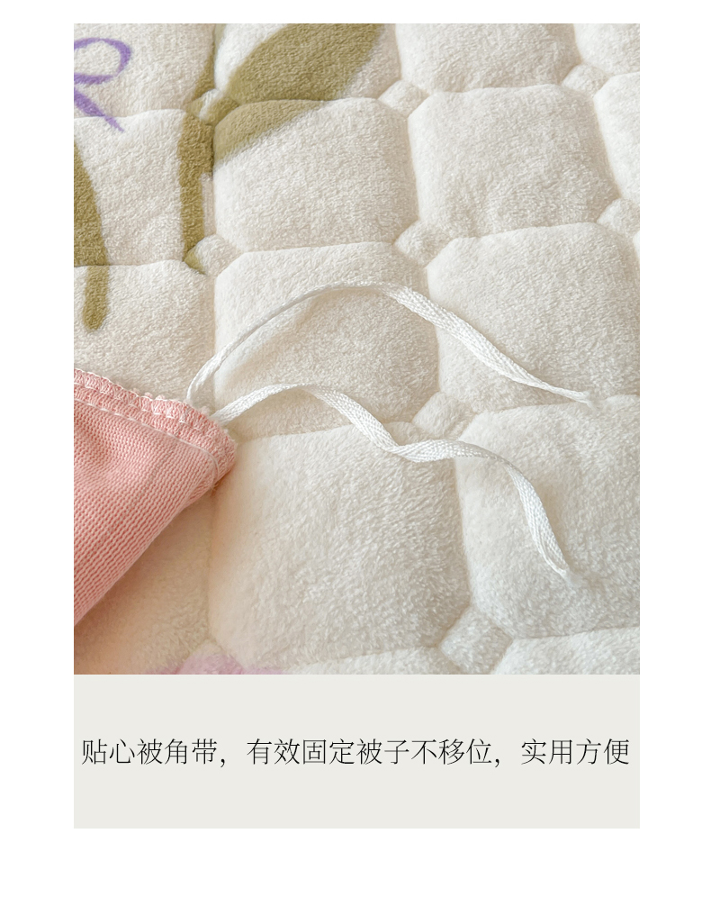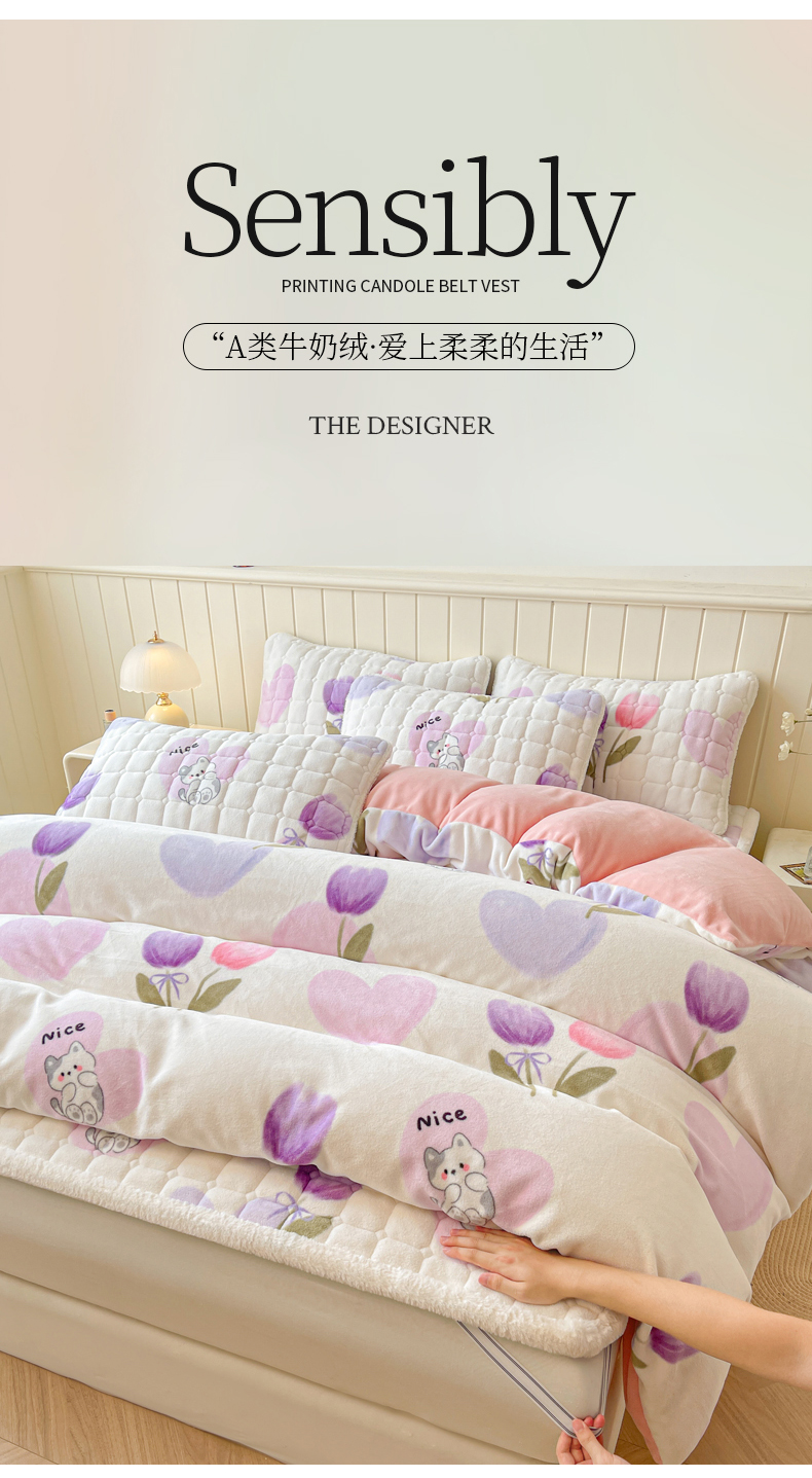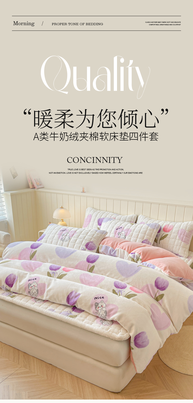 商品名称:LIFE.丽芙 2025秋冬新款A类牛奶绒加厚夹棉床褥垫+被套组合四件套 花语