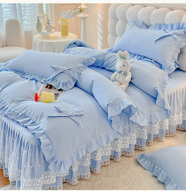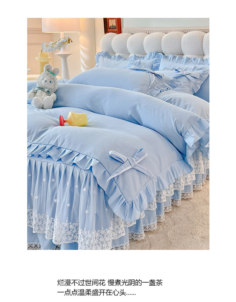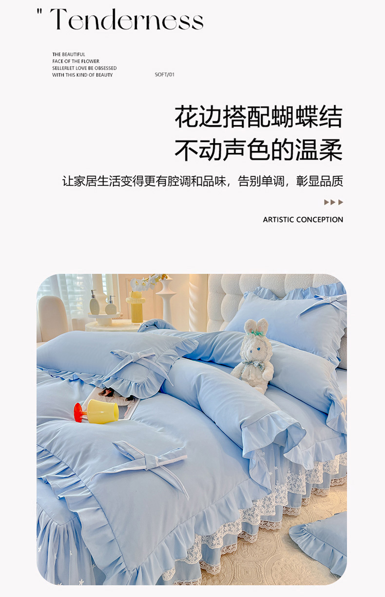 后庭寝室 2025新款亲肤舒适柔软亲肤花边蝴蝶结四件套-如愿 如愿-浅蓝