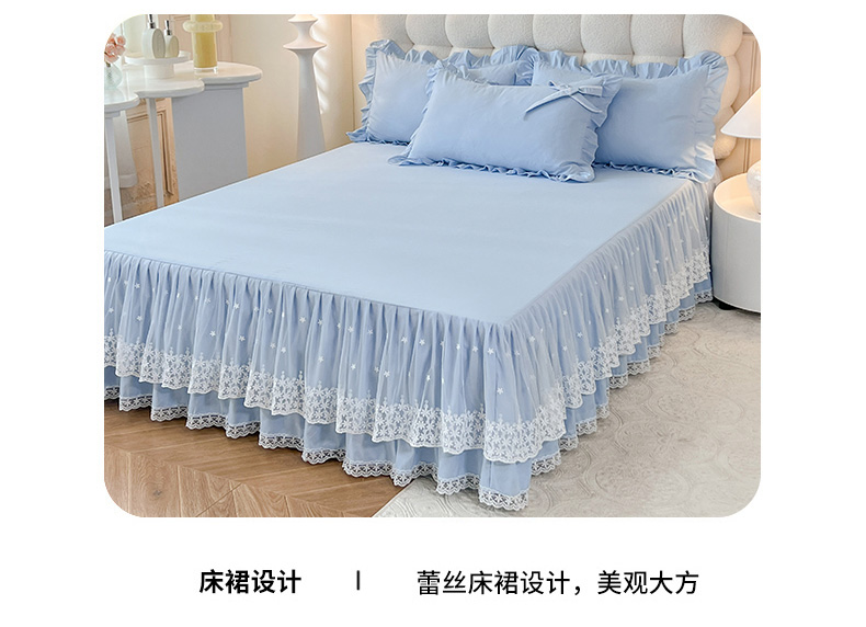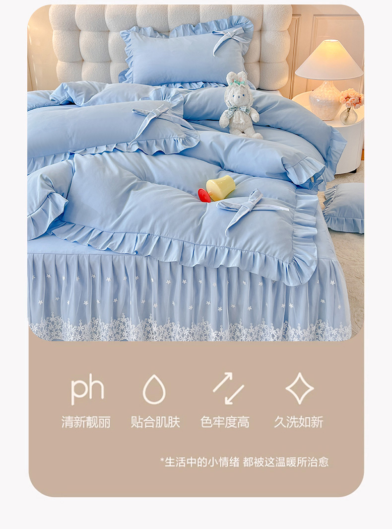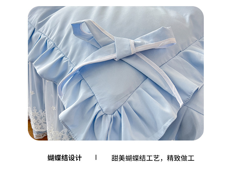 商品名称:后庭寝室 2025新款亲肤舒适柔软亲肤花边蝴蝶结四件套-如愿 如愿-浅蓝