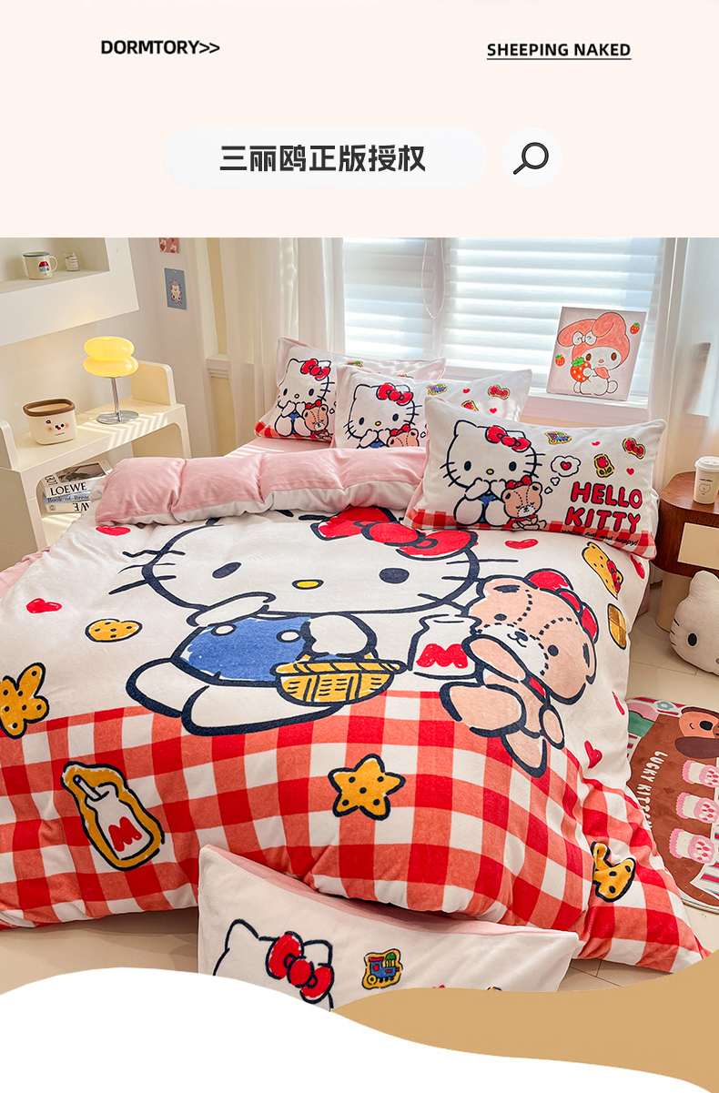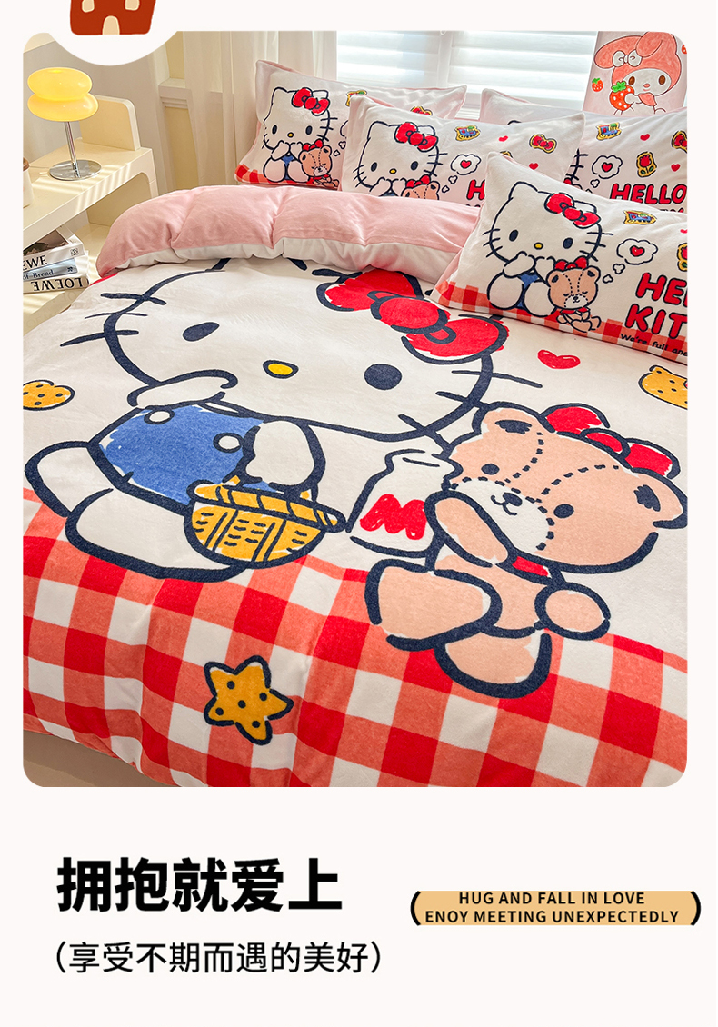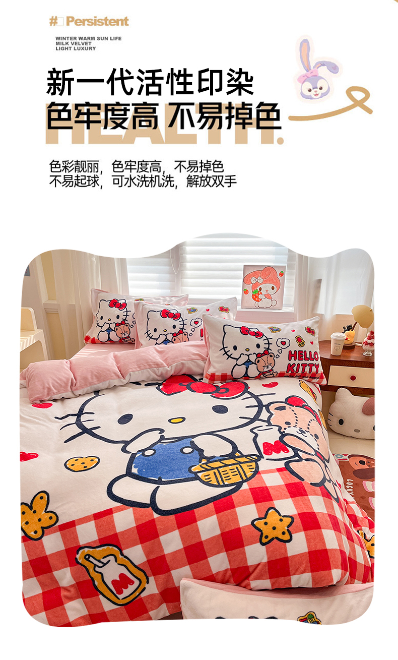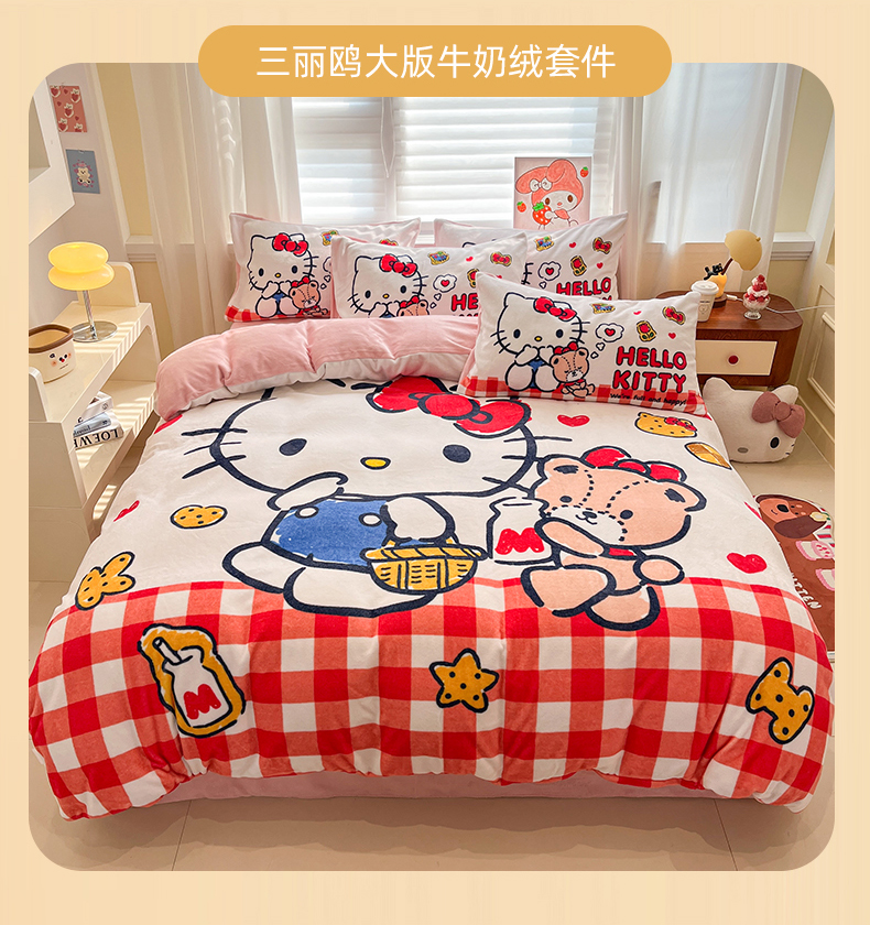 当前位置: 91家纺网 > 商品网购 > 床品套件 > 四件套 > 牛奶绒四件套 > 金爱家 2025新品正版三丽鸥授权大版卡通平网数码印花加厚高克重牛奶绒系列四件套 绒大版-甜心kt