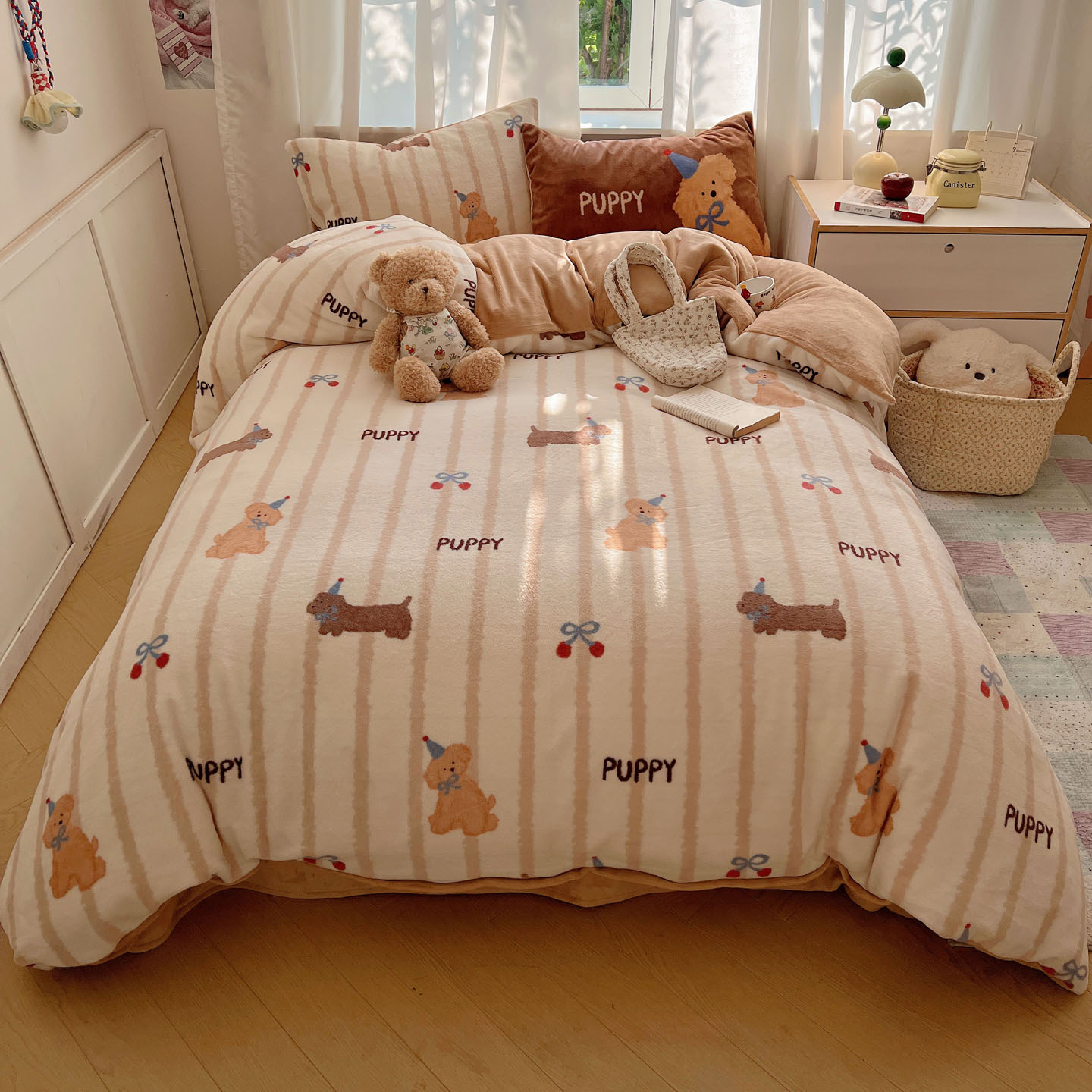 (总)桃喜 2024新款13372学生季全棉宿舍三件套,比熊小狗,波点动物园,波点西高地,狗狗家族,蝴蝶结小兔,蓝色小狗,喵星人,茉莉兔,潘多拉,晚安宝贝,小熊派对