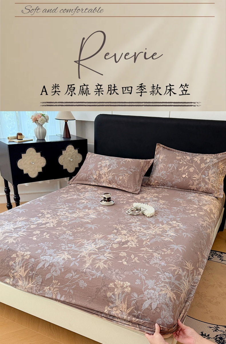 • 91家纺网 家纺一手货源 找家纺 圣比熊 2025新款原麻床笠机洗家用防滑透气四季款床罩床垫床单保护套 金枝玉叶