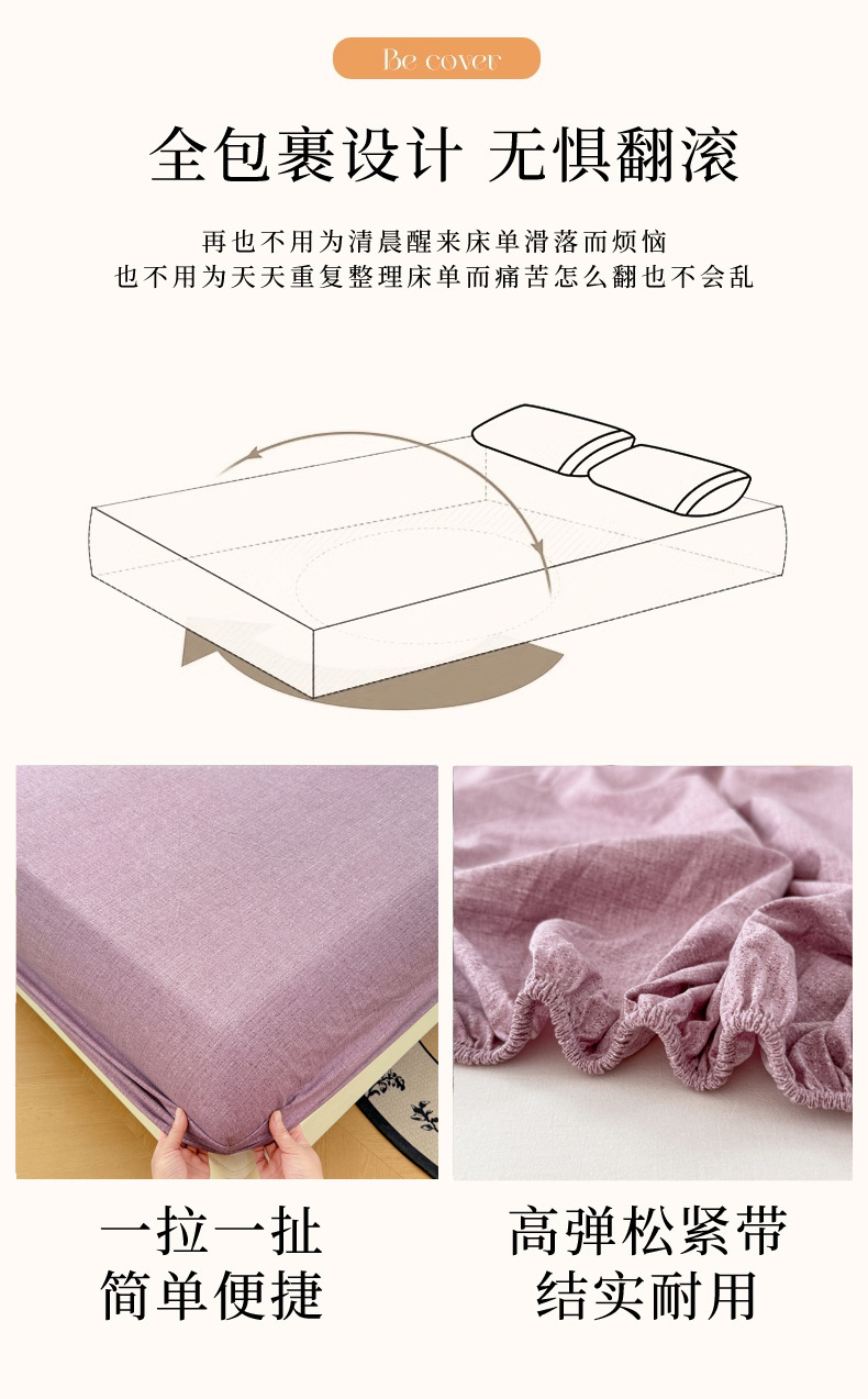 • 91家纺网 家纺一手货源 找家纺 圣比熊 2025新款原麻床笠机洗家用防滑透气四季款床罩床垫床单保护套 星野紫