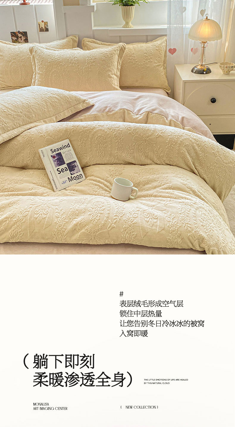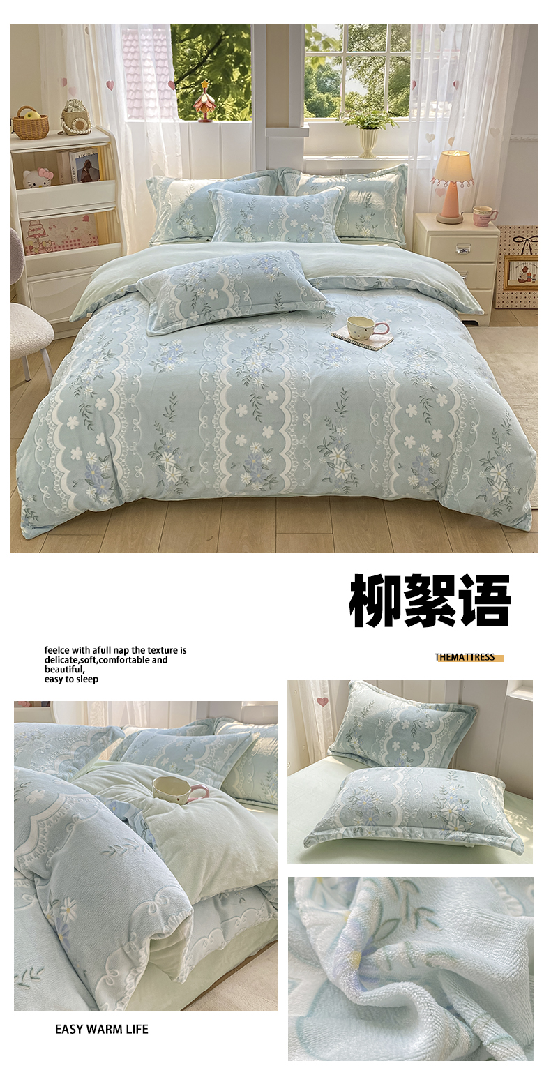 商品名称:卓越家纺 2025新款加厚保暖牛奶绒四件套 普鲁士兰