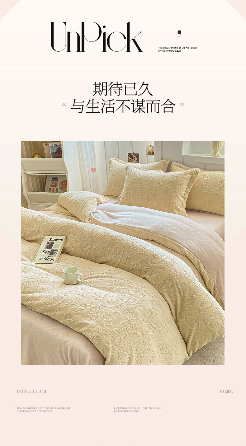 (总)卓越家纺 2025新款加厚保暖牛奶绒四件套,鹅暖黄,花田错,普鲁士兰,绿禾,柳絮语,花丛渐