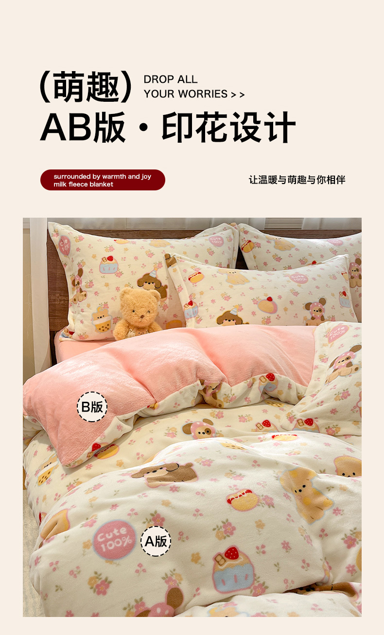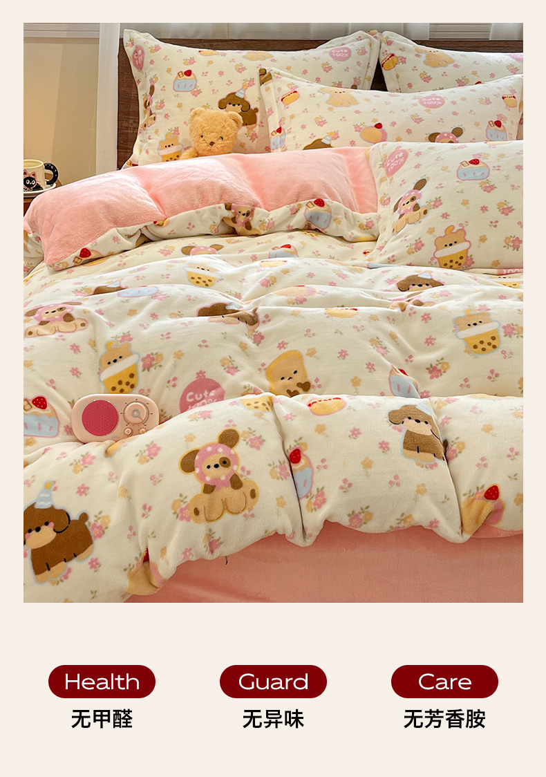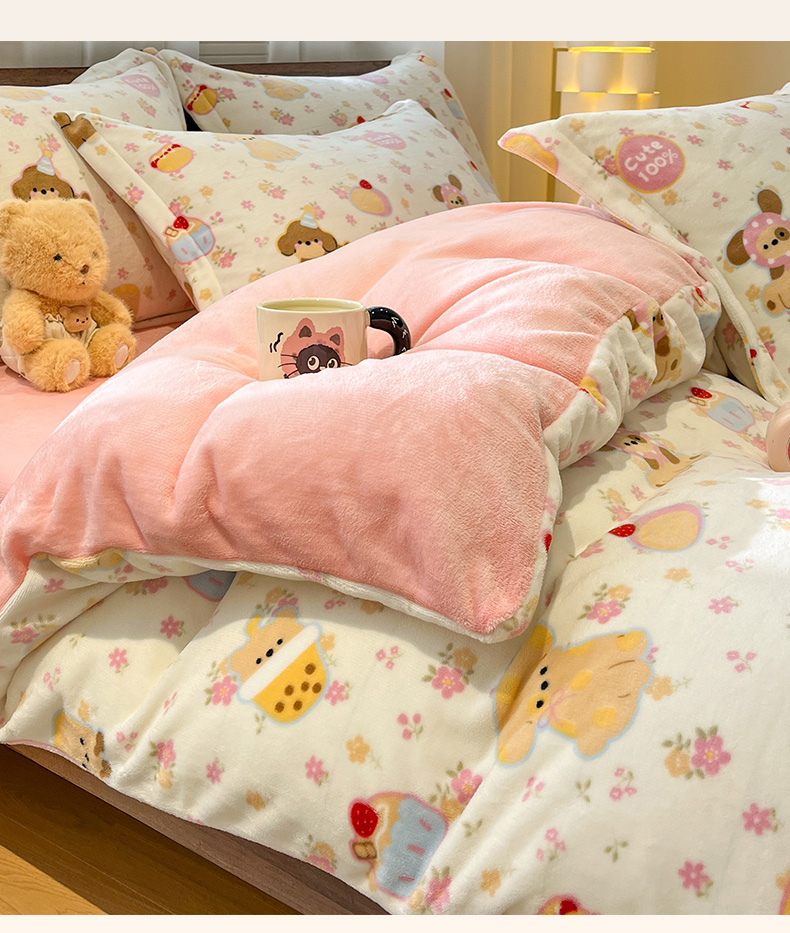 当前位置: 91家纺网 > 商品网购 > 床品套件 > 四件套 > 牛奶绒四件套 > 寻米 2025新款高克重加厚保暖牛奶绒四件套-第一批 草莓布丁
