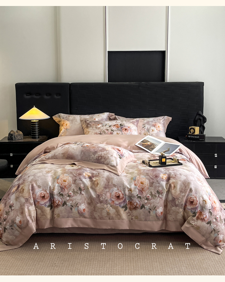 慕晨 2025新款65%莱赛尔32%棉全棉磨毛数码印花宽边高级简奢款中高端四件套直播热款 暄和