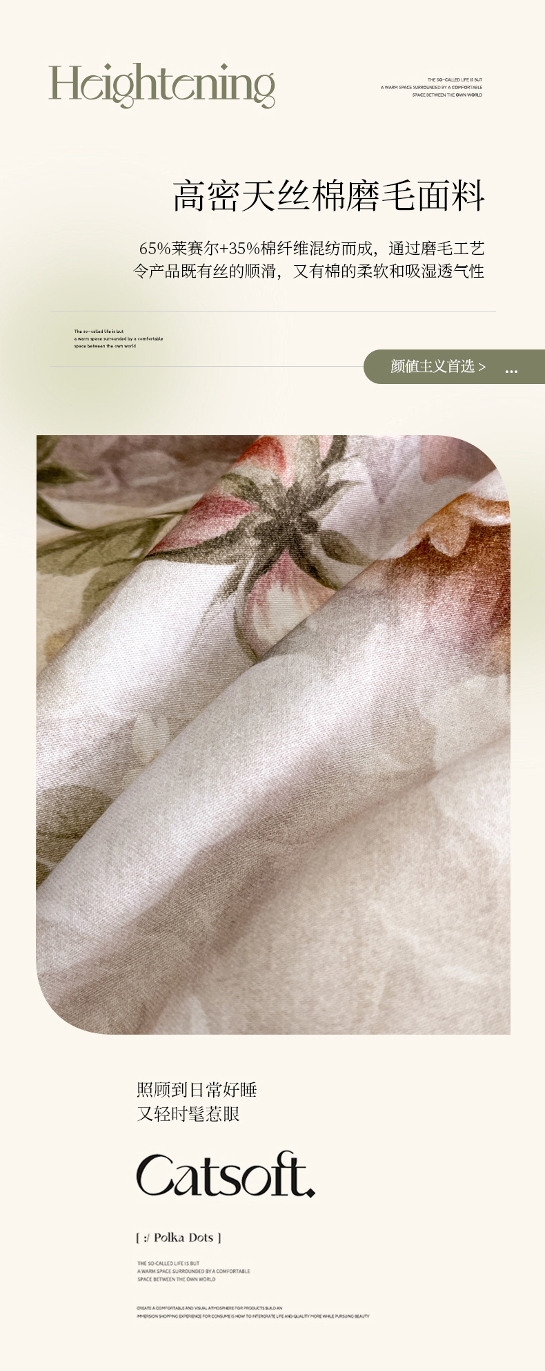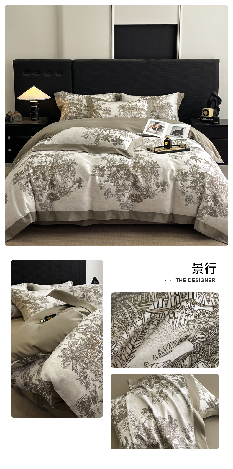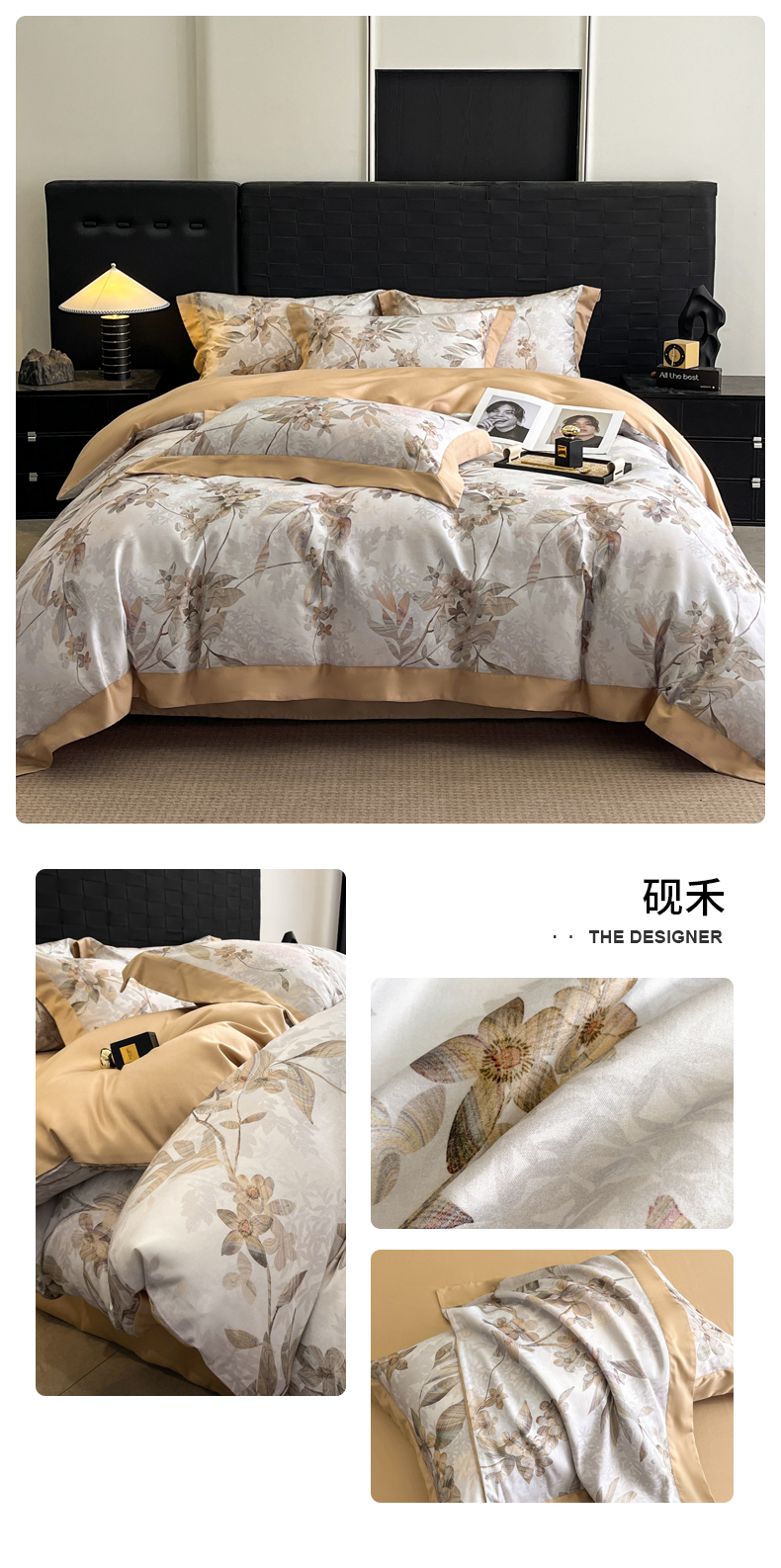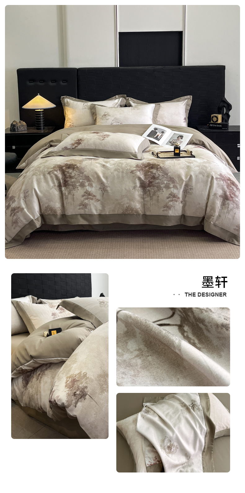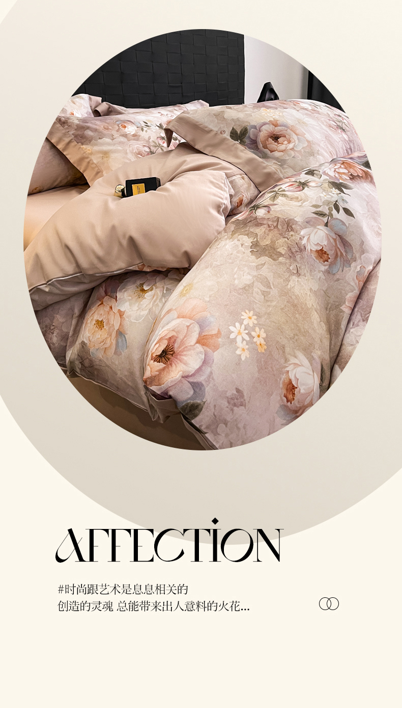 商品名称:慕晨 2025新款65%莱赛尔32%棉全棉磨毛数码印花宽边高级简奢款中高端四件套直播热款 暄和