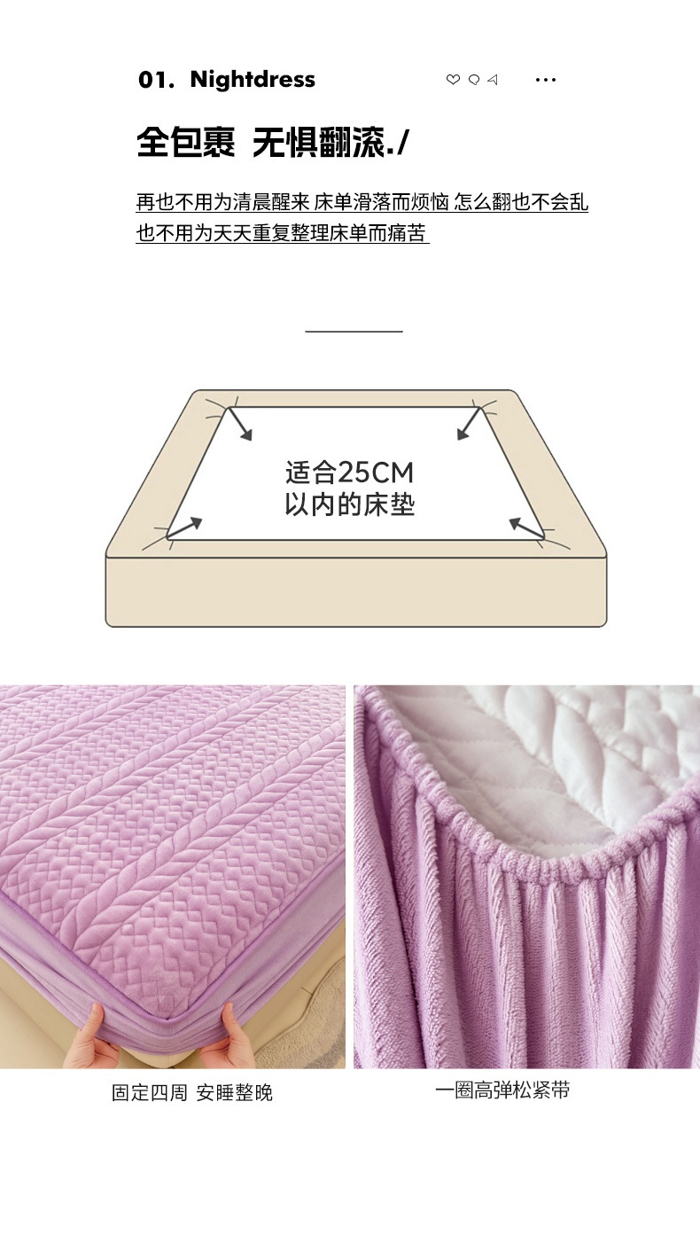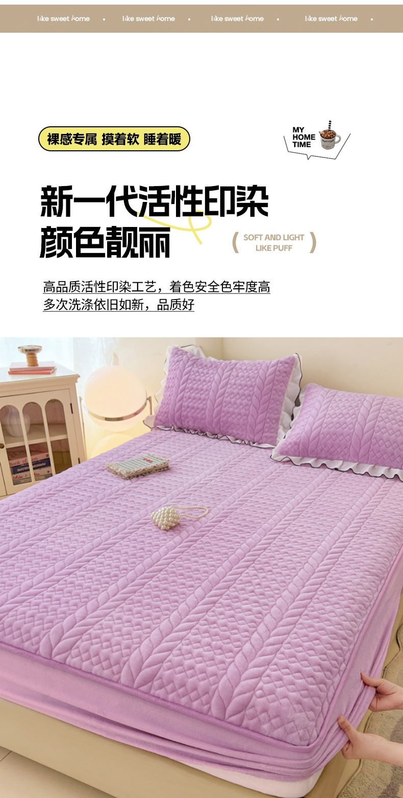 • 91家纺网 家纺一手货源 找家纺 梦舒羽 2025新款牛奶绒夹棉床笠床单床盖床护垫保护罩三件套花边枕套-轻奢 轻奢款-梦幻紫