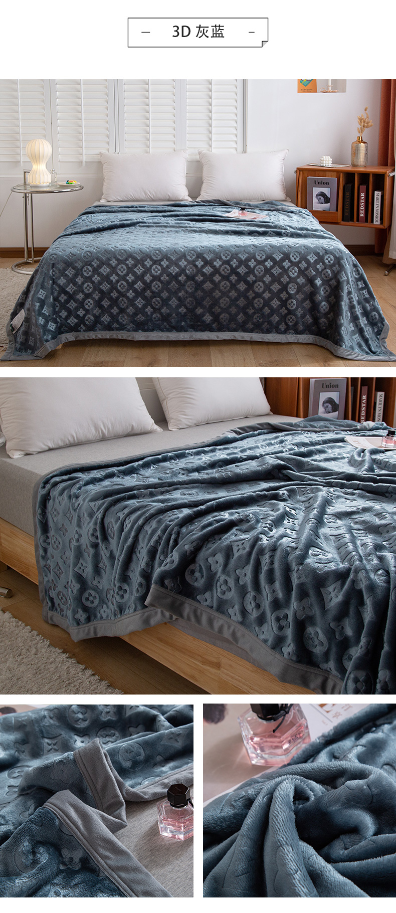梵克保罗 2025新款3D立体印花四季盖毯400克 铜钱孔雀绿